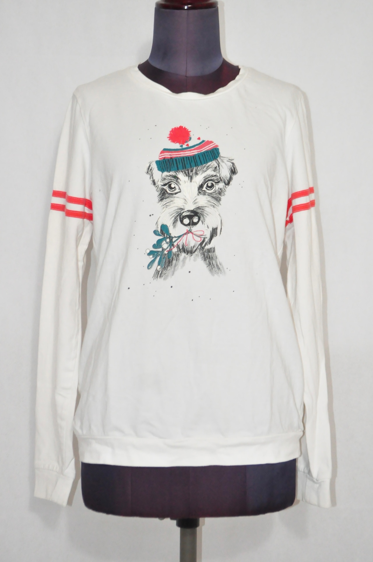 ♩.♪⭐︎白ベースに映える、帽子をかぶったリアルタッチのイヌ。袖の赤いラインがさりげない存在感を放つデザイン ♩.♬*