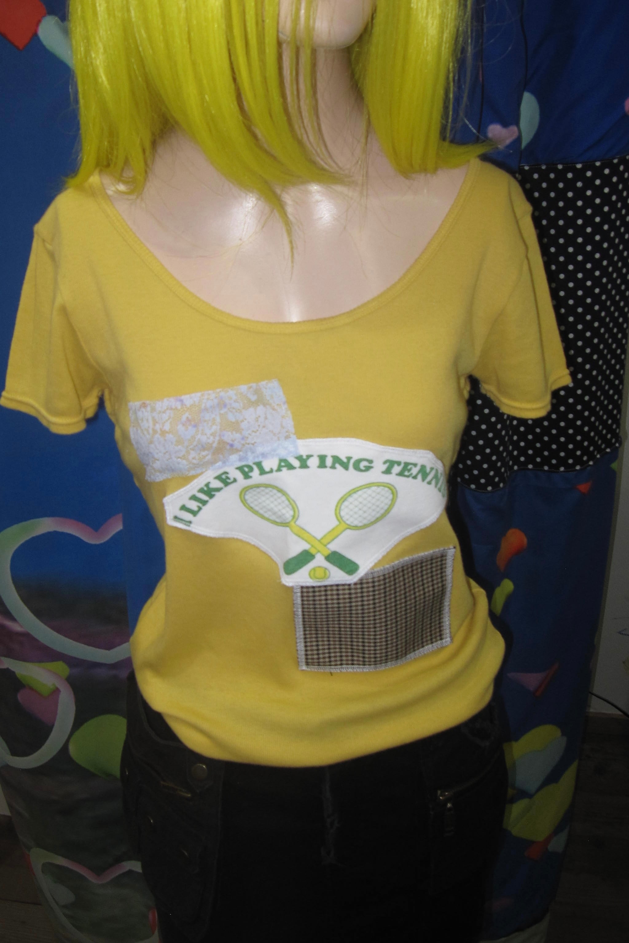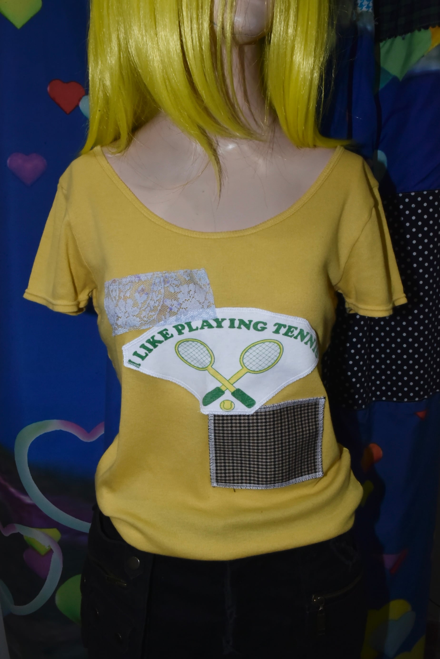 NETSU − Patchwork Tennis Motif Wide Collar Top