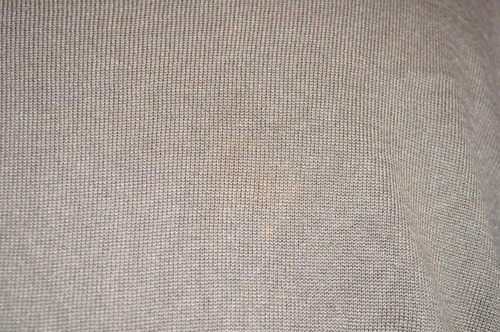 前側裾辺り、左脇、左袖にシミ