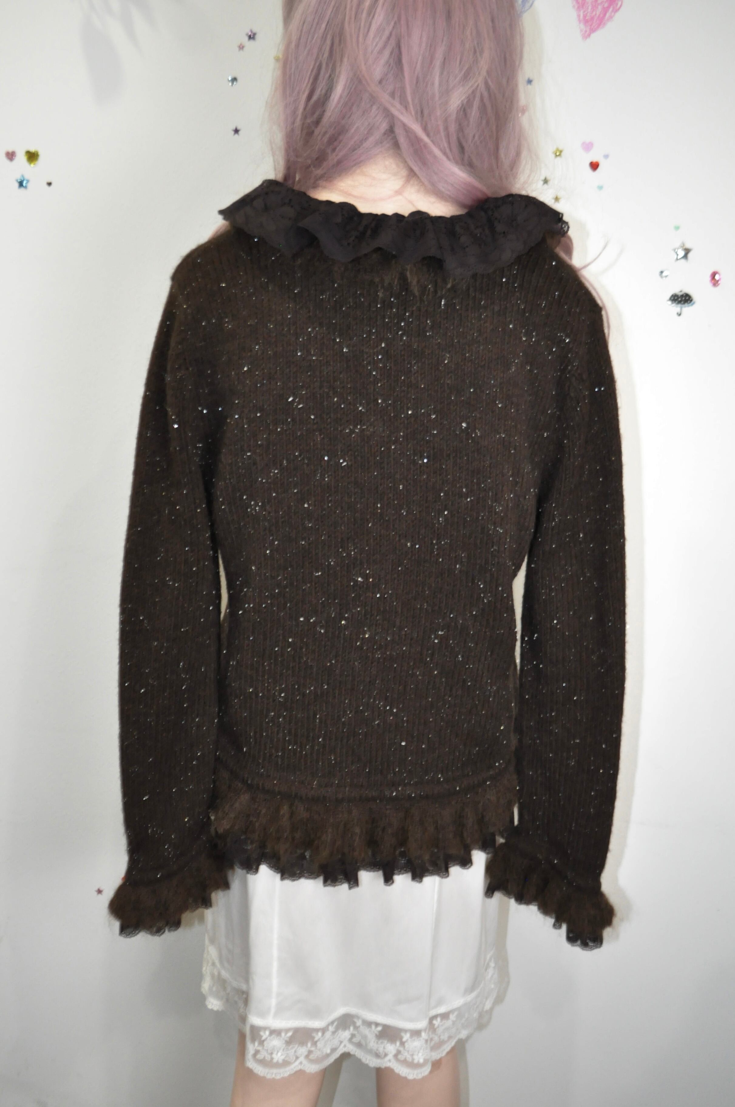 ♩.♪⭐︎ほのかなラメが光をすくって、やわらかく艶めく。どこかアンティークな雰囲気を感じるブラウンニットジャケット ♩.♬*