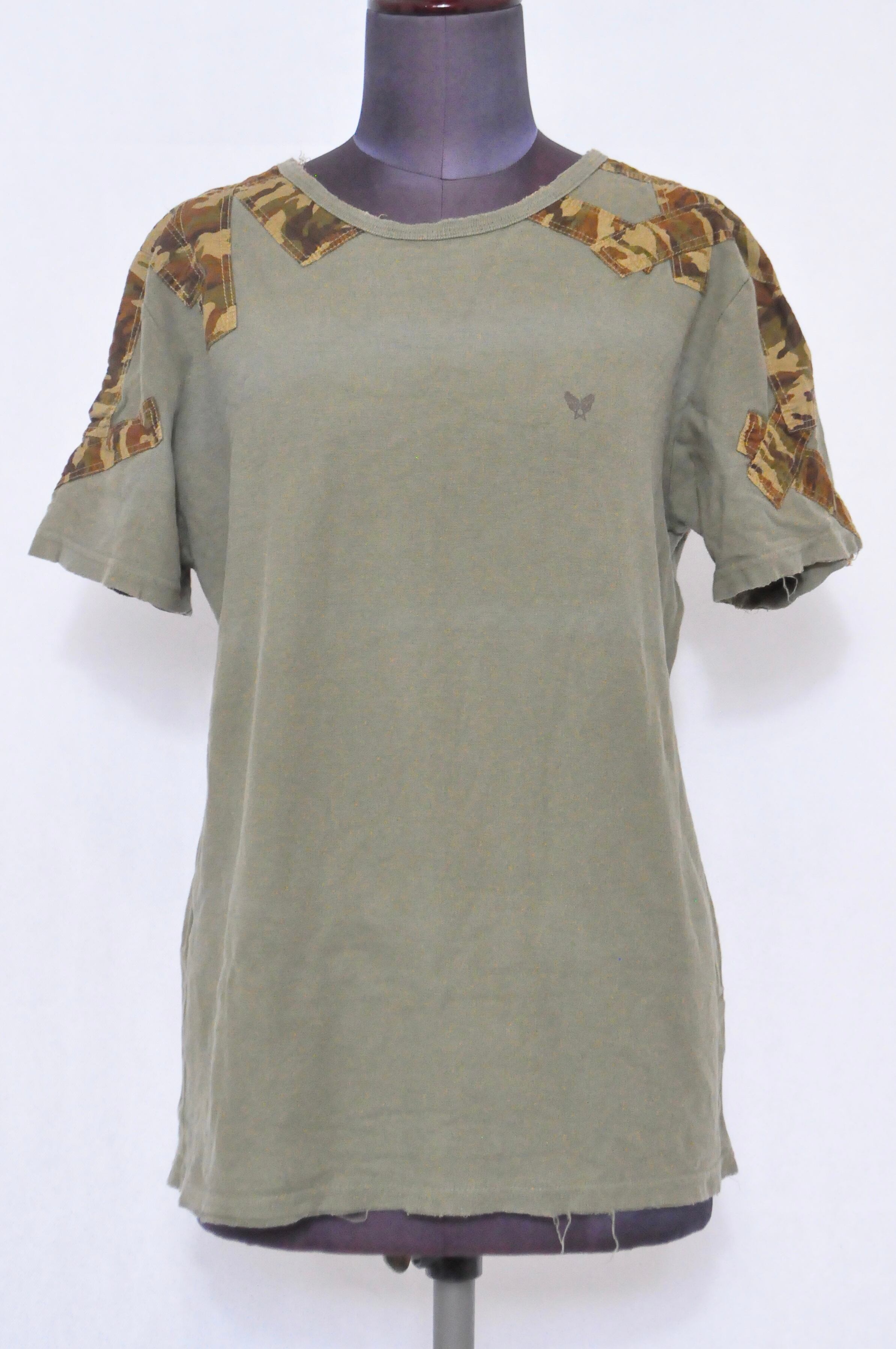 肩に交差するカモフラージュが、無機質なカーキにリズムを生む ♩.♬*