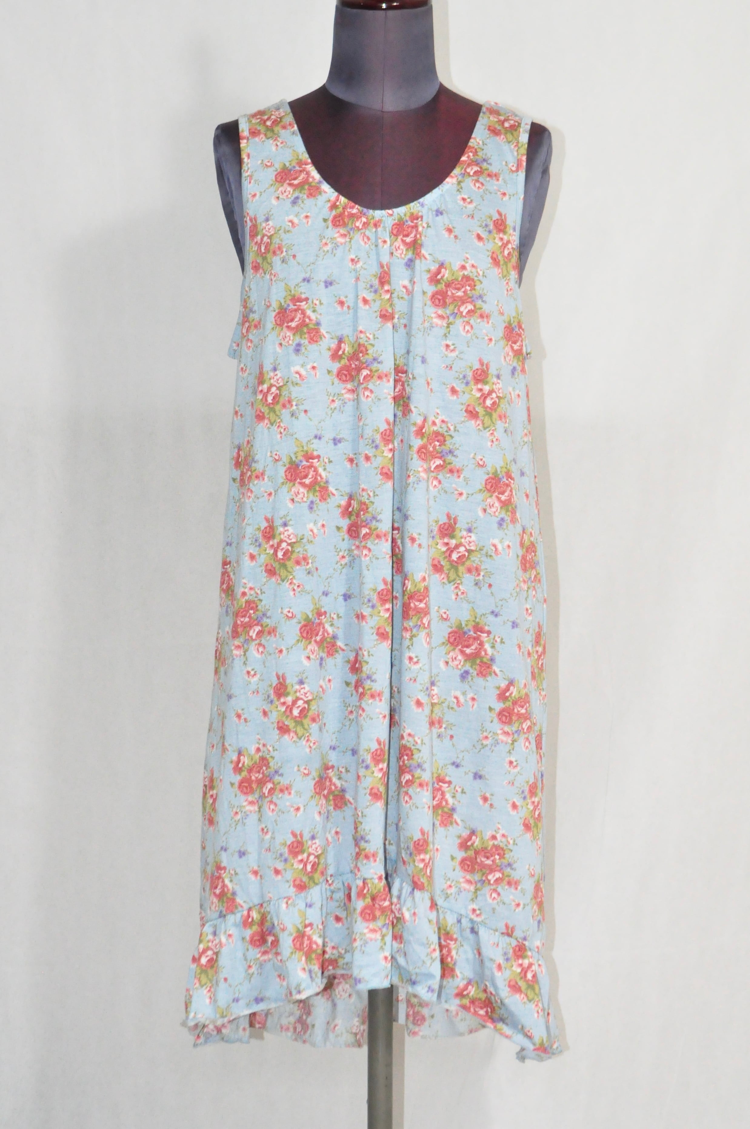 ♩.♪⭐︎エアリーなシルエットにフリル裾が揺れるデザイン。鮮やかな赤の花柄がスカイブルーに映えて、視線を惹きつける存在感 ♩.♬*