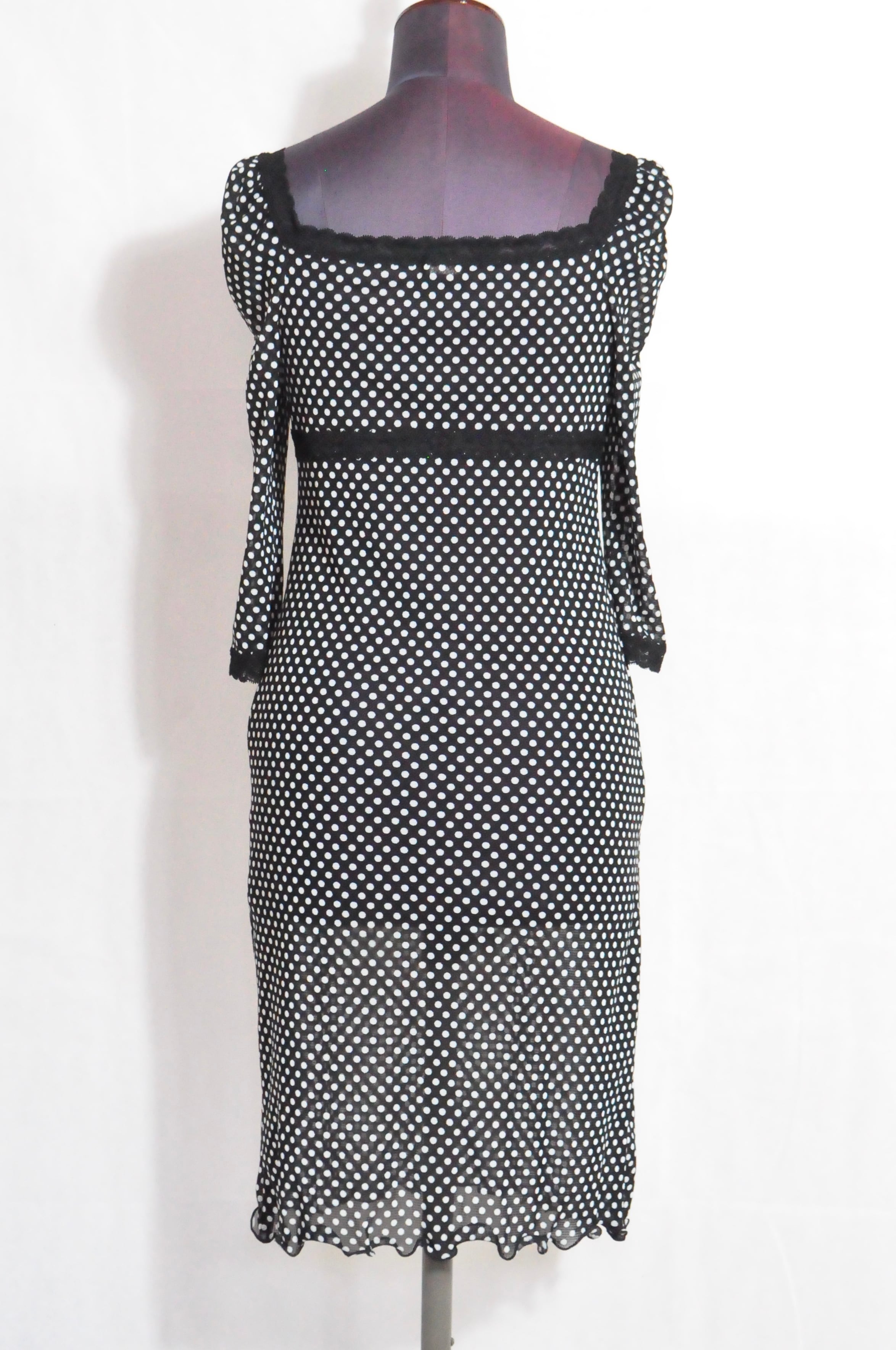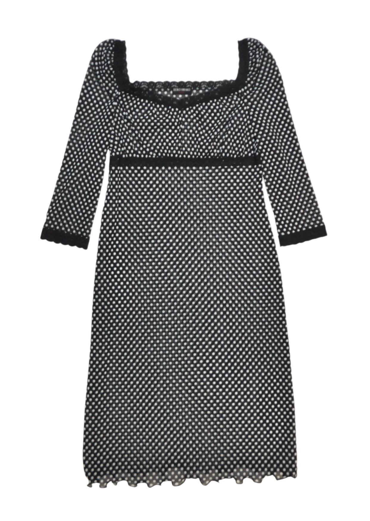 ♩.♪⭐︎シアー感を帯びた黒にドットが浮かぶ繊細な長袖ワンピース。レースの襟とパフスリーブが可憐さを添え、女性らしいシルエットを演出 ♩.♬*