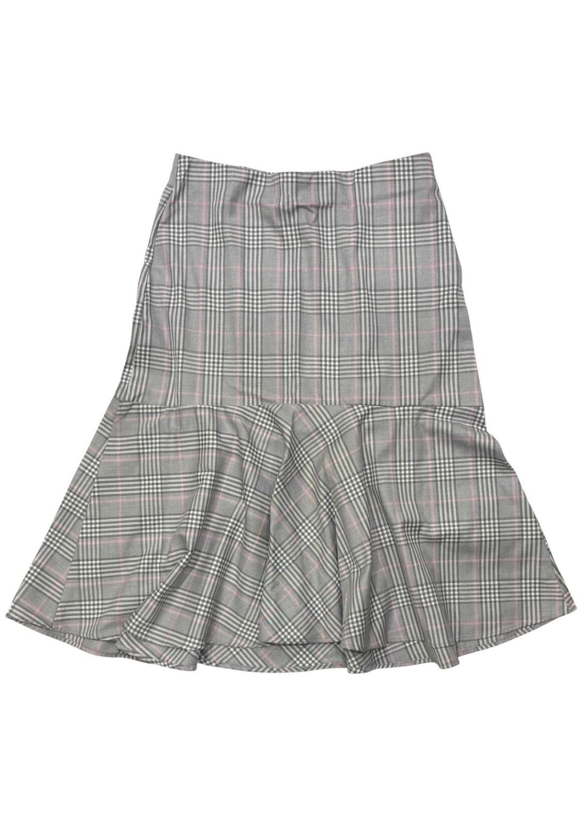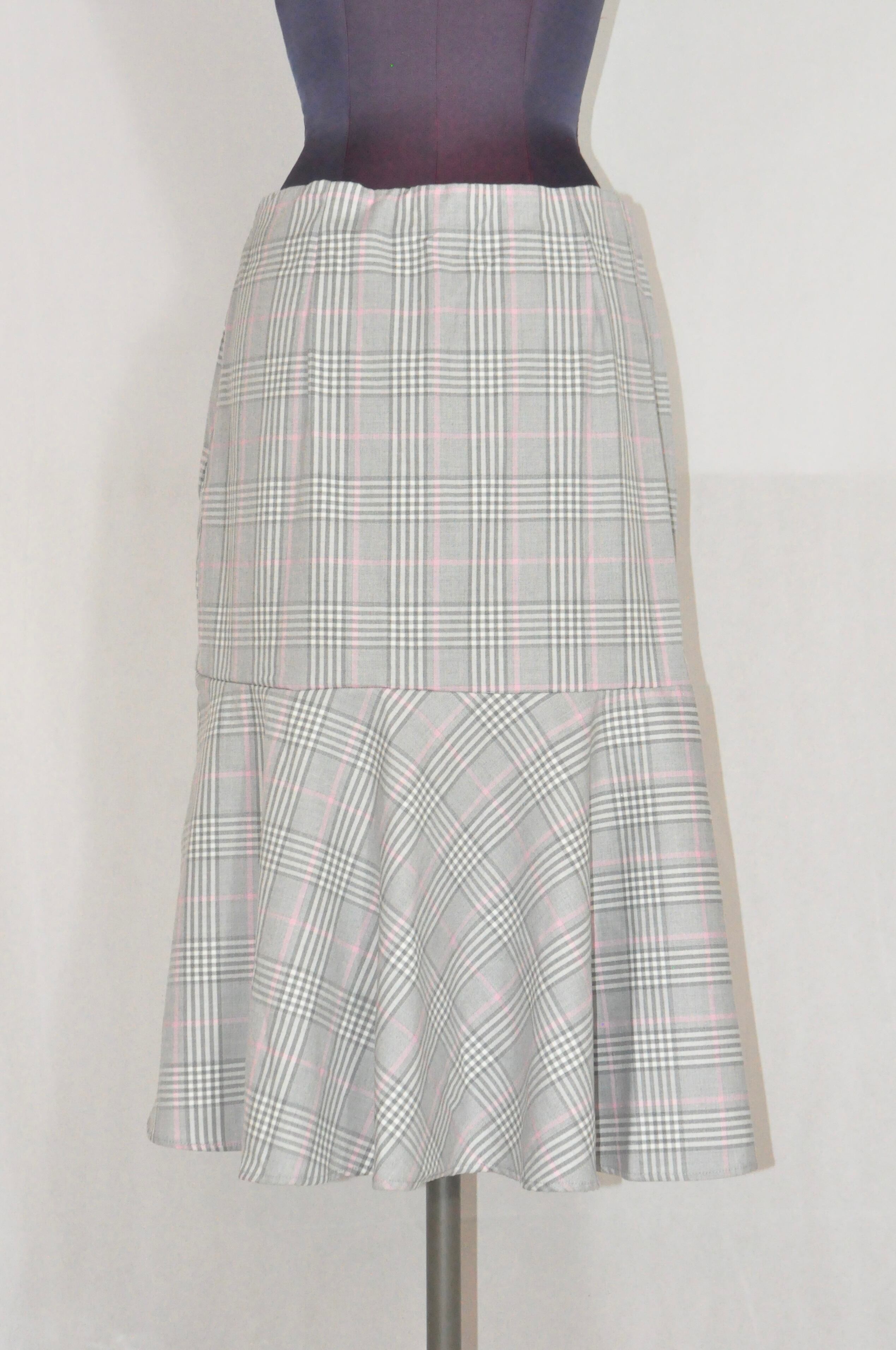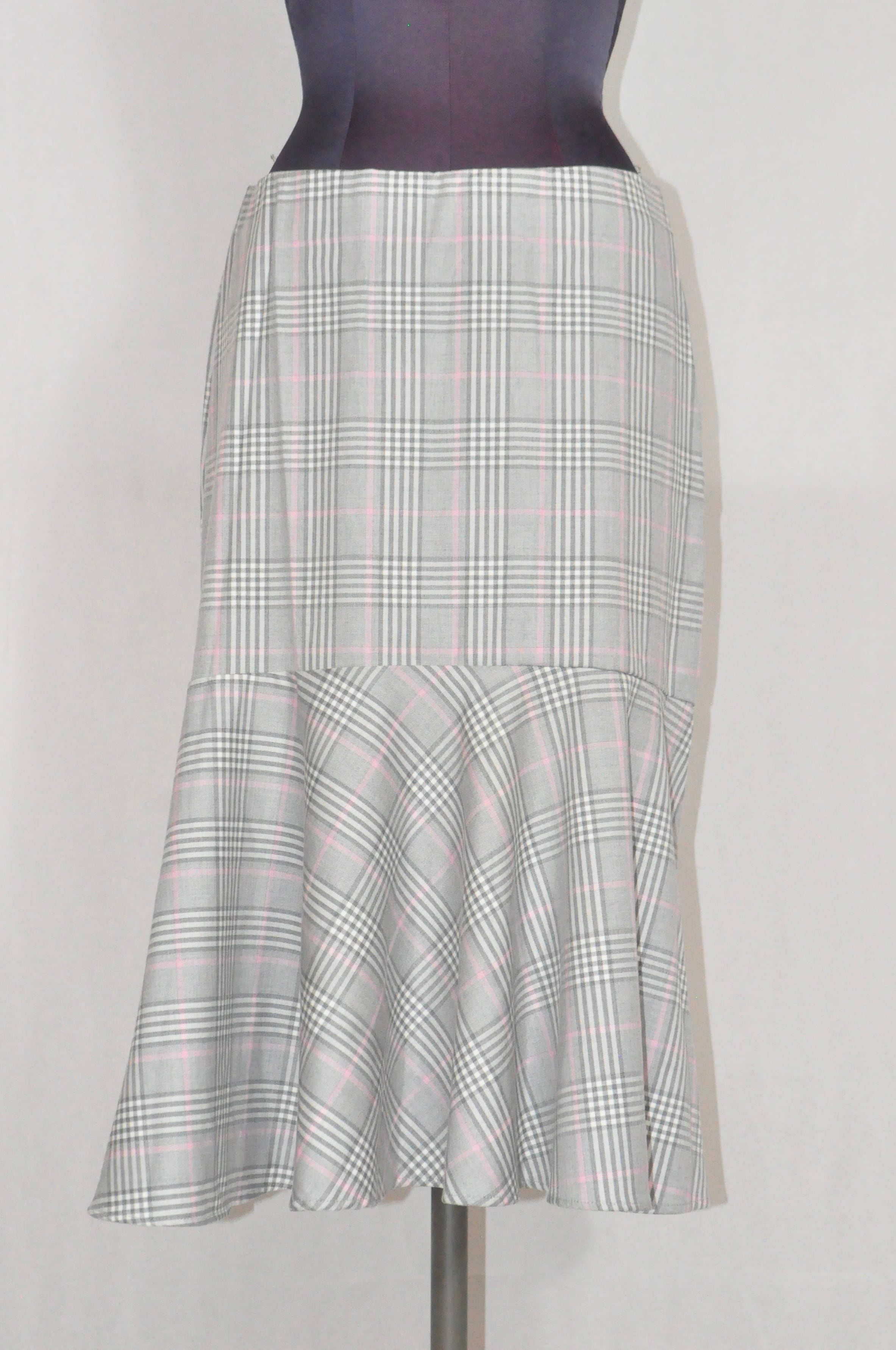 ♩.♪⭐︎すっきりとしたタイトラインからふわりと広がる切り替えのフレア。グレーにピンクのチェック柄がさりげなく華やぎをプラスするスカート ♩.♬*