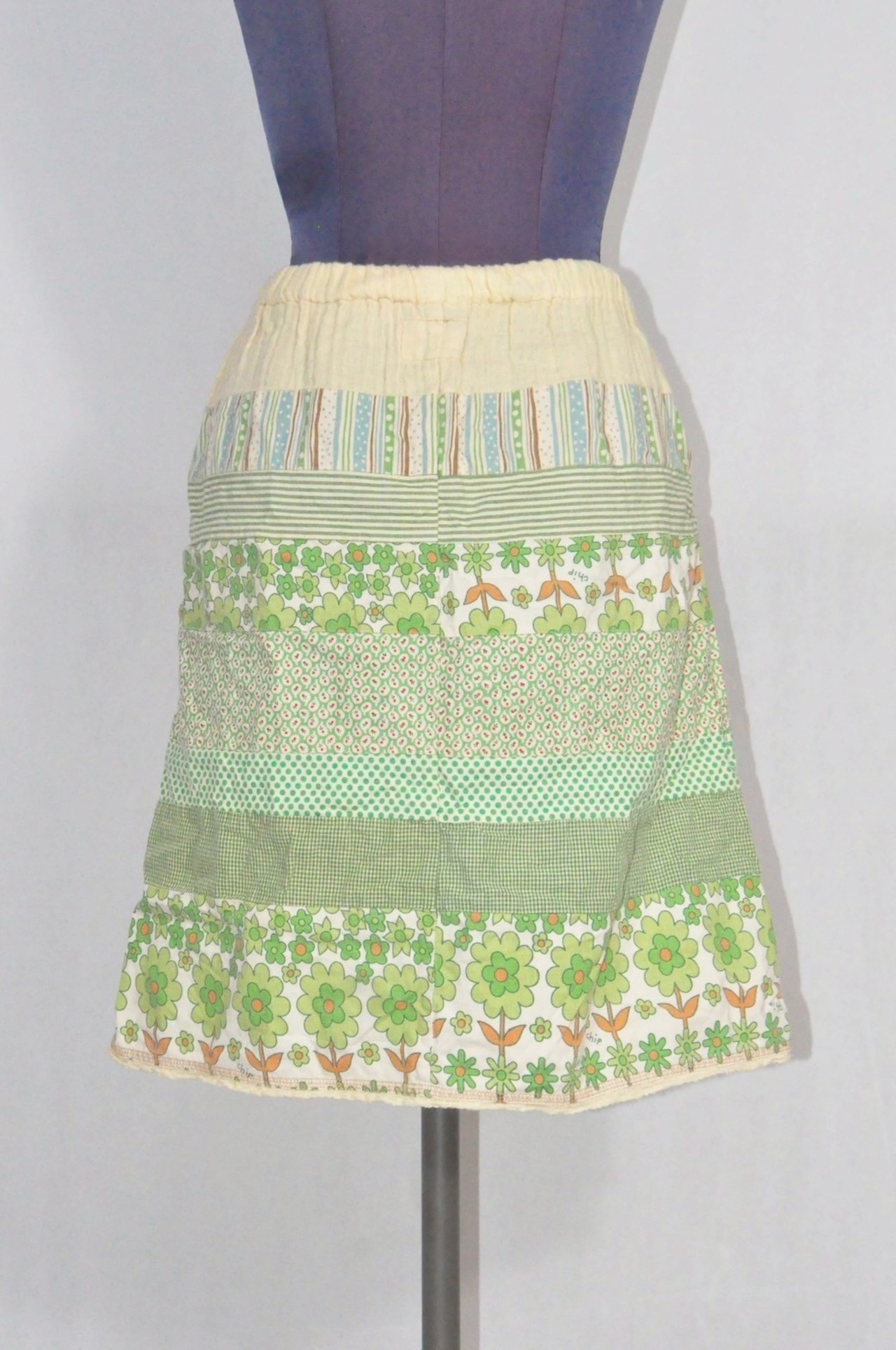 ♩.♪⭐︎ イエローとグリーンを基調に、植物モチーフやストライプが重なるパッチワークスカート。自然のリズムを感じるような温かみある1枚♩.♬*