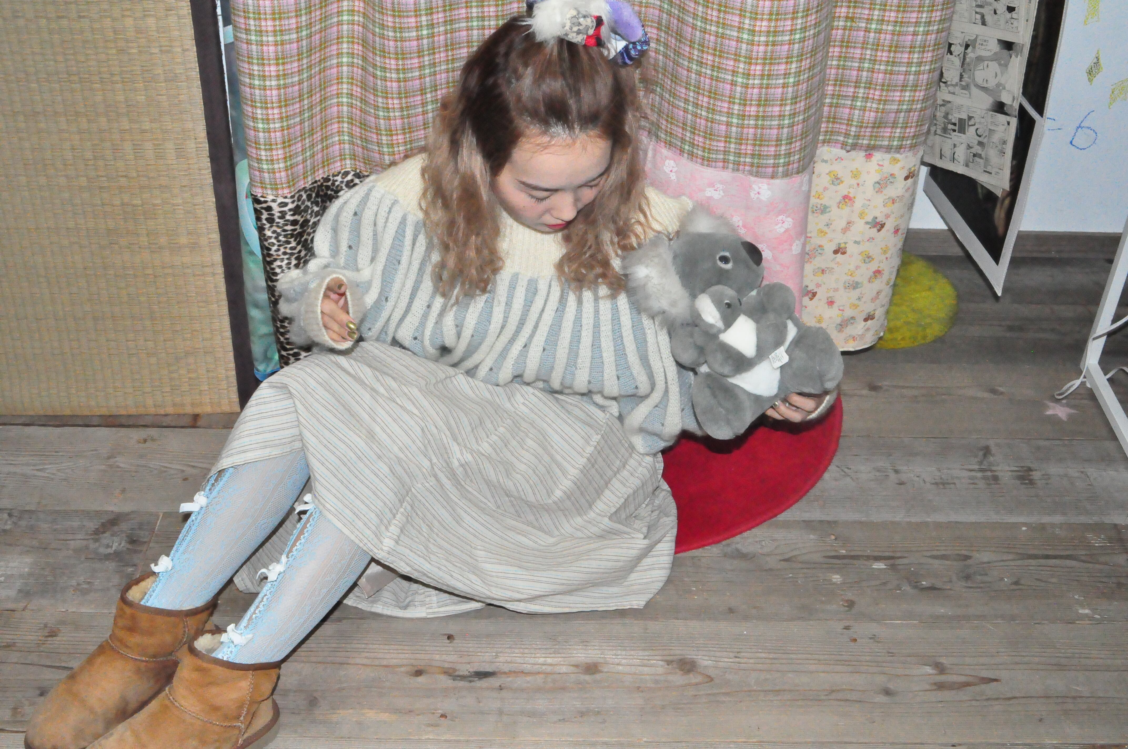 どれみ「ふんわりコットンの安心感に、ブルーとブラウンのボーダー。