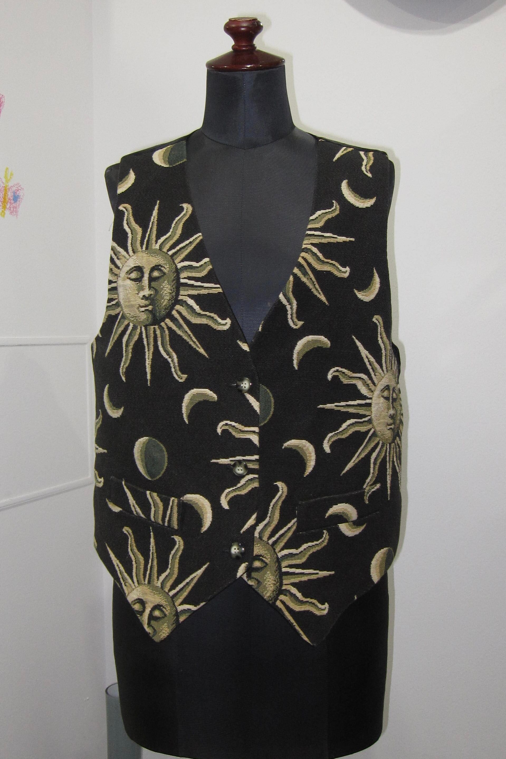 ♩.♪⭐︎夜空のような黒地に、月と表情ある太陽が織り込まれたアートピース。エスニックにもヴィンテージにも馴染む、神秘的な佇まい ♩.♬*