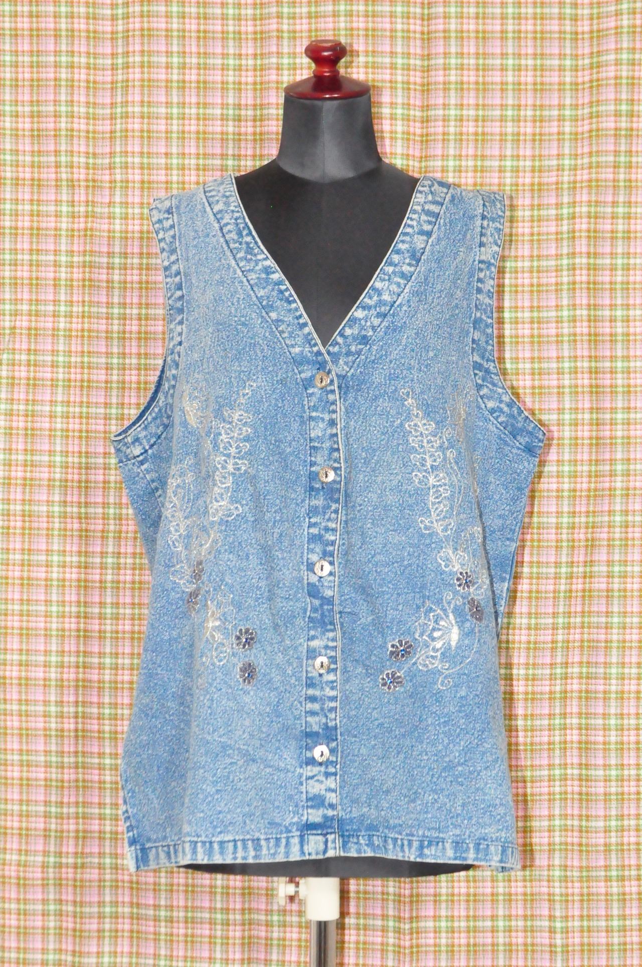 ♩.♪⭐︎ ヴィンテージライクなデニムに、華やかな花の刺繍。ブルーストーンが光を集めて、装いを一段格上げ♩.♬*
