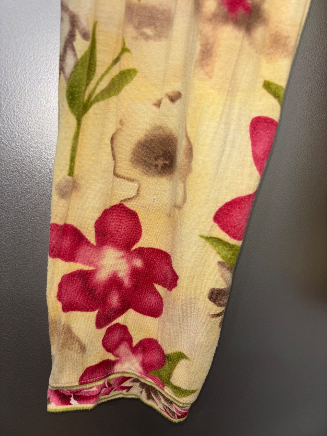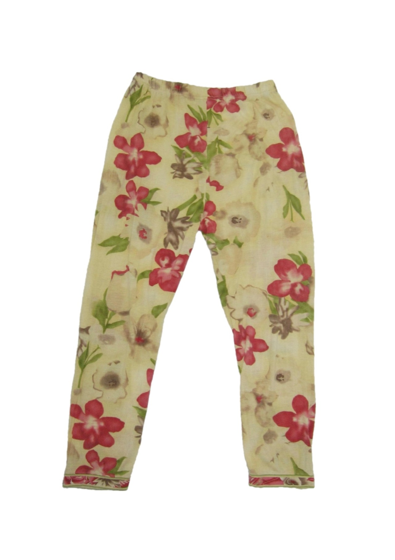 ♩.♪⭐︎ 落ち着いたトーンに、ハイビスカスの大胆なモチーフがアクセント。シルエットが空気を含み、スタイリングに余白を与えるパンツ ♩.♬*