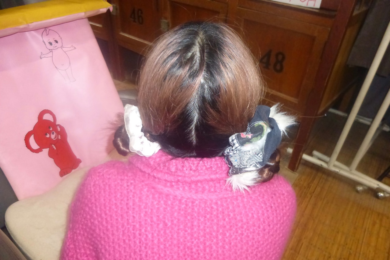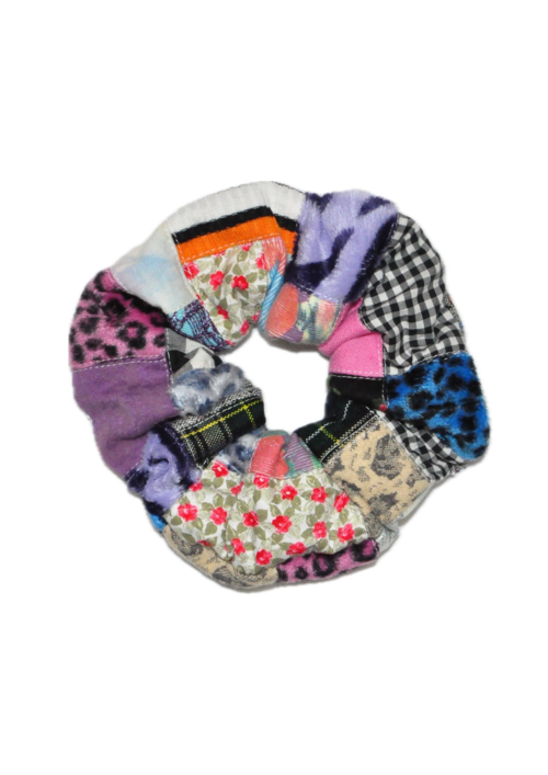 ♩.♪⭐︎一点物の古着パッチワークで作ったシュシュ。大きめサイズで華やかさをプラスし、ヘアアレンジを遊び心あるスタイルに♩.♬*