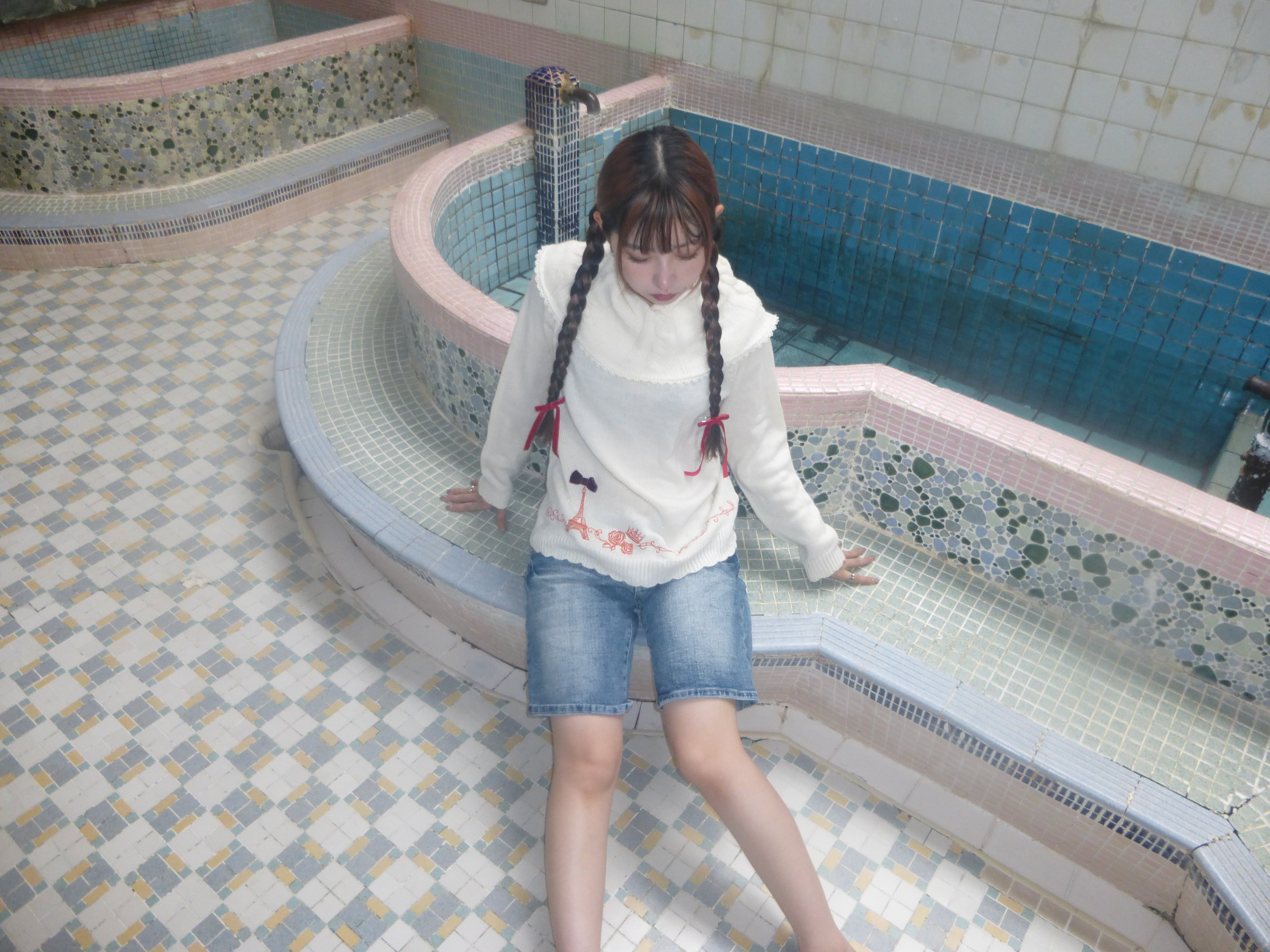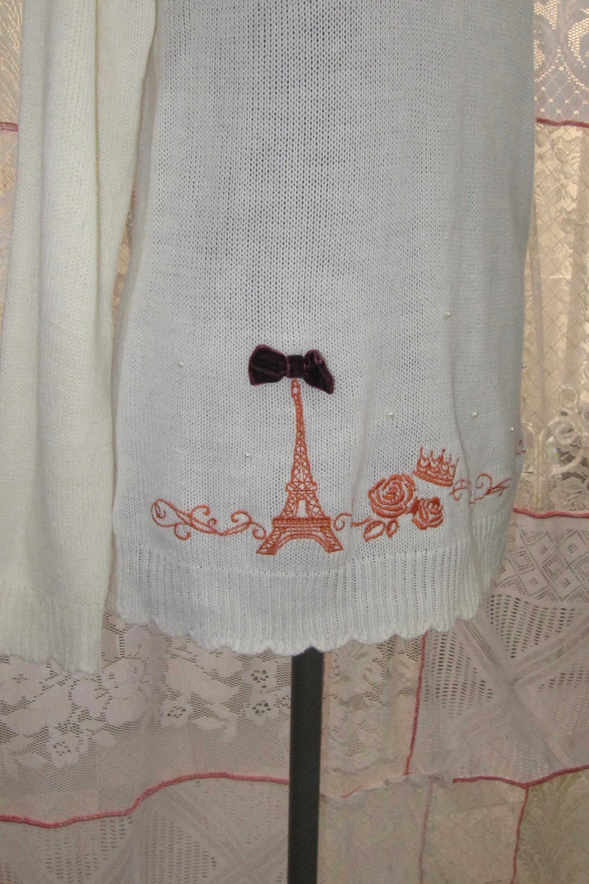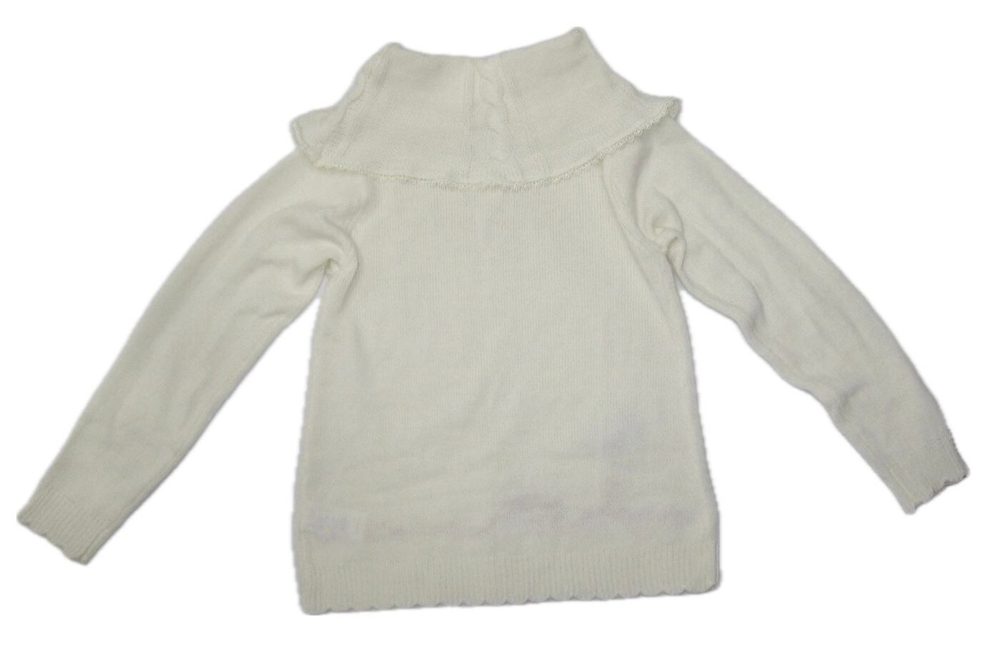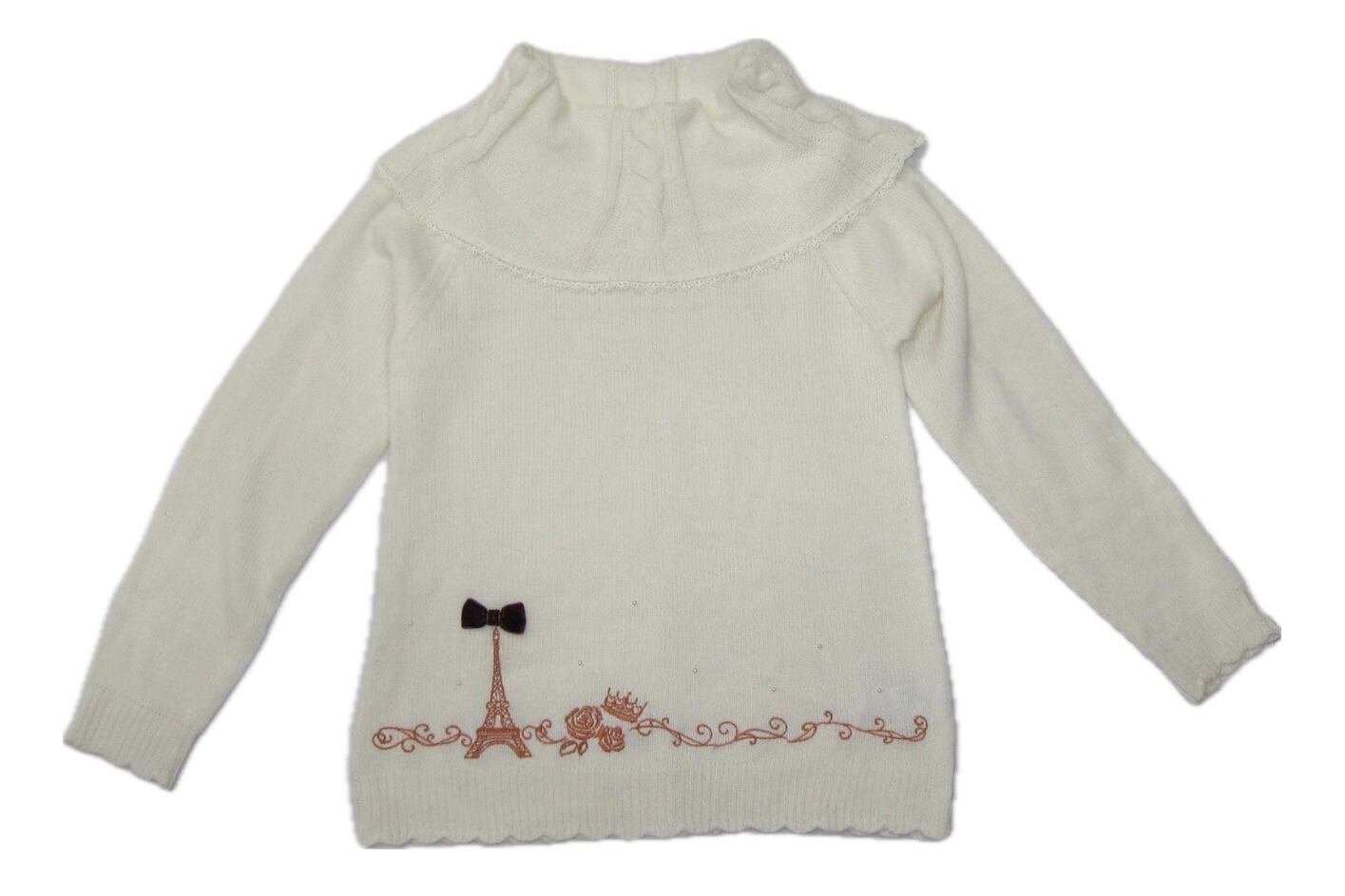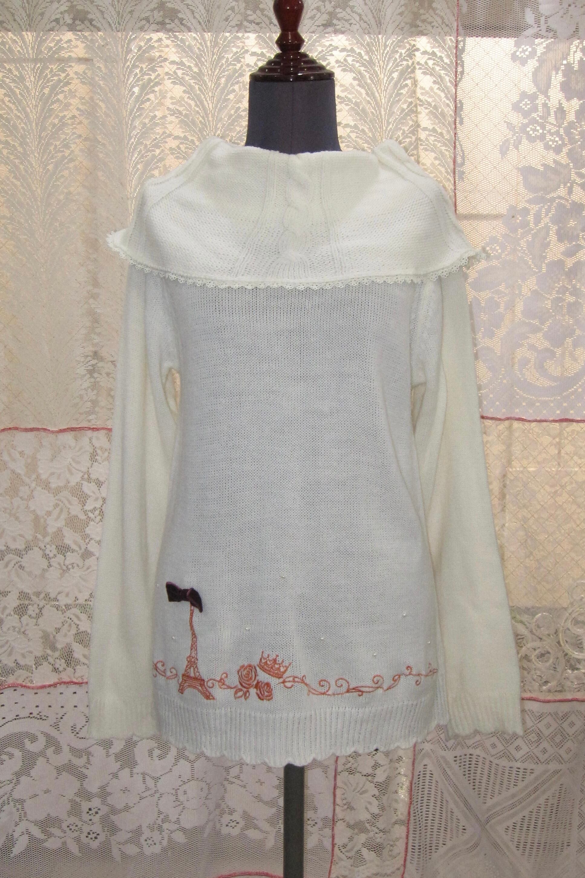 ♩.♪⭐︎白ニットに映えるオレンジのステッチとパールビーズ。襟元はフリルのように柔らかく広がり、フェミニンなムードを引き立てるデザイン♩.♬*