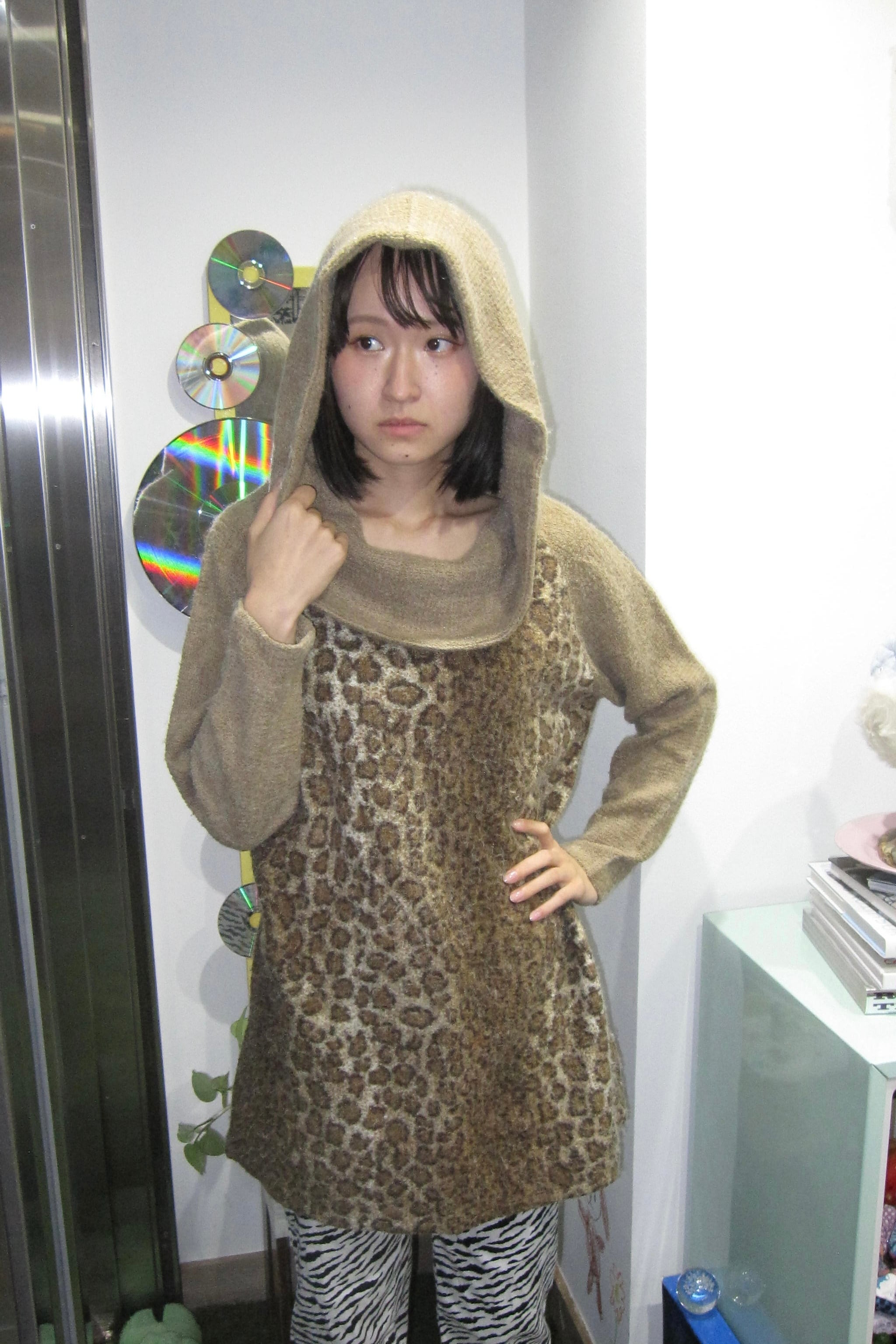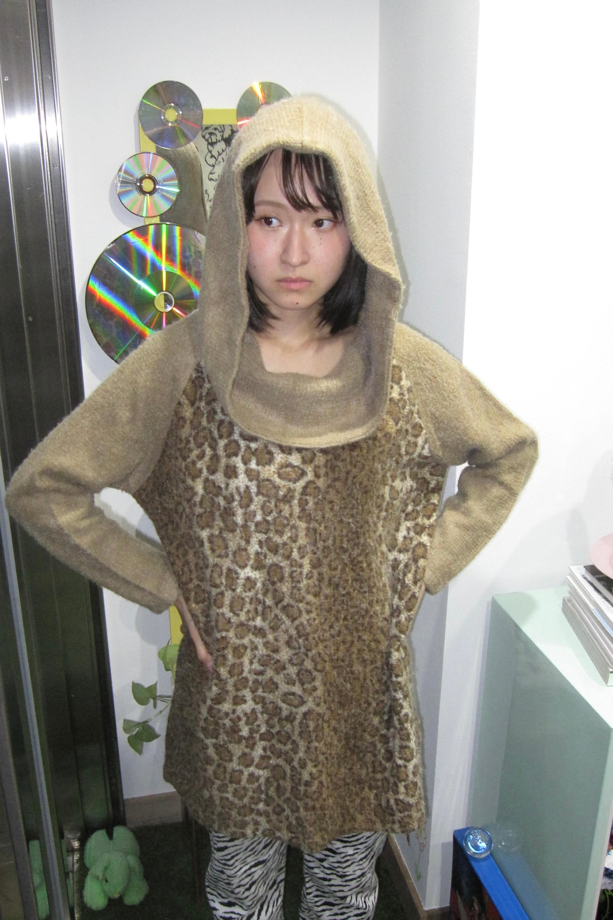 ♩.♪⭐︎後ろ姿に映えるフードと、立体感のあるニット襟。レオパード柄がモードに仕上げる一着 ♩.♬*
