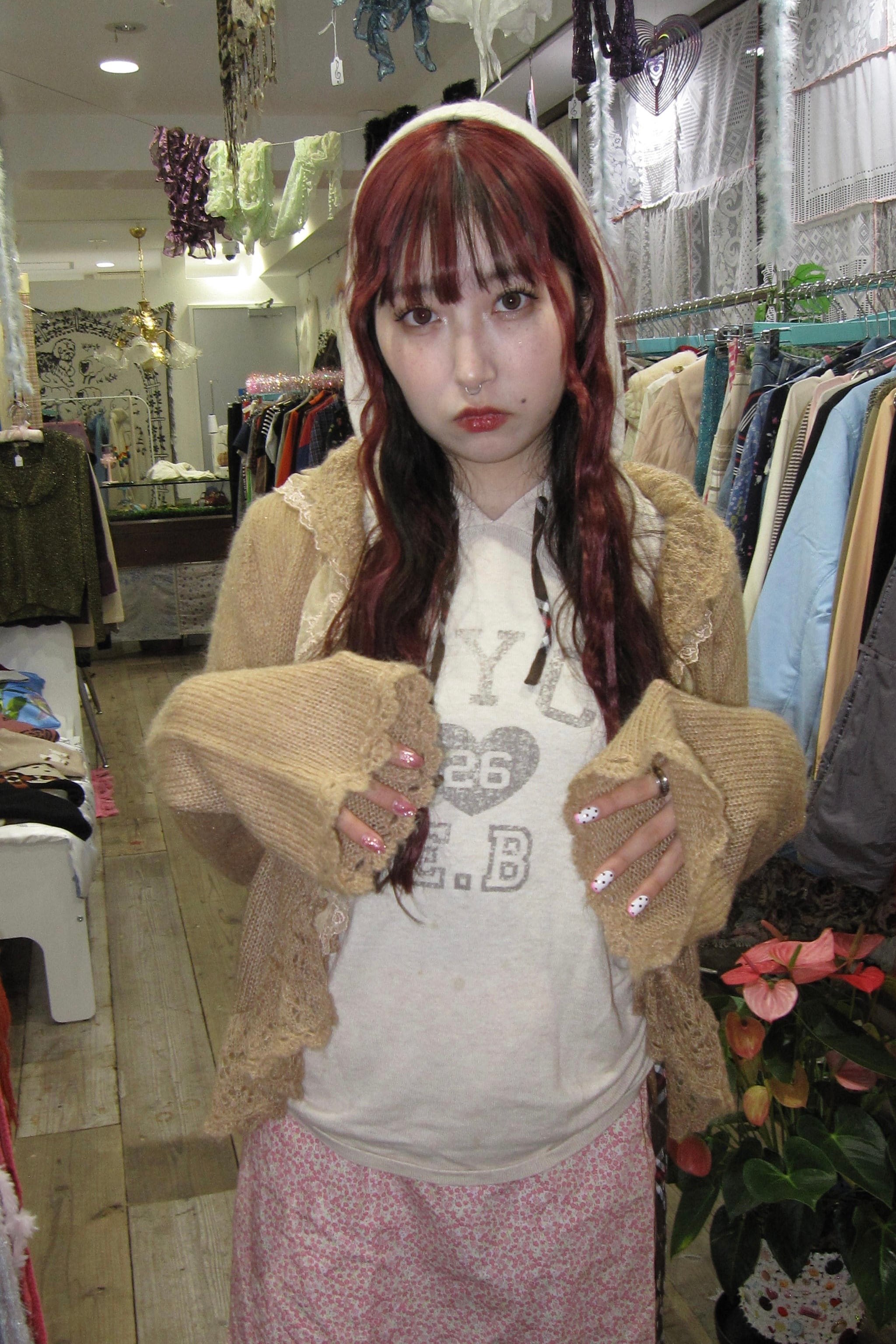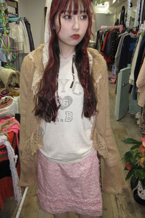 ♩.♪⭐︎ふんわりとしたベージュに、胸元のフリルとピンクレースが映える一枚。