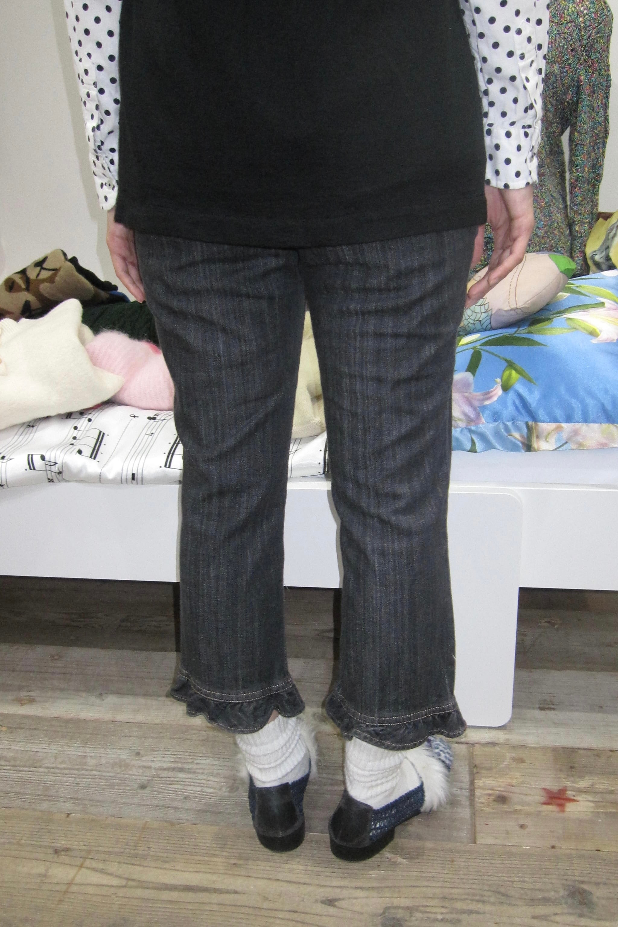 どれみ「このデニムパンツ、裾がフリルでくるぶし丈、絶妙なバランスなの~
