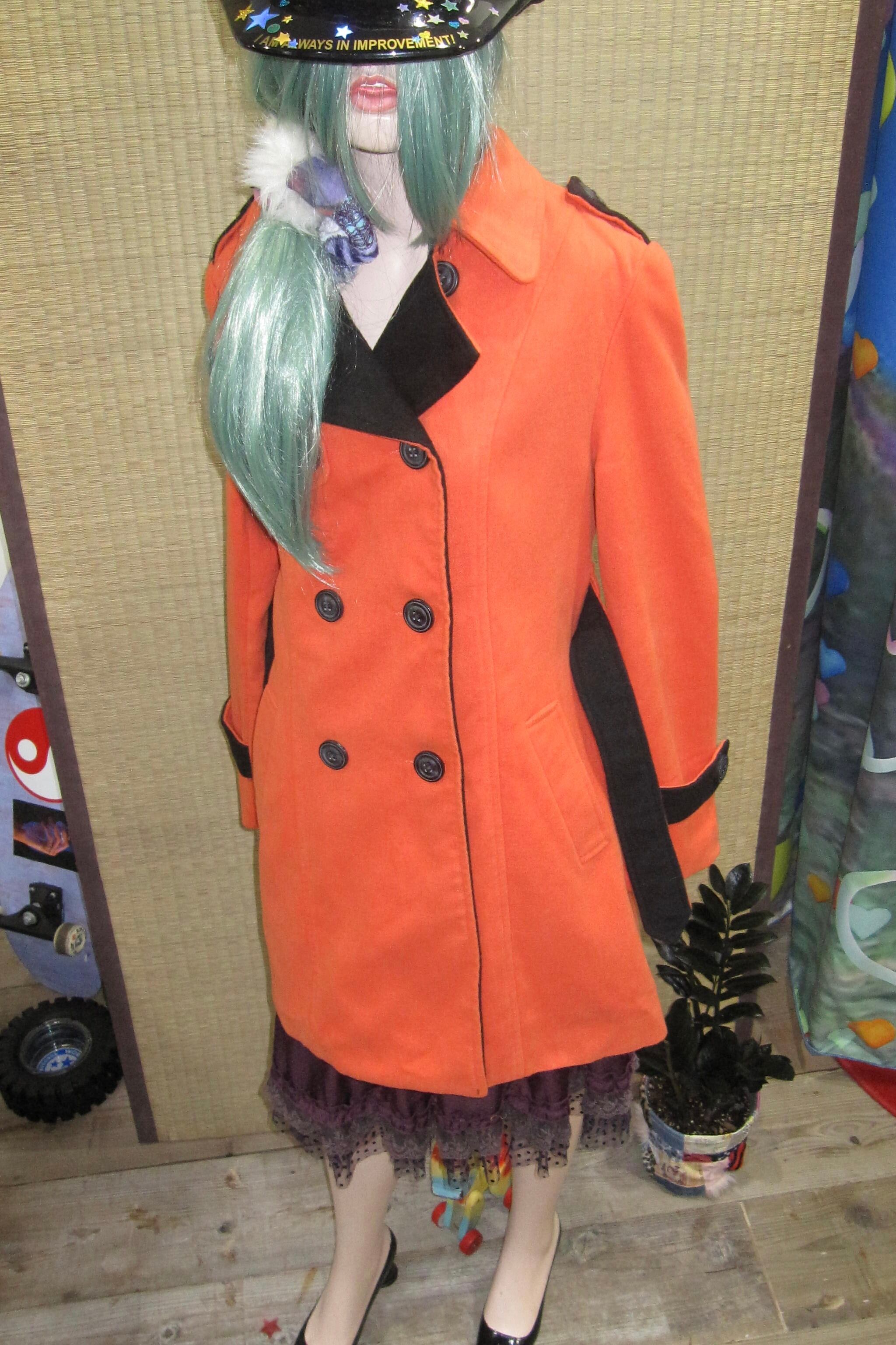 どれみ「ぱっと見は明るいオレンジのロングコートなんだけど、よく見ると襟の裏とかベルトの裏が黒なの