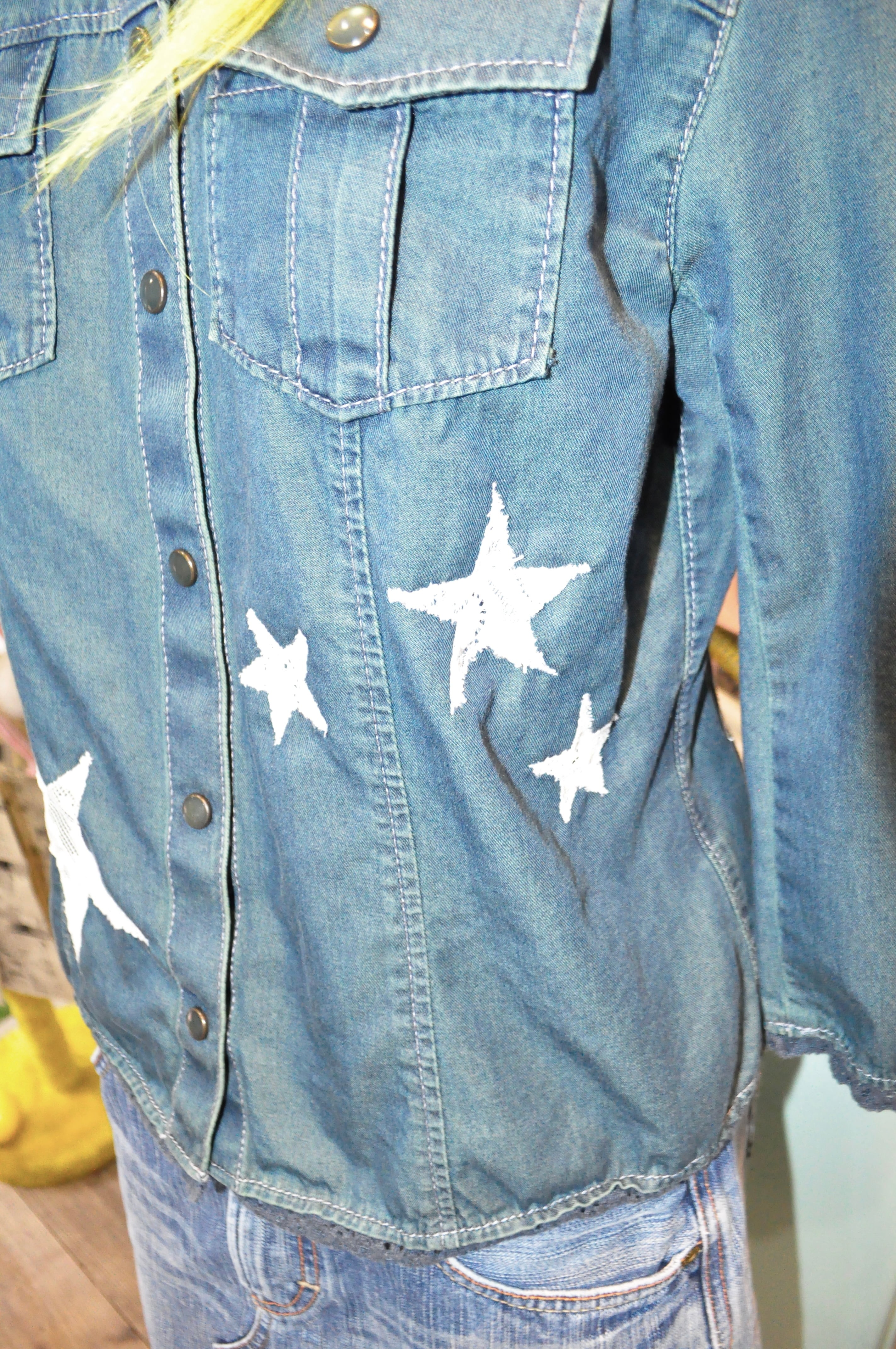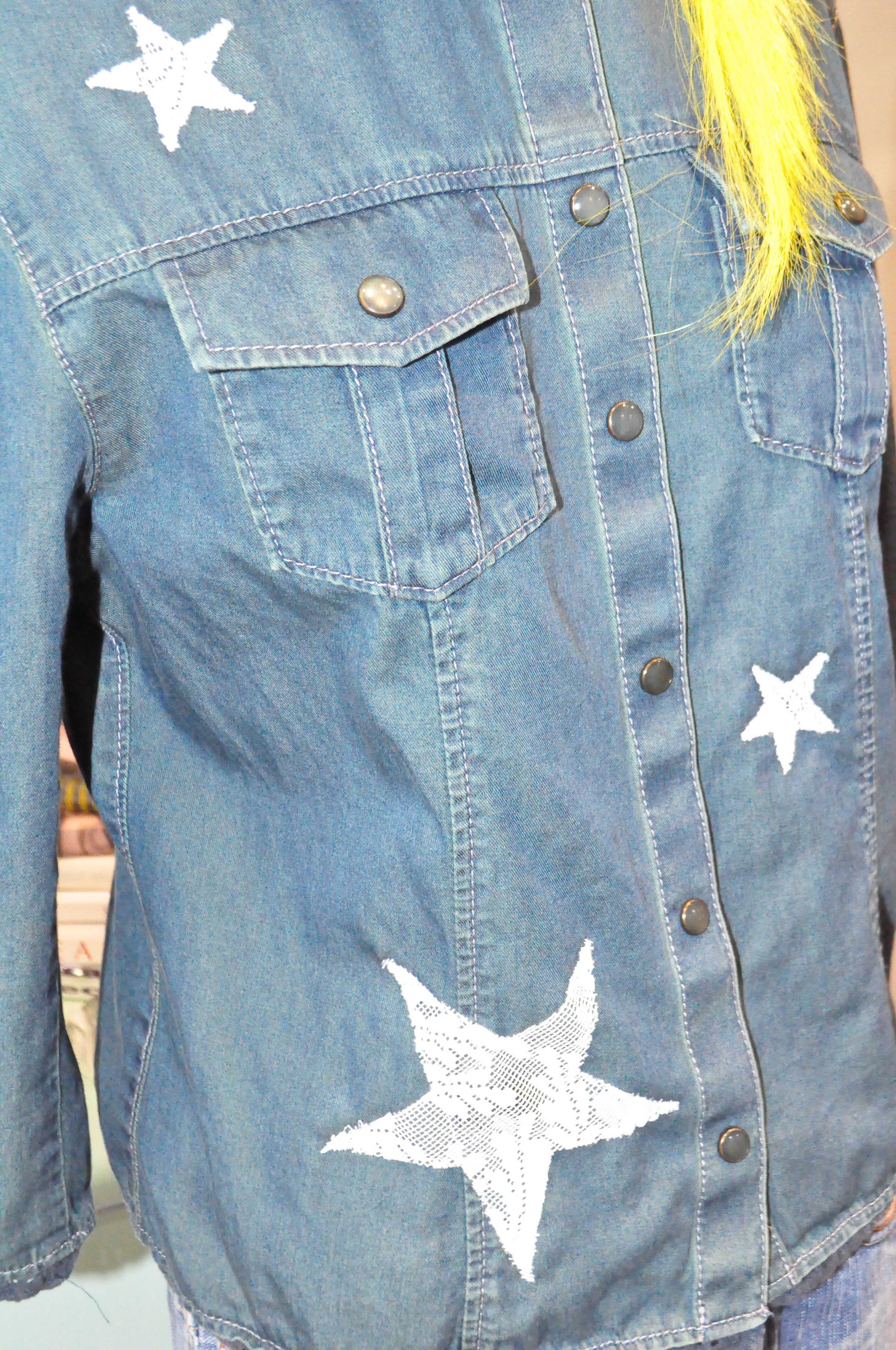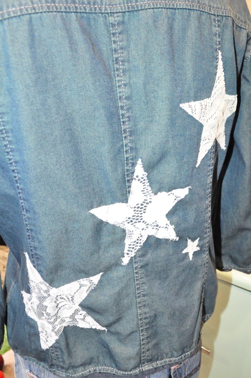 いろんなサイズの星のレースをぬいつけて、