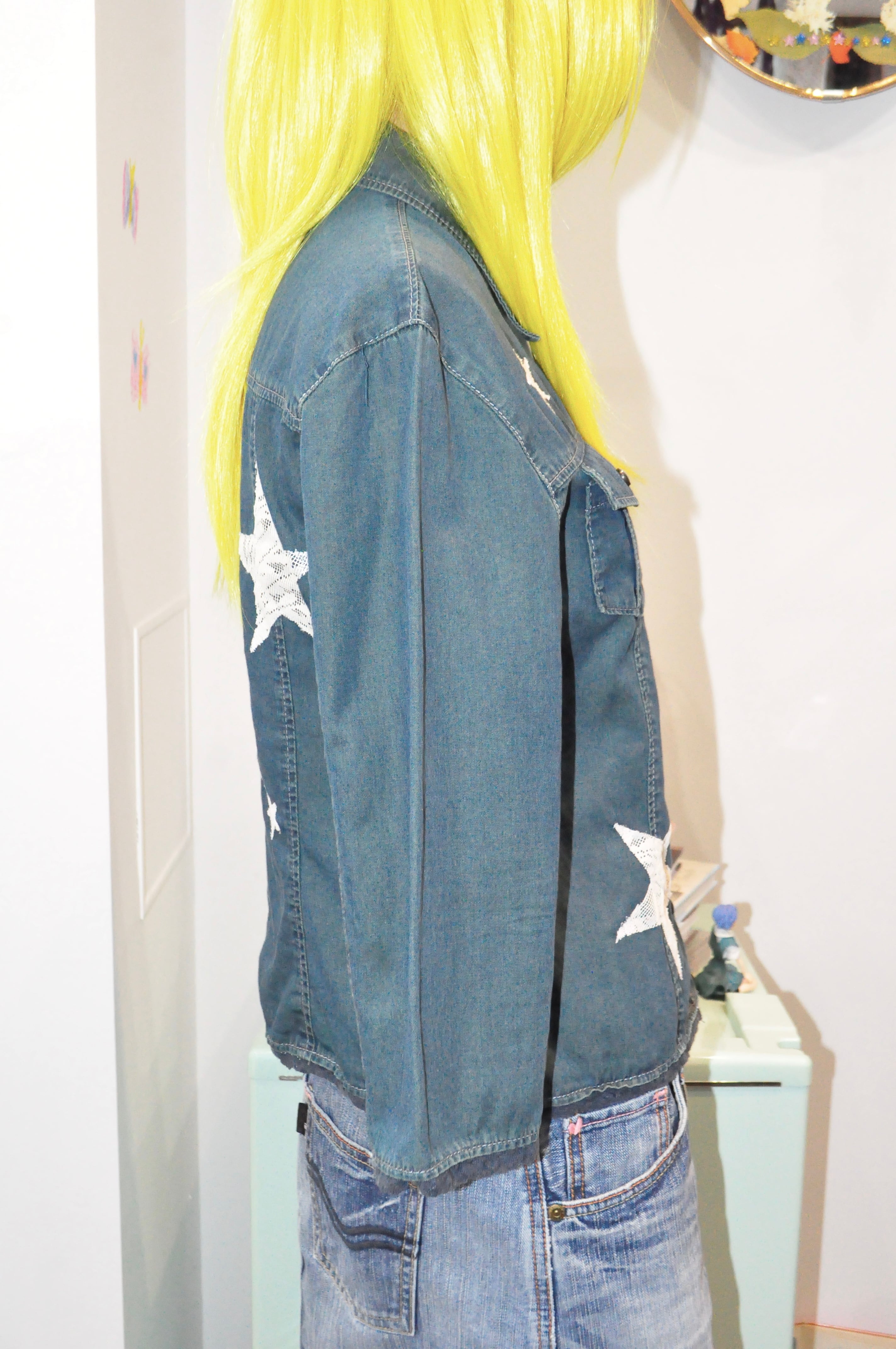 どれみ「この子は、ブルーのシャツジャケットをリメイクしたものʕ•̫͡•ʔ♬✧