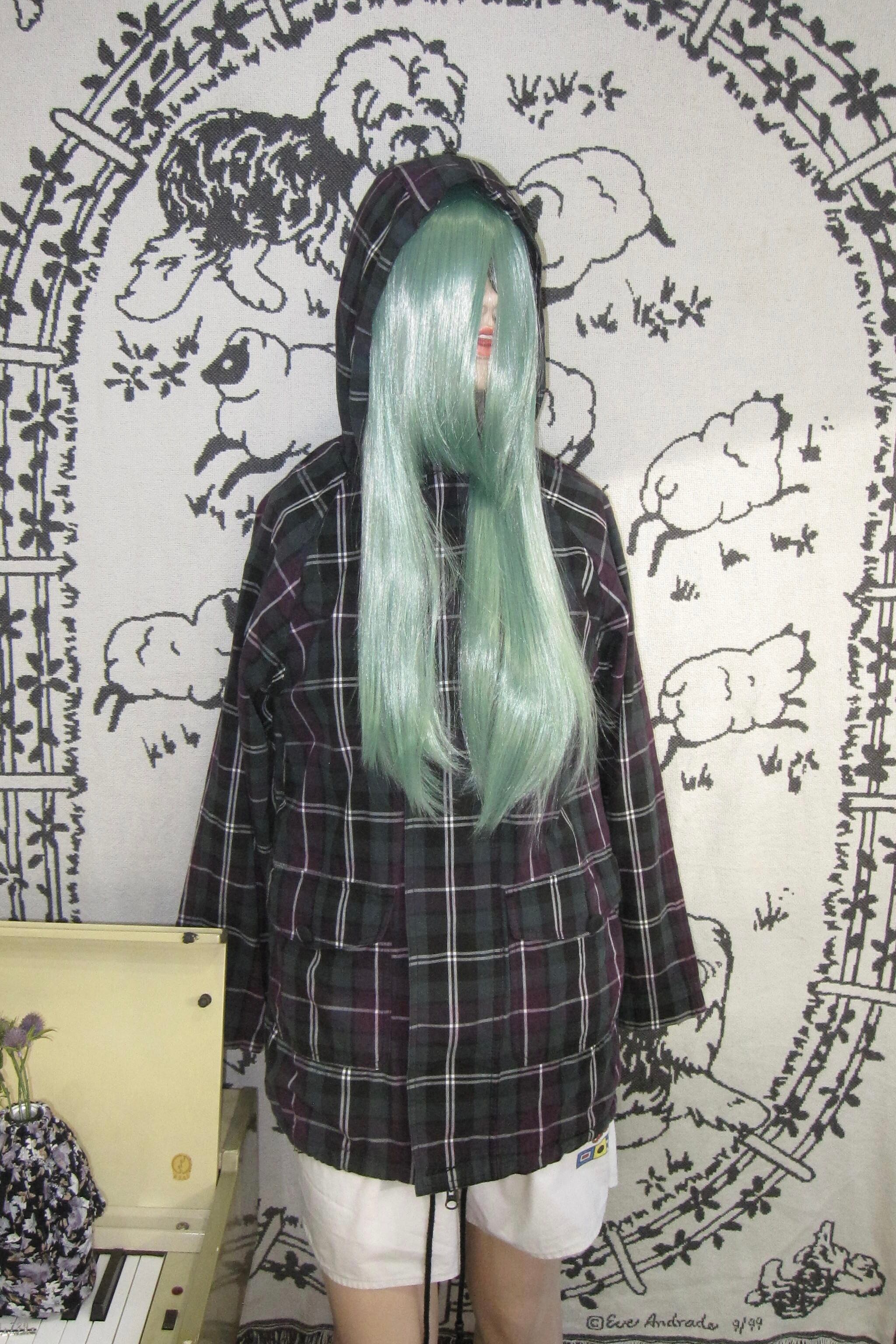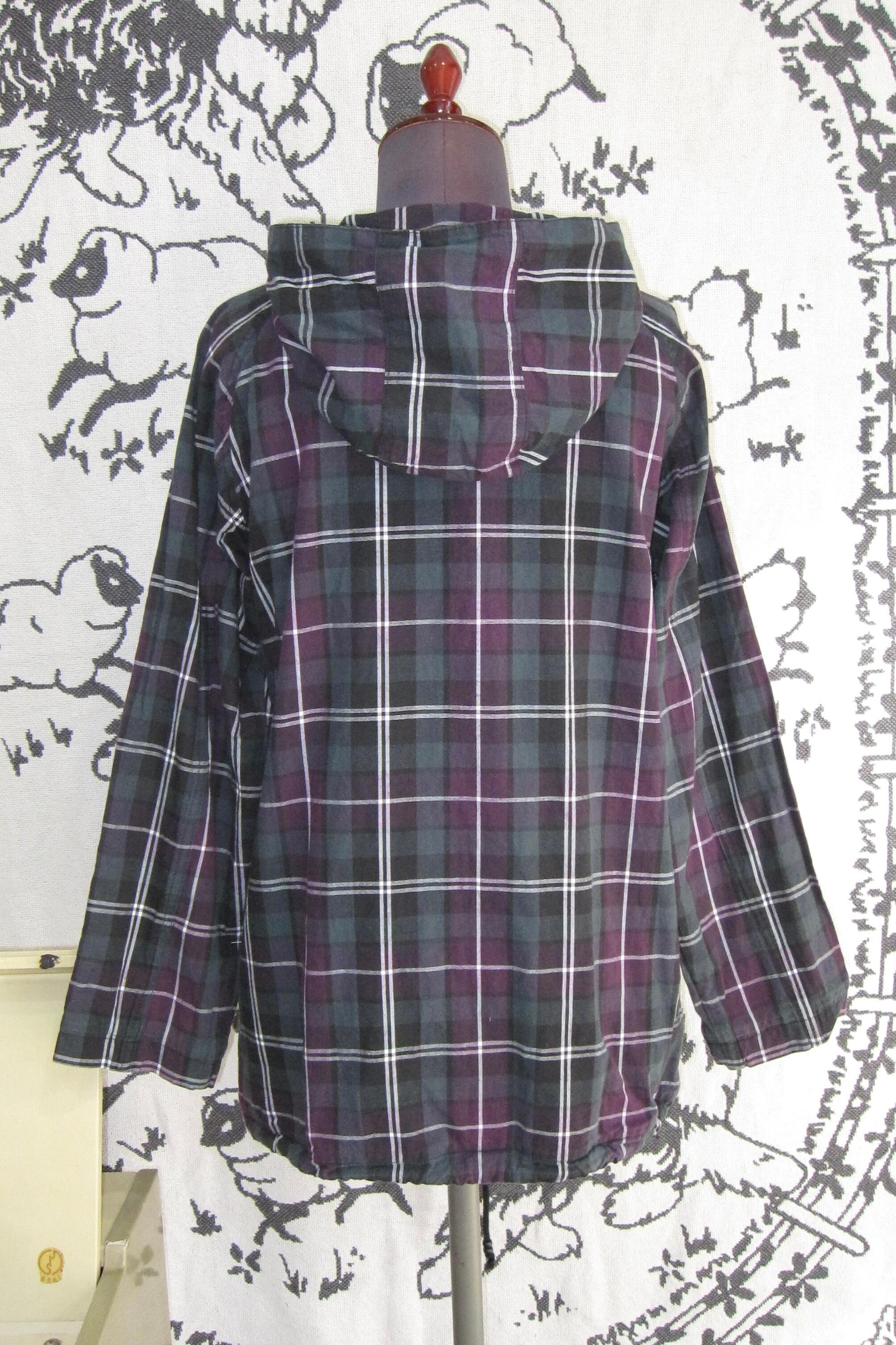 どれみ「落ち着いた緑と紫のチェック。