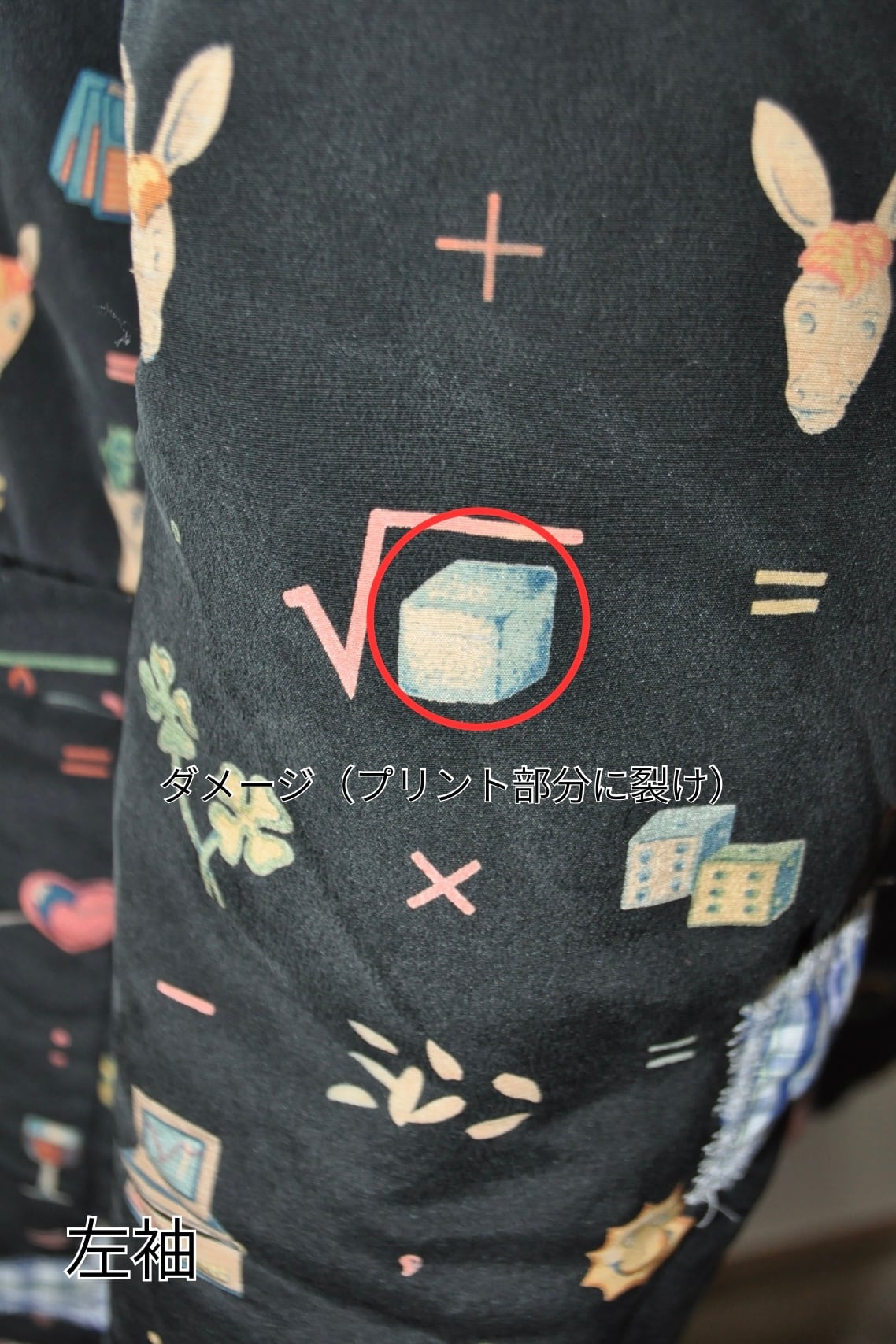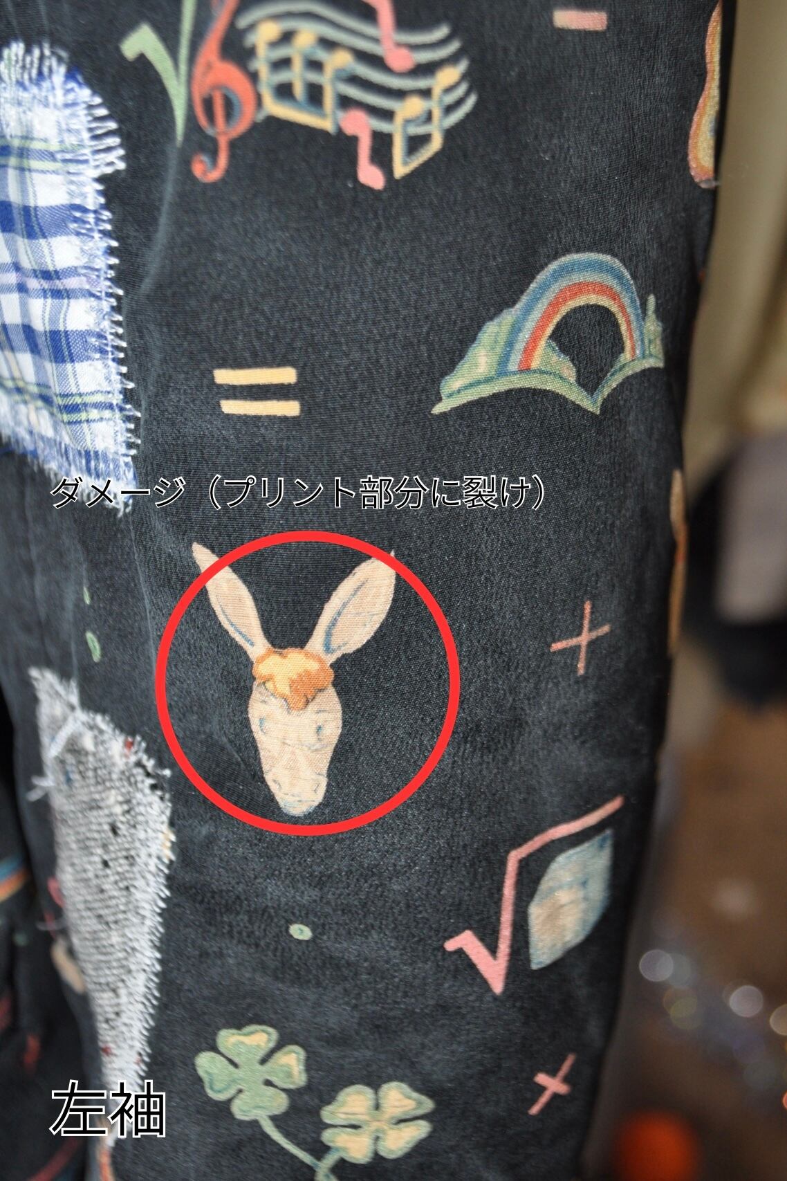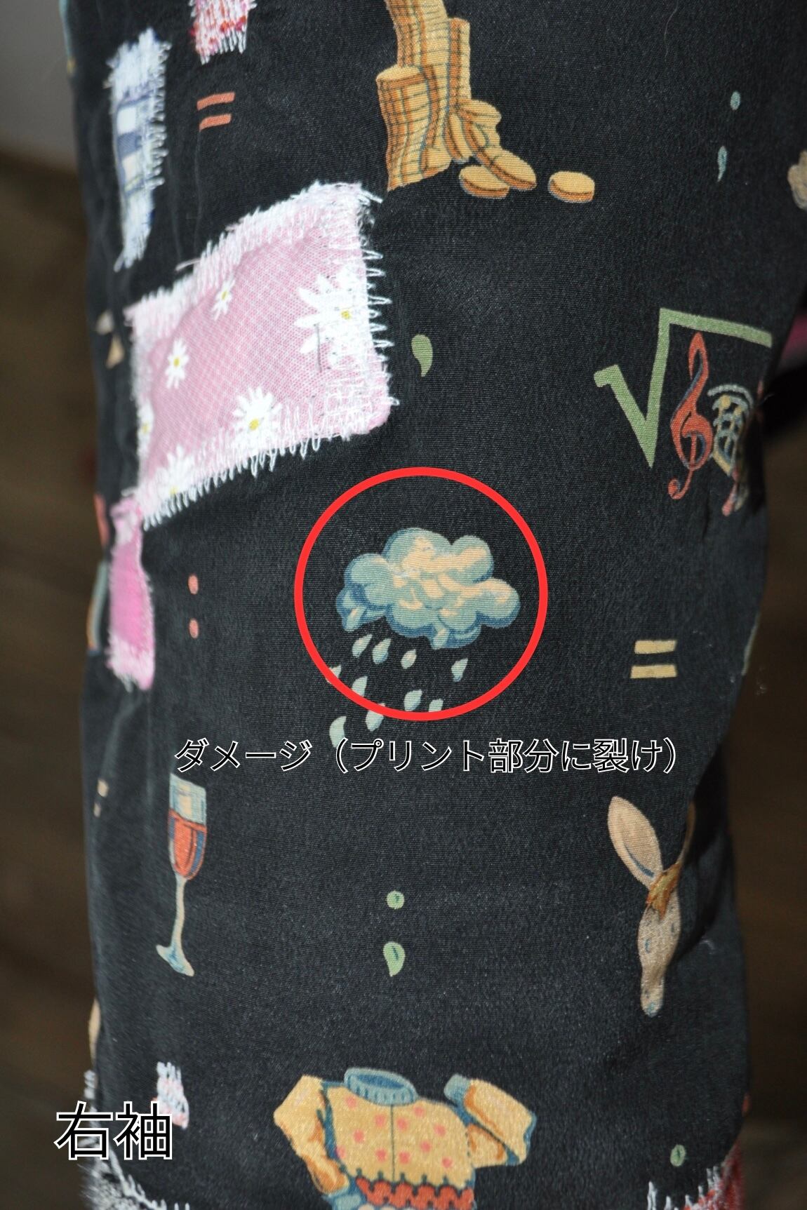 両袖のプリント部分に裂け