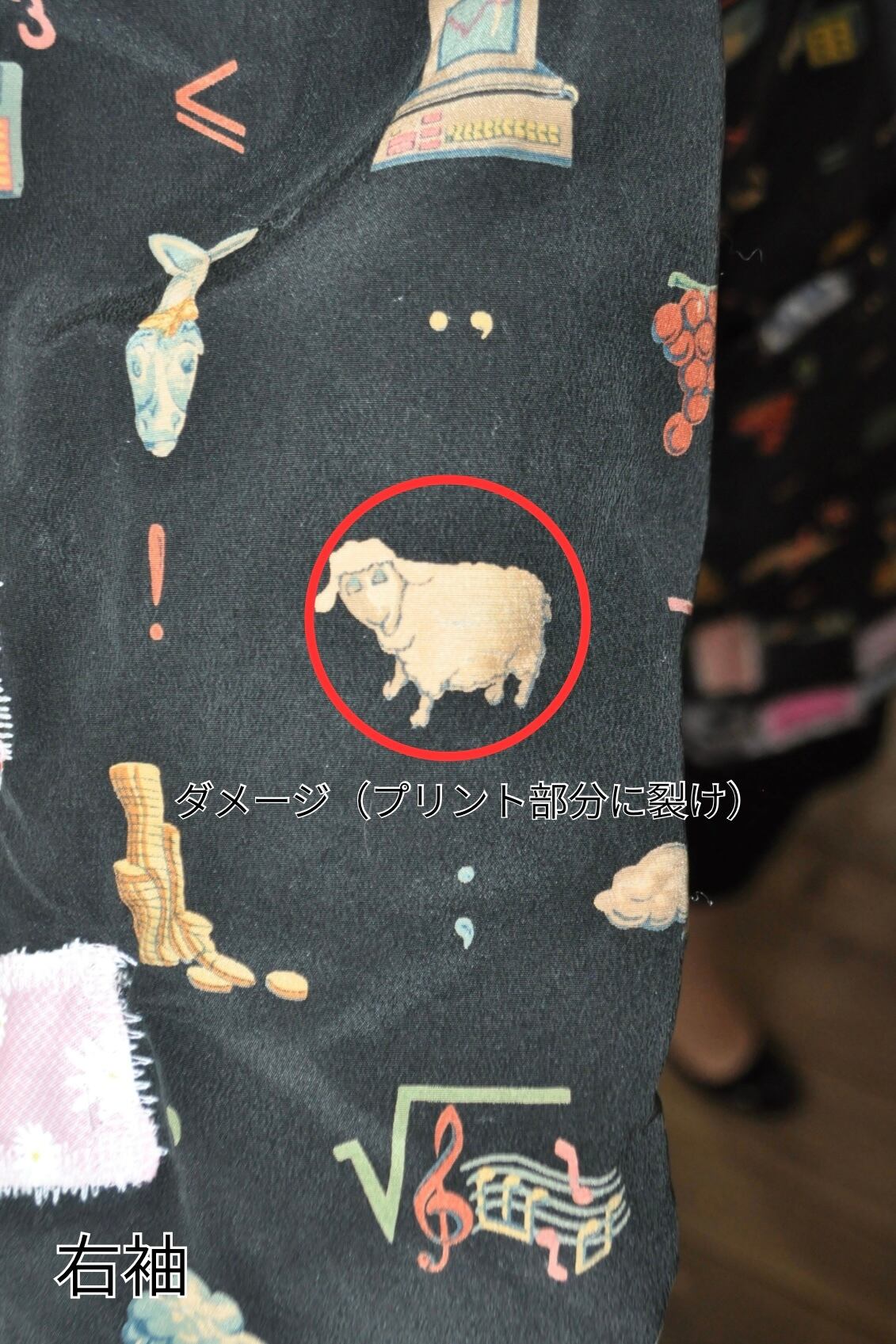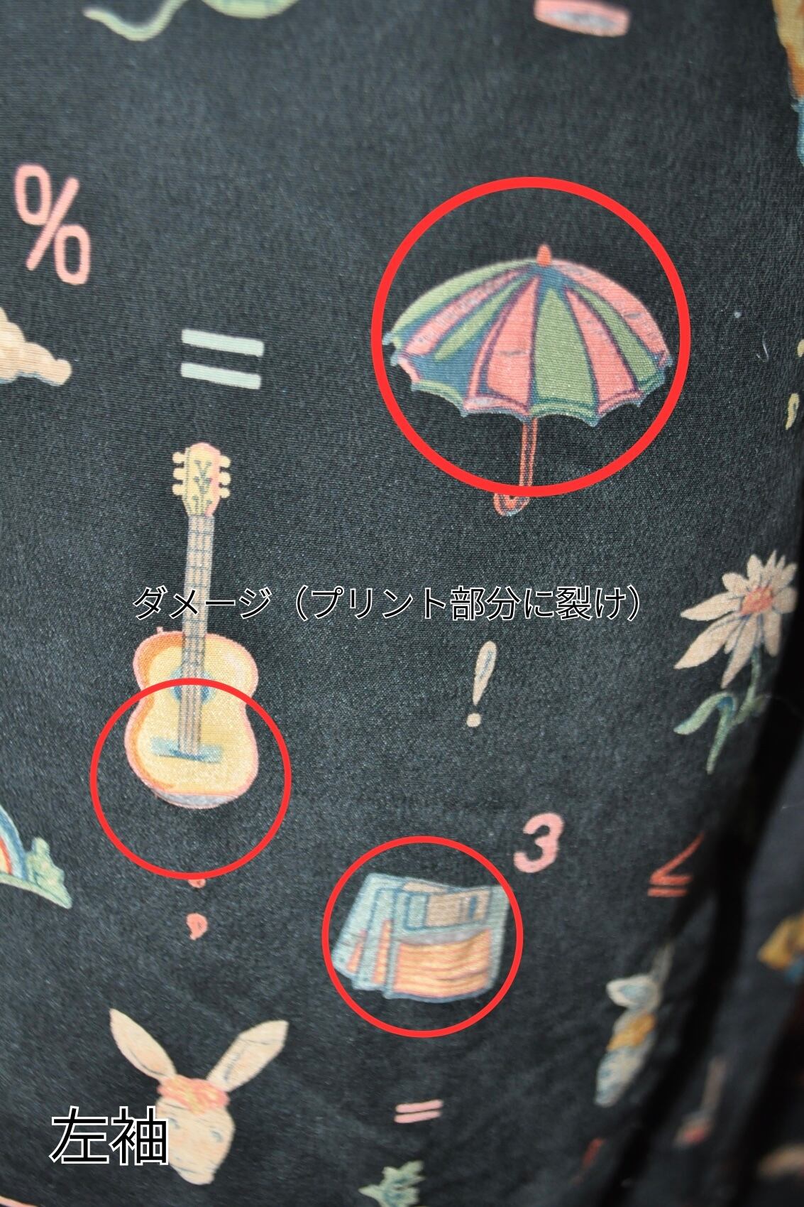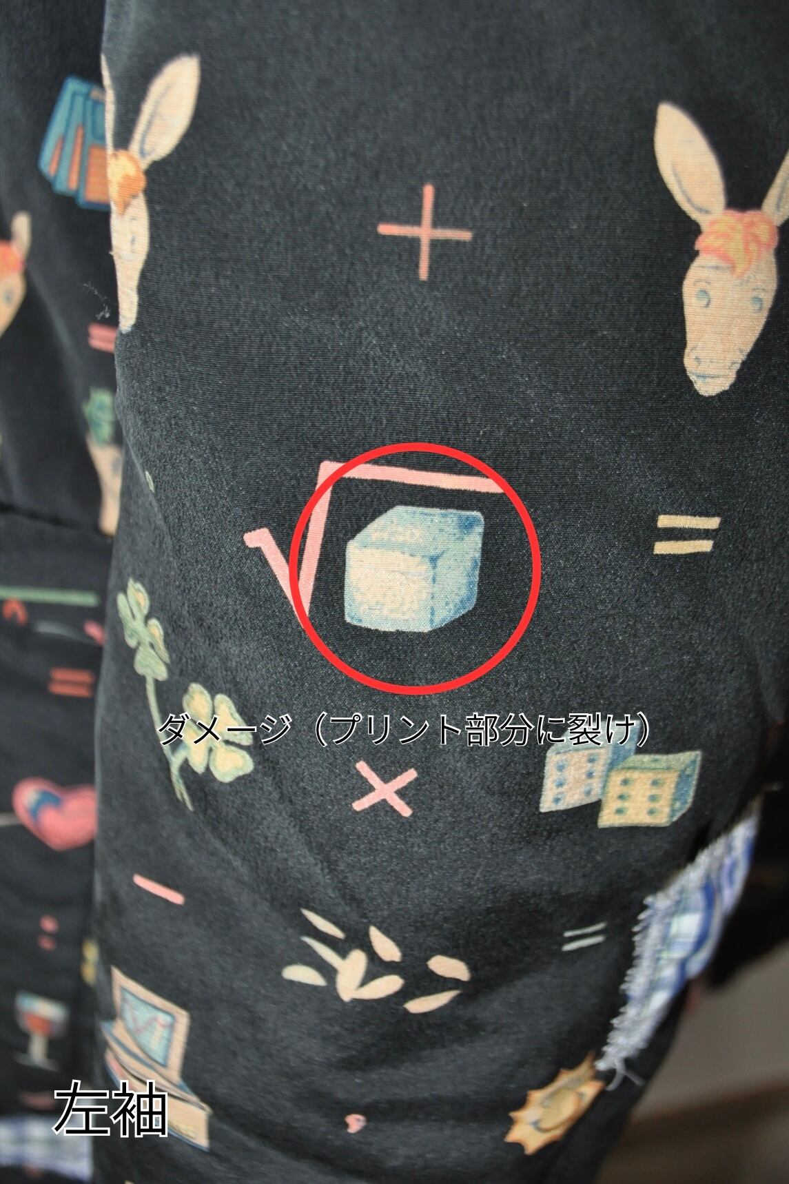 両袖のプリント部分に裂け