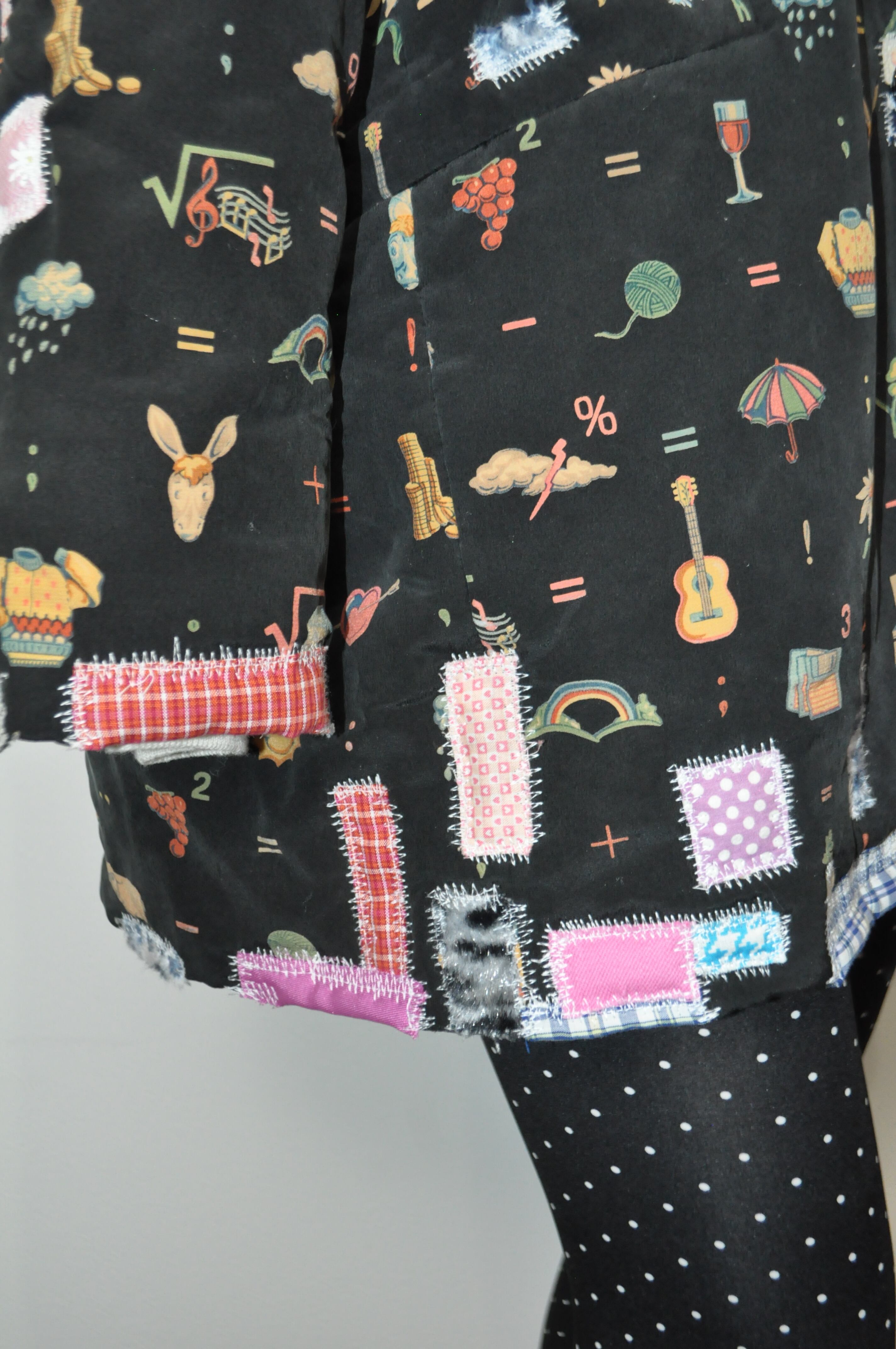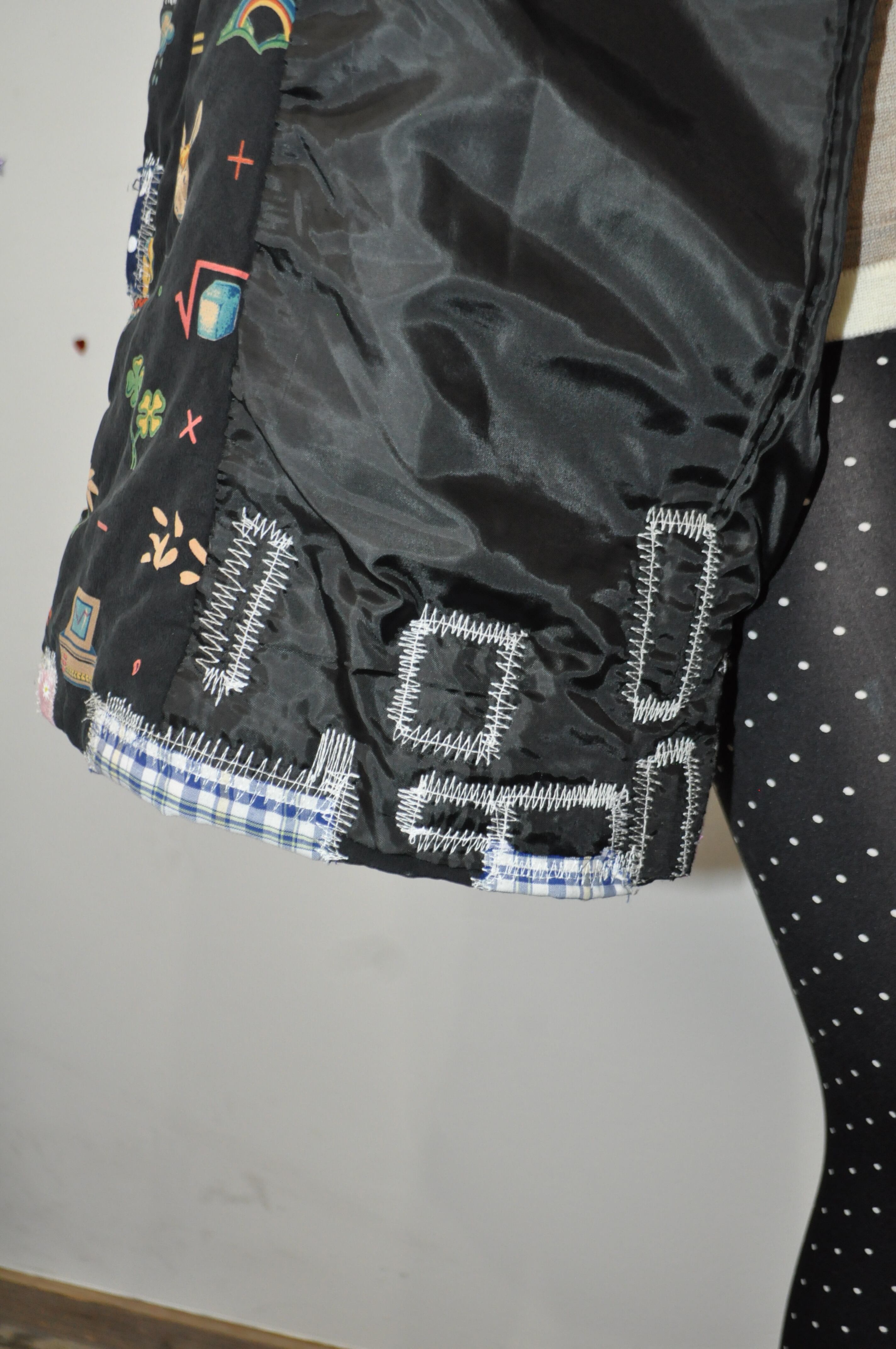 そっと破れてしまった場所には、似合いそうな生地を重ねて、チクチクお直ししたの。