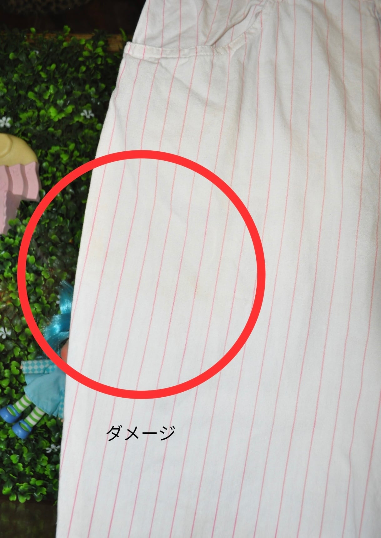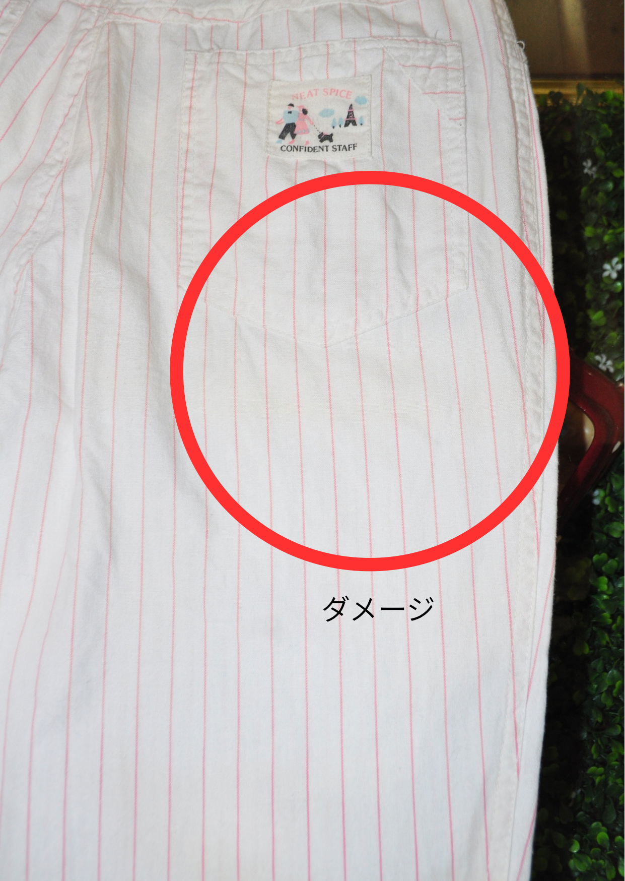後ろ側右ポケットの下辺り、右脚中央部にシミ