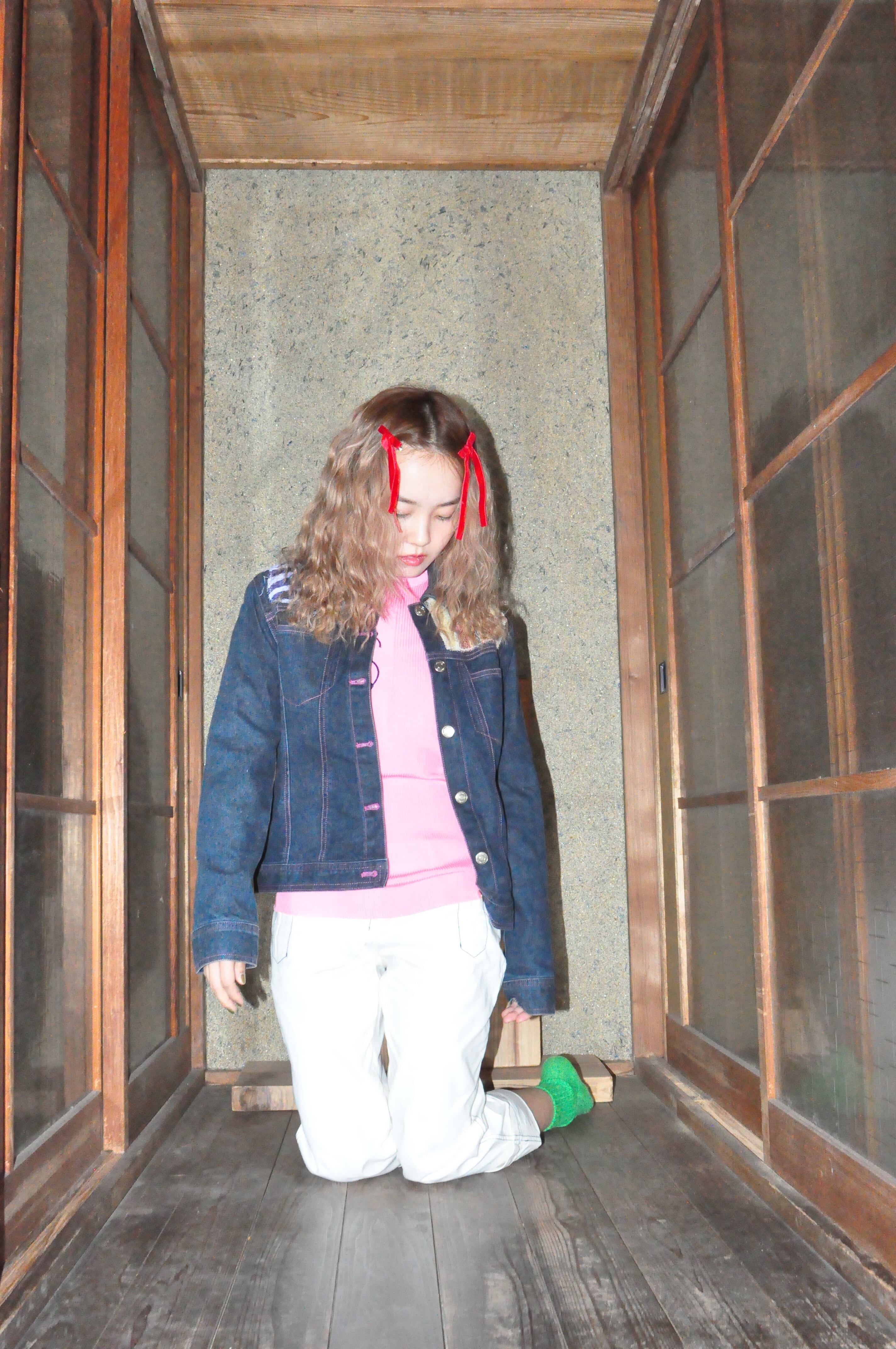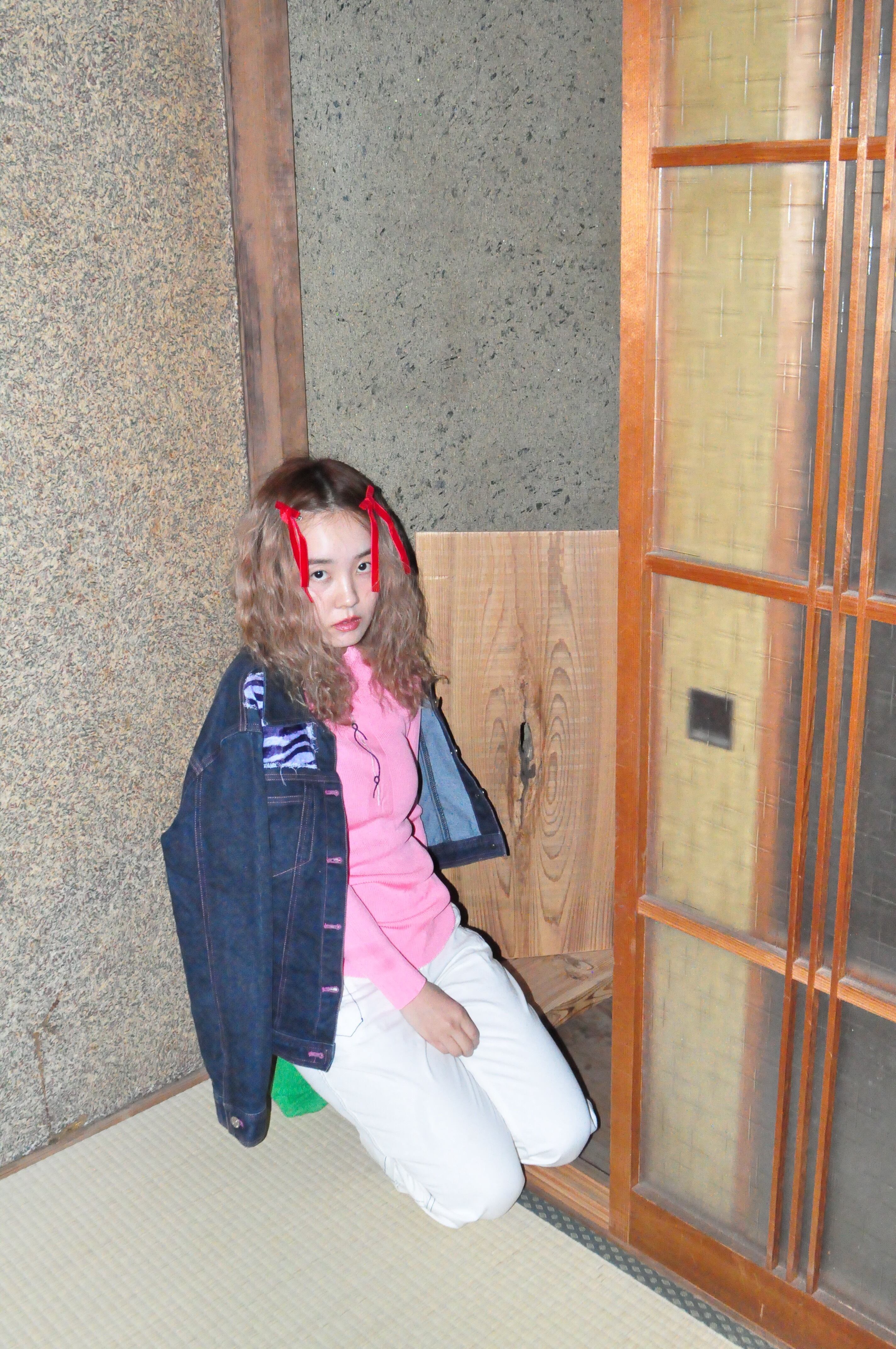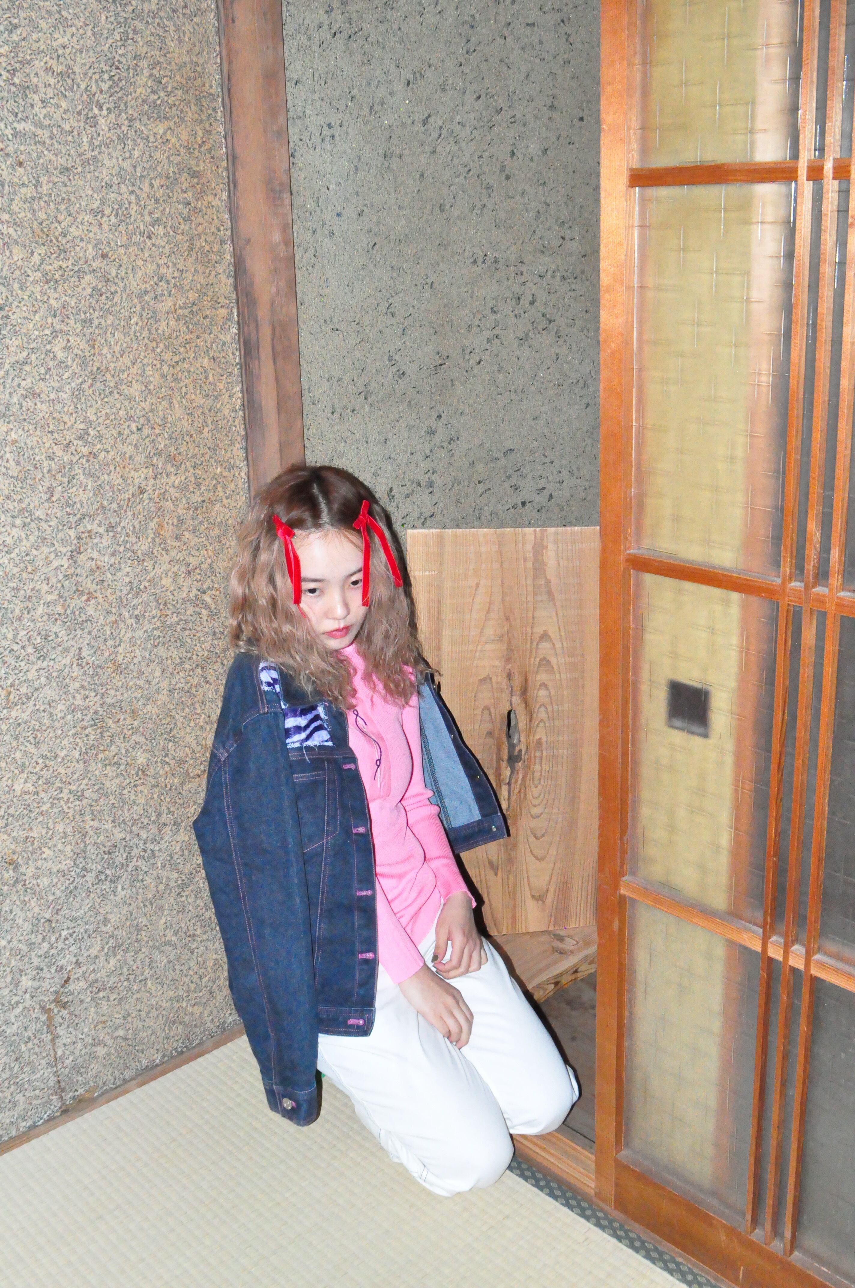 どれみ「ピンクのステッチが走るデニムジャケットoᐡ - ﻌ • ᐡฅ❤︎