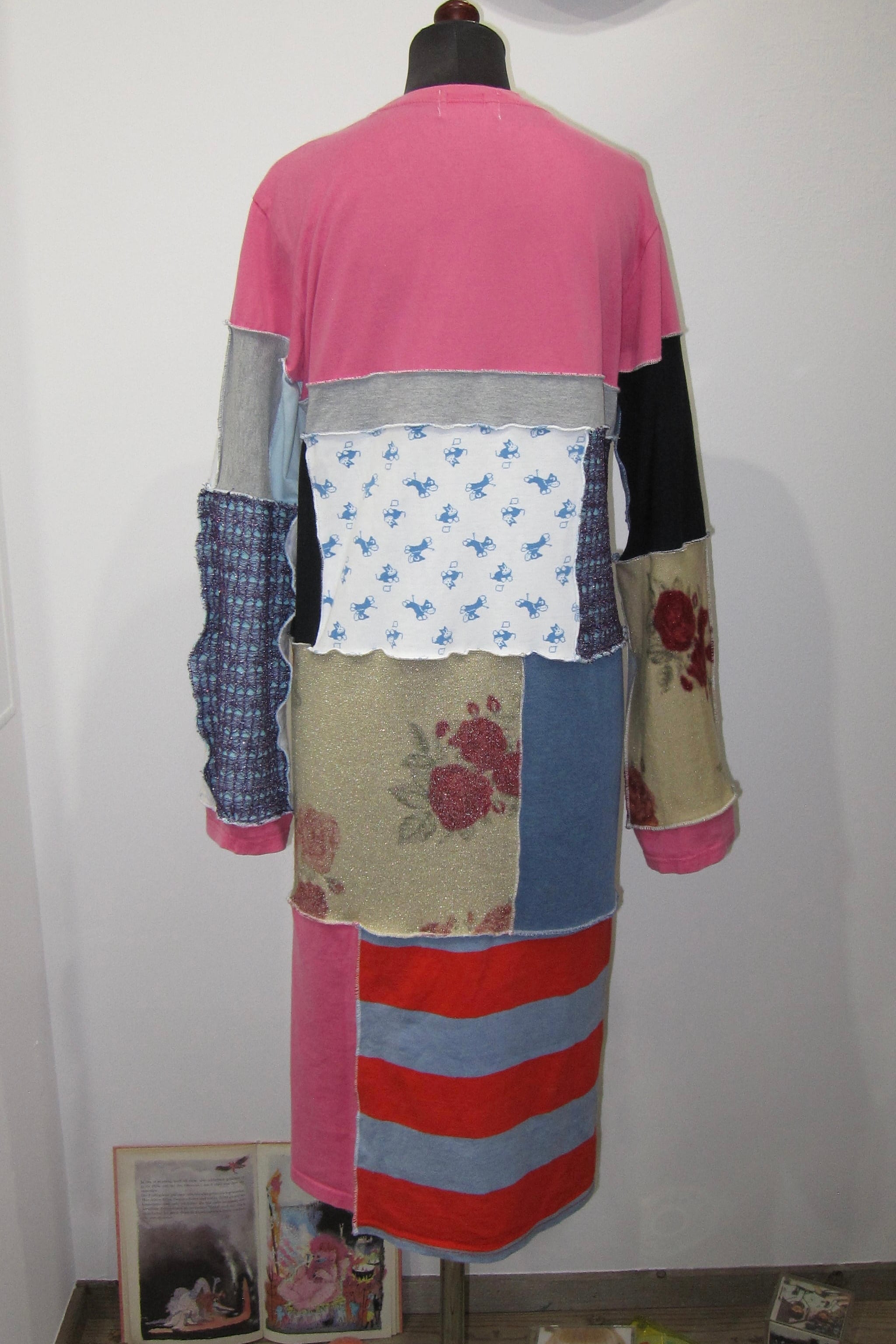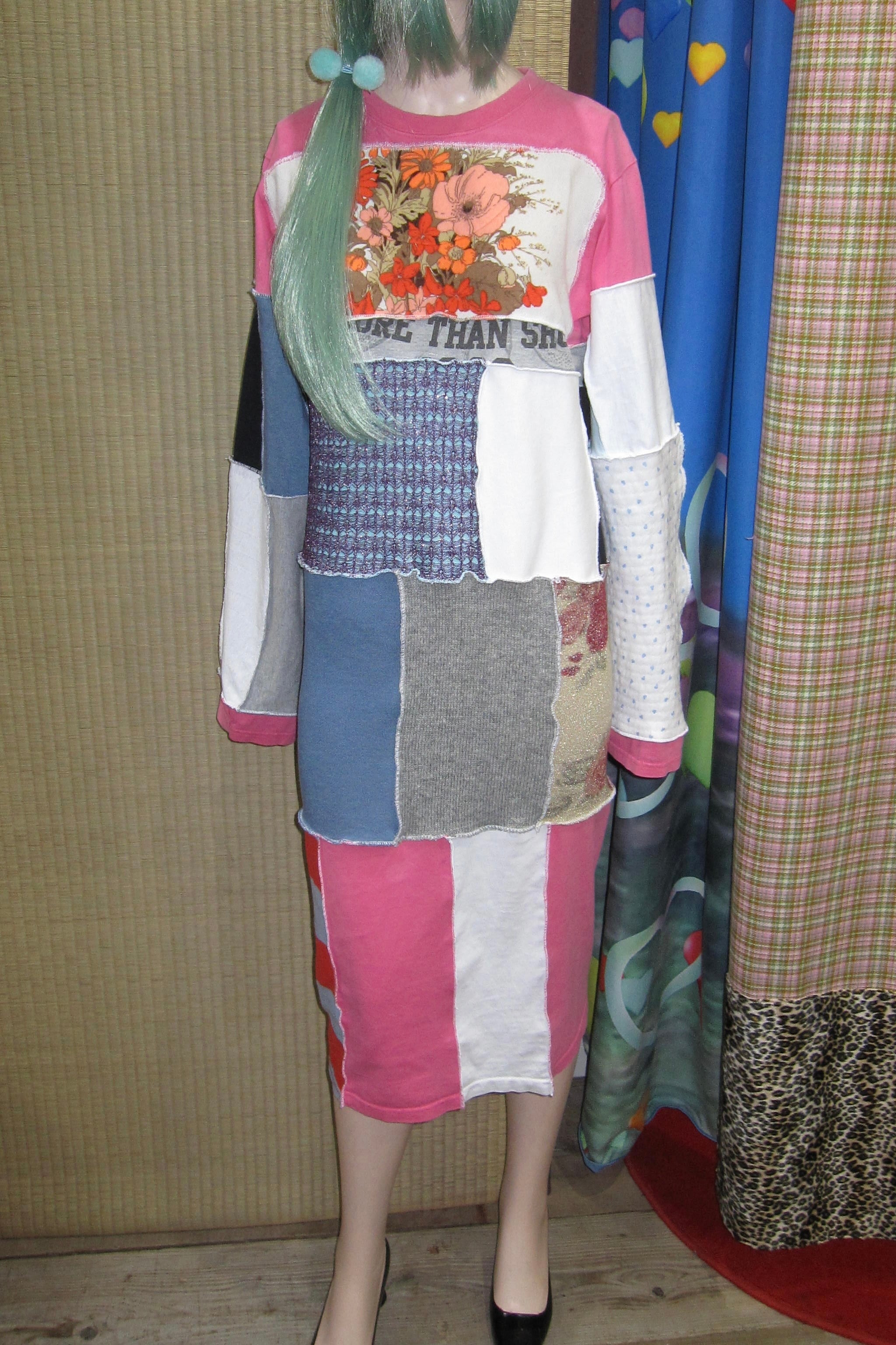どれみ「この子ね、ピンクのTシャツが“もっと広い世界に行きたい!”って言うからいろんな柄の生地たちを集めてつないであげたの♫⋆。♪ ✩°