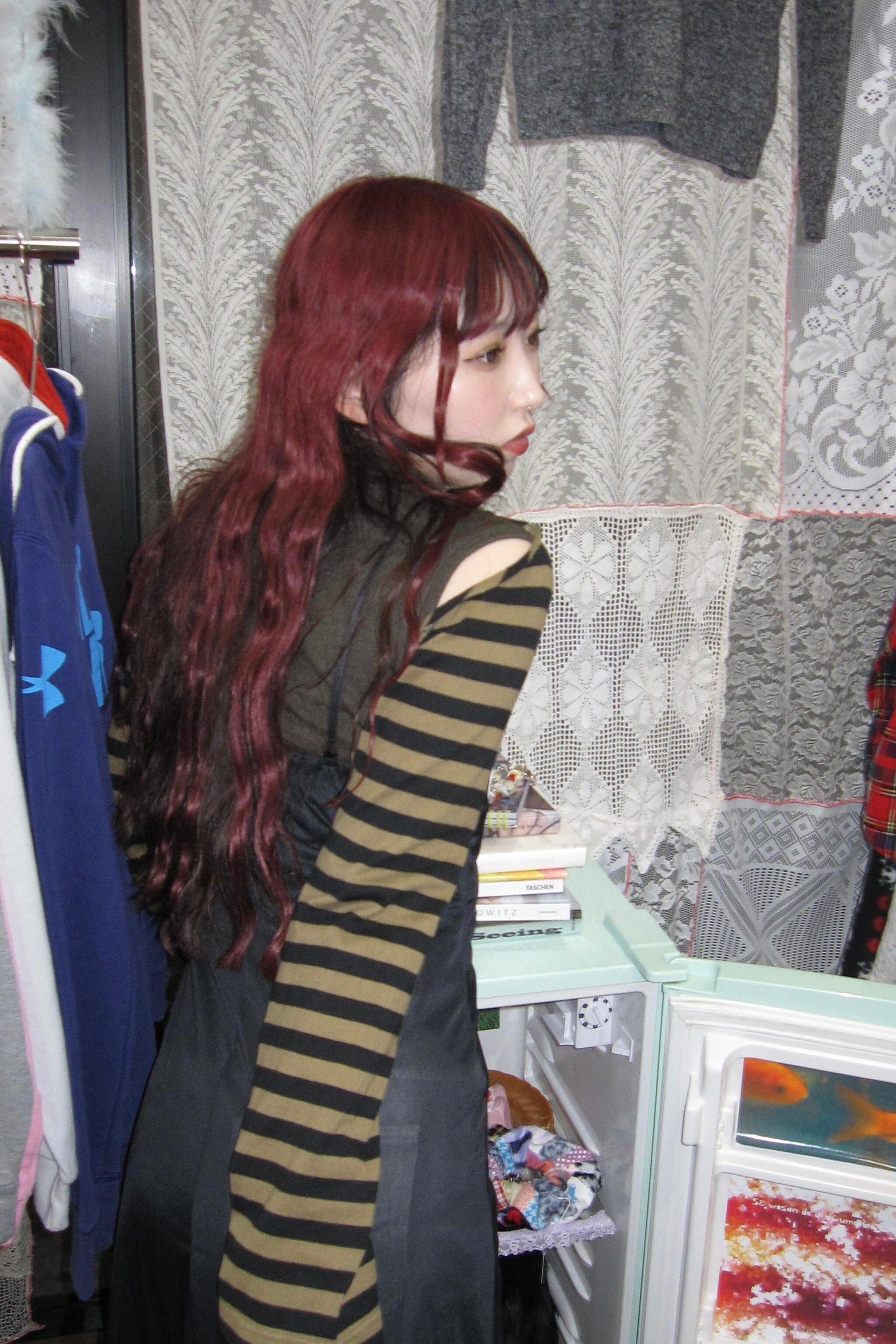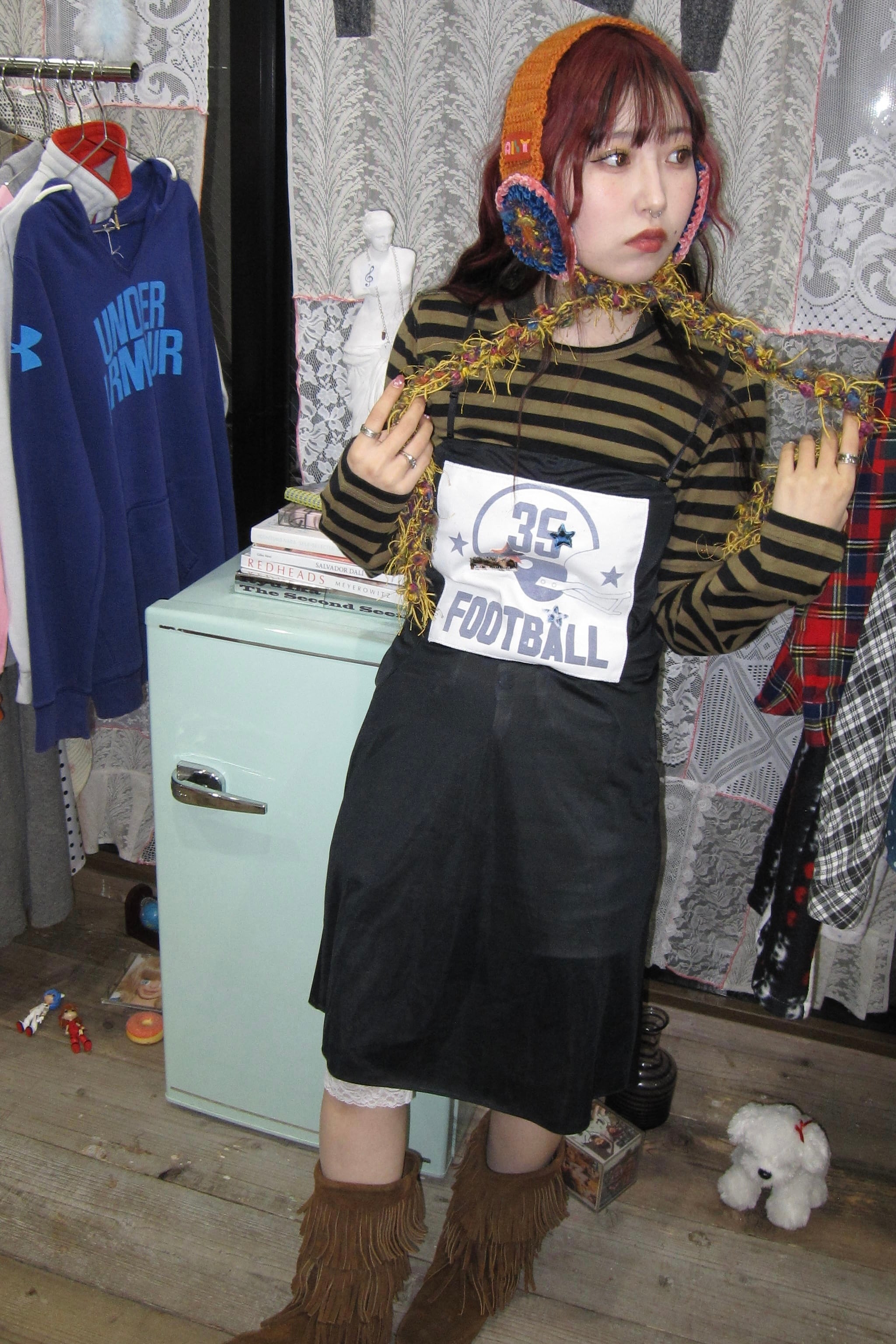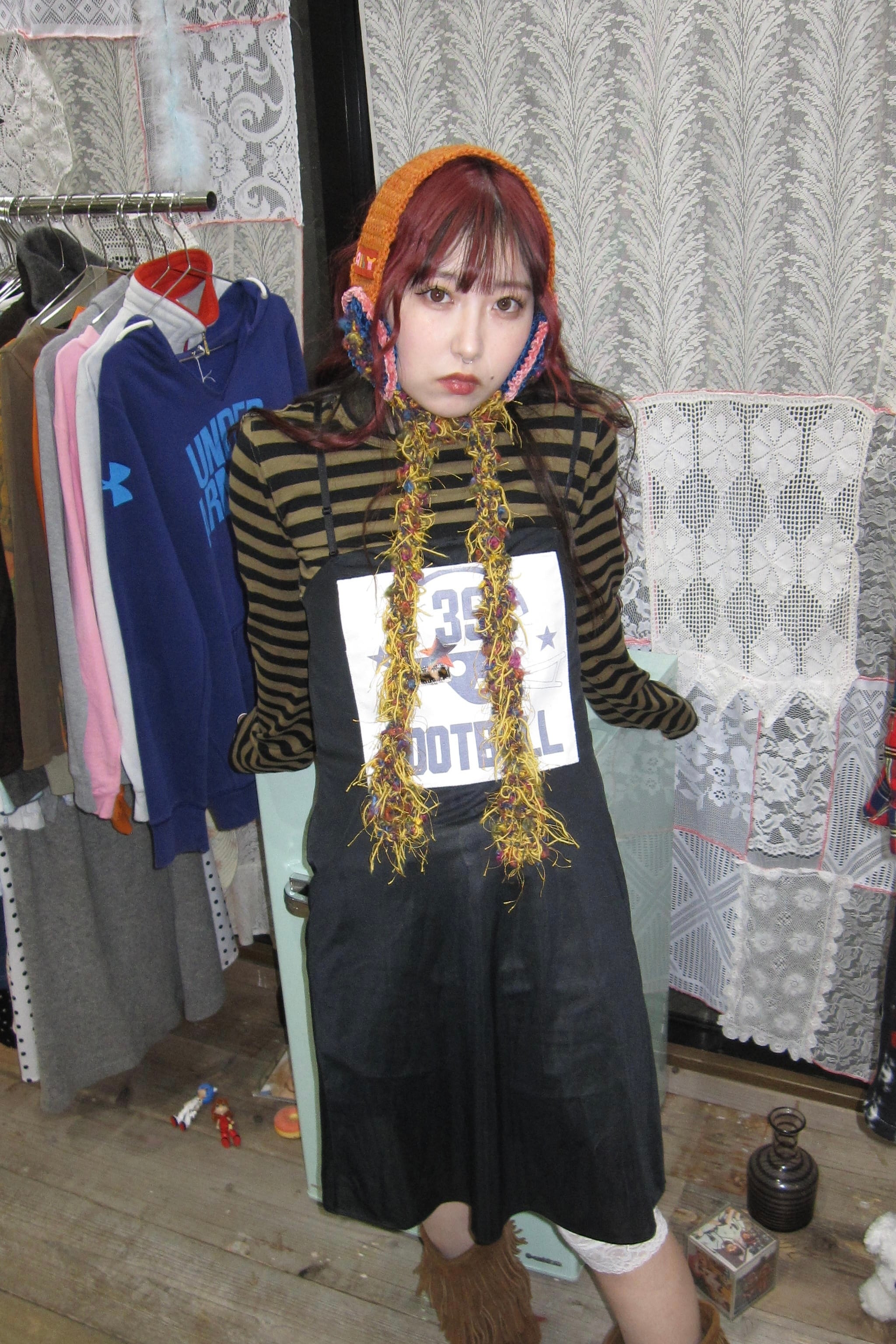 どれみ「黒のキャミワンピにTシャツモチーフを合わせて、そこへ素材違いの星をちりばめた特別なリメイクなの☾⋆⁺₊♫✩°。