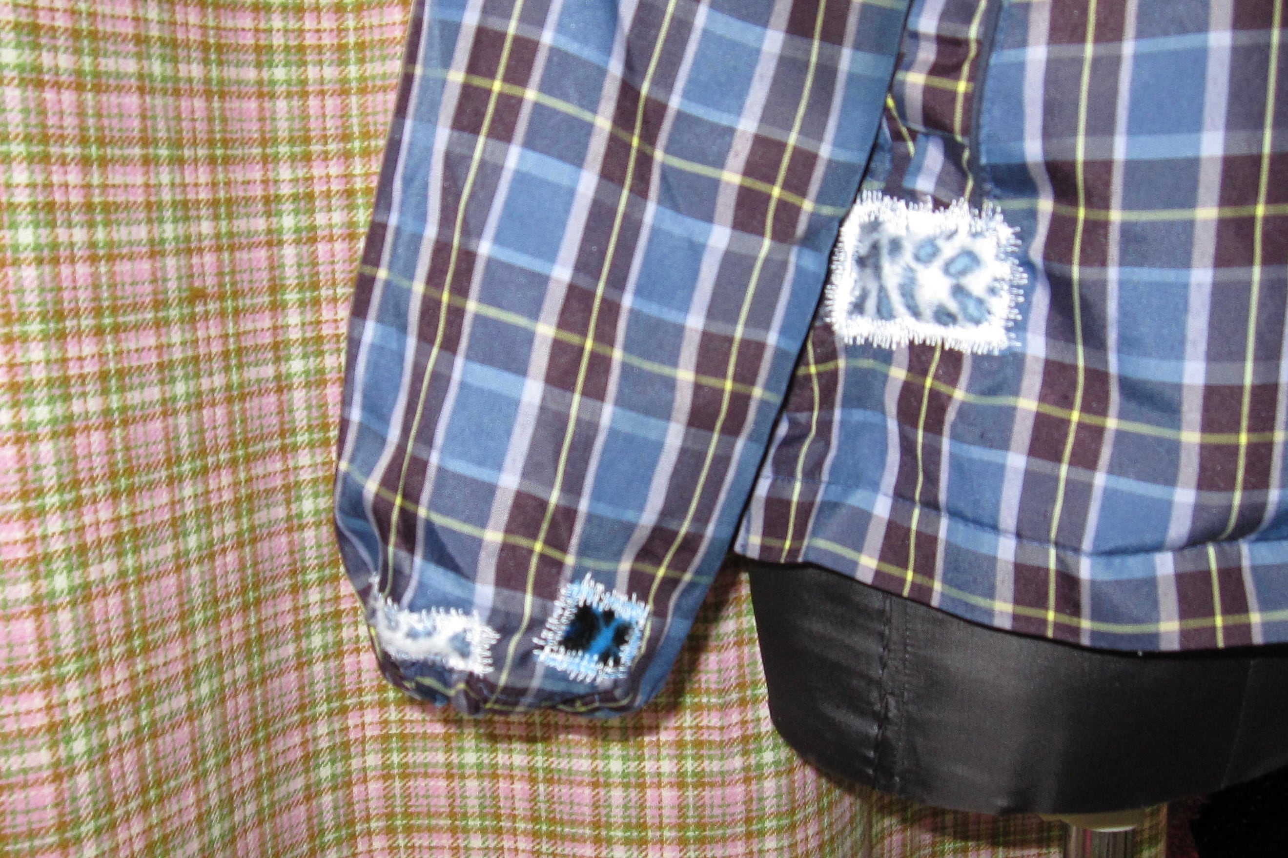 6枚目のように右袖口と右ポケットにリペア跡がございます