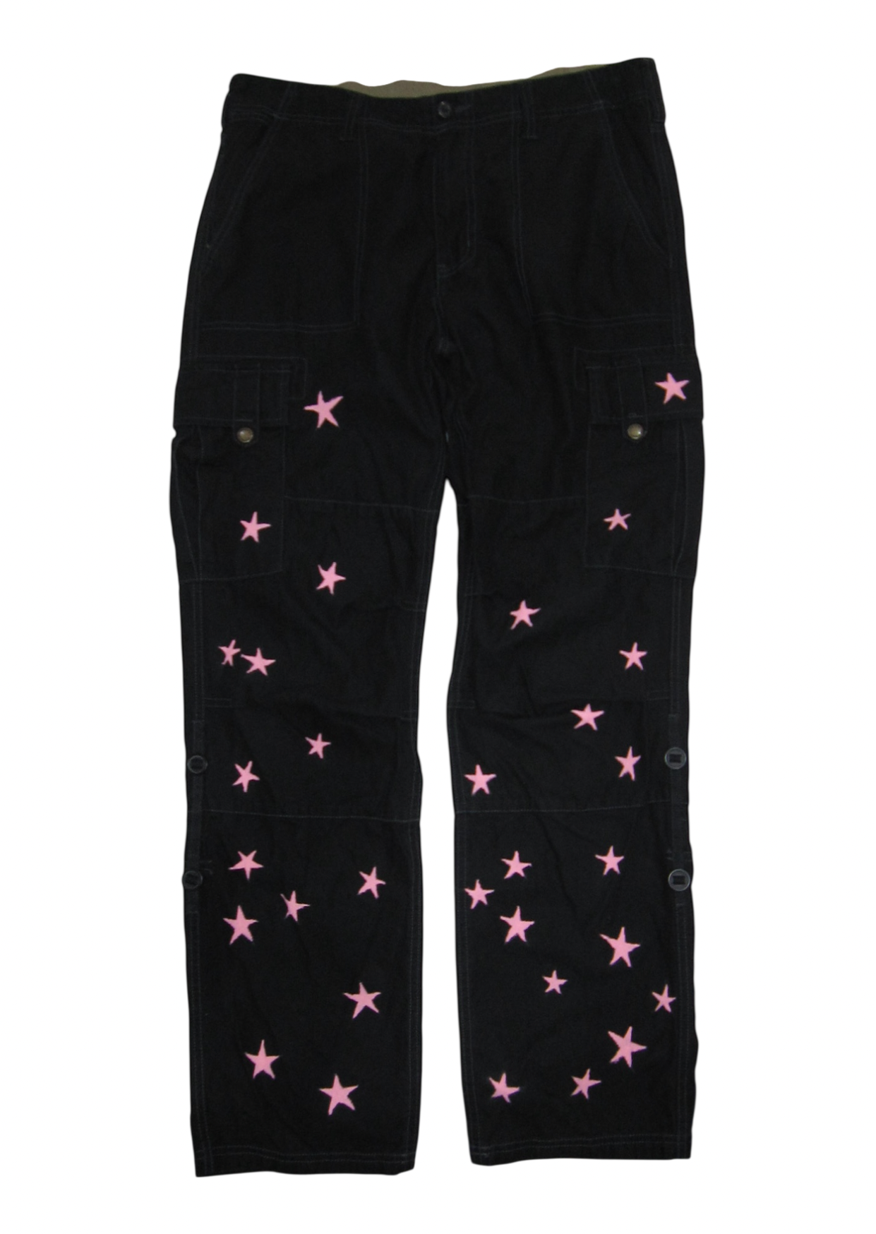 どれみ「この黒のパンツね、すごくゆるっとしてて安心するシルエットなんだけど、実はすっごく夢が詰まってるの。ピンクの星がぽんぽんって散りばめられてて、まるで夜にこっそり落ちてきた流れ星をそのまま拾って貼りつけたみたいなの。」