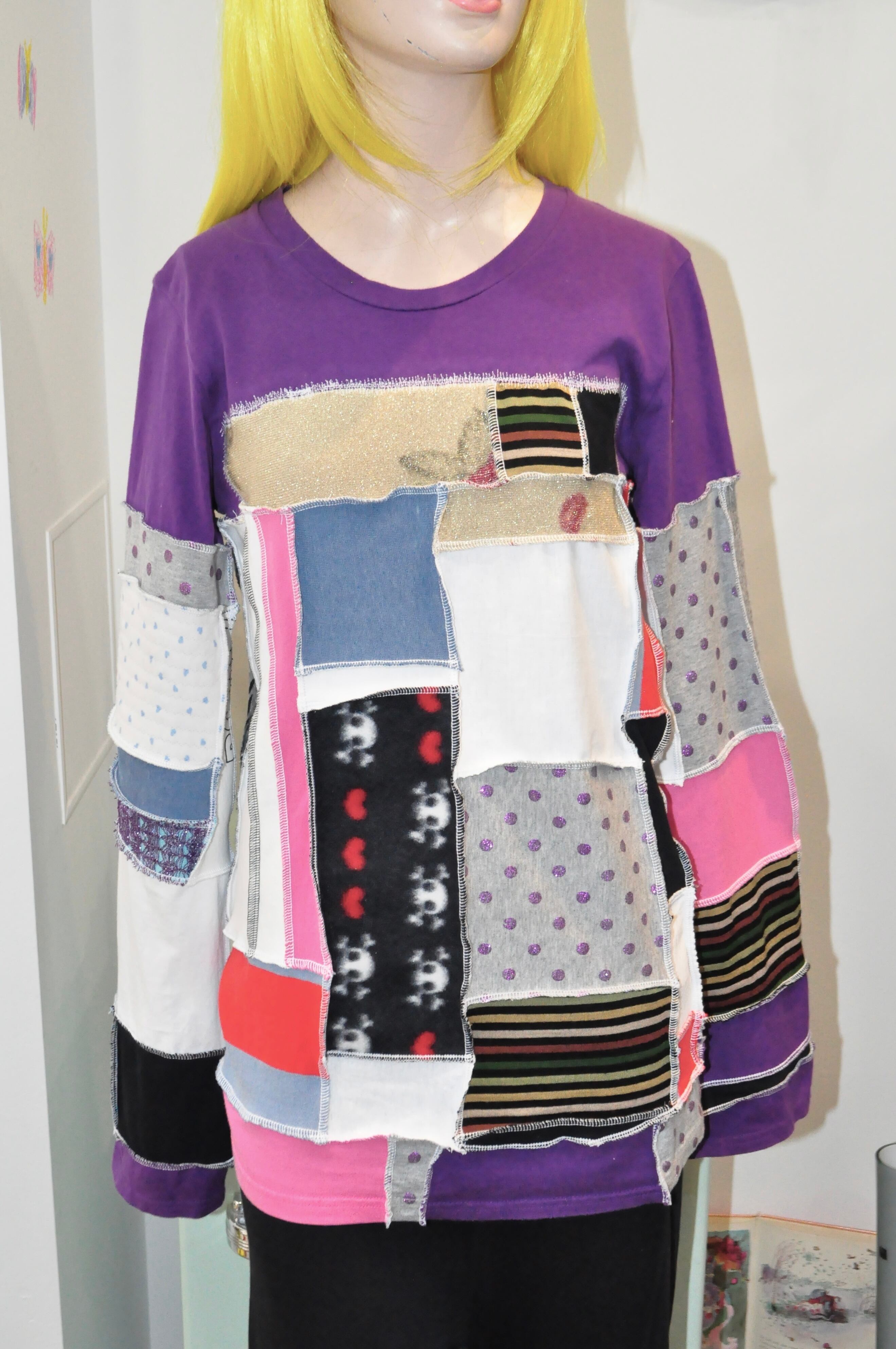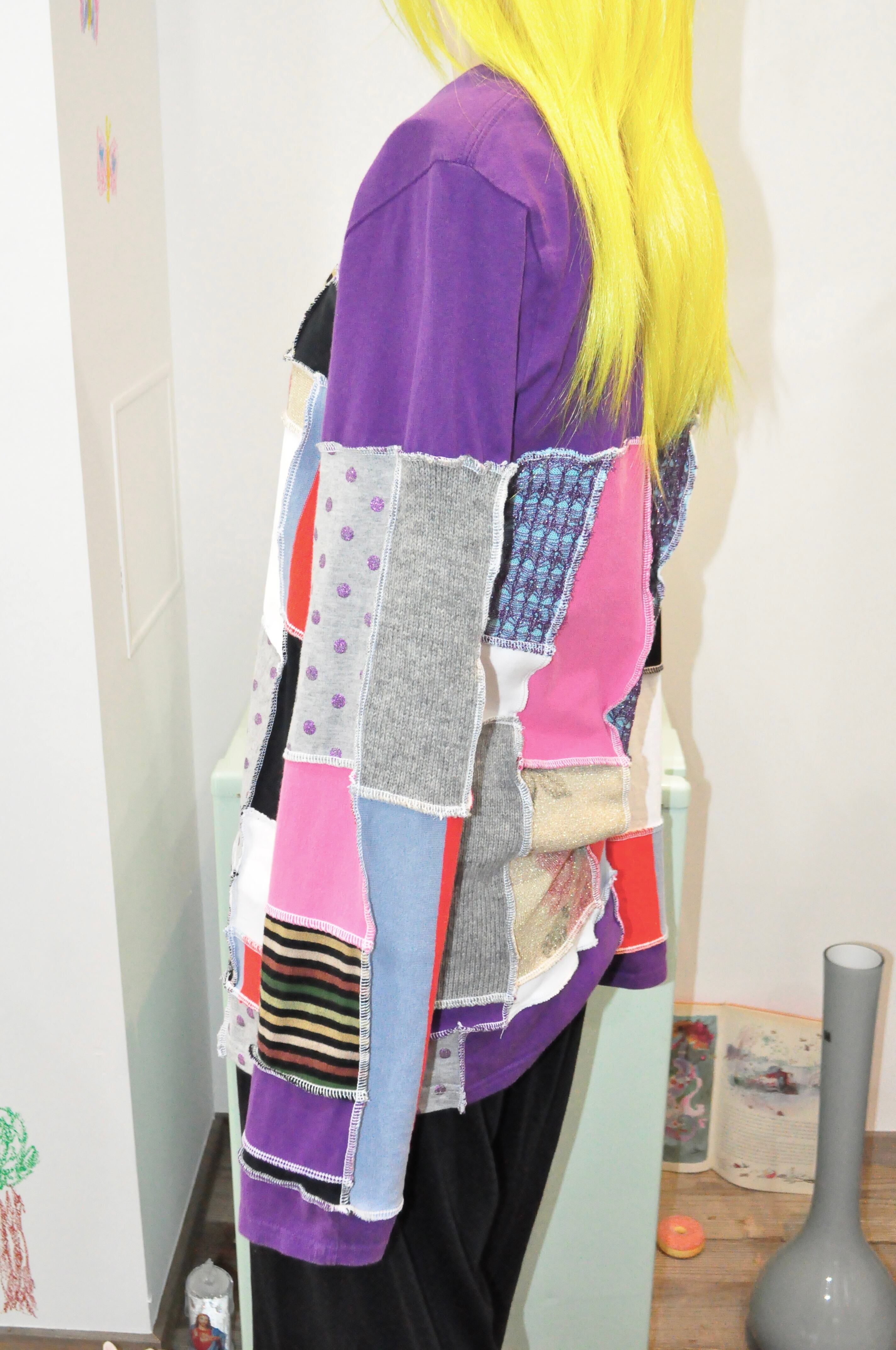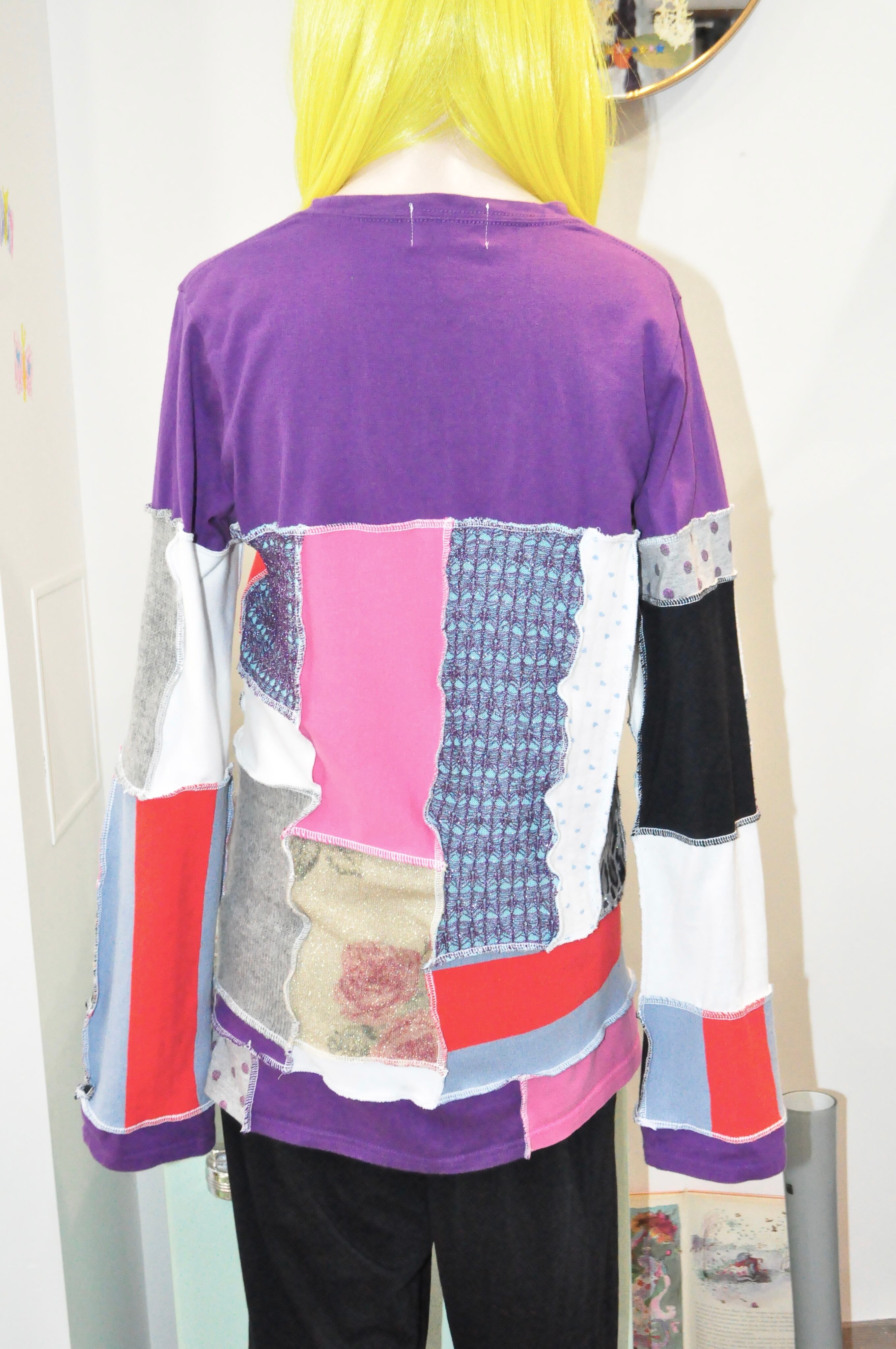 どれみ「元の紫Tシャツが、生まれ変わってパッチワークのロンTになったよ(⸝⸝˃̶͈ ૢ ૢ˂̶͈⸝⸝)