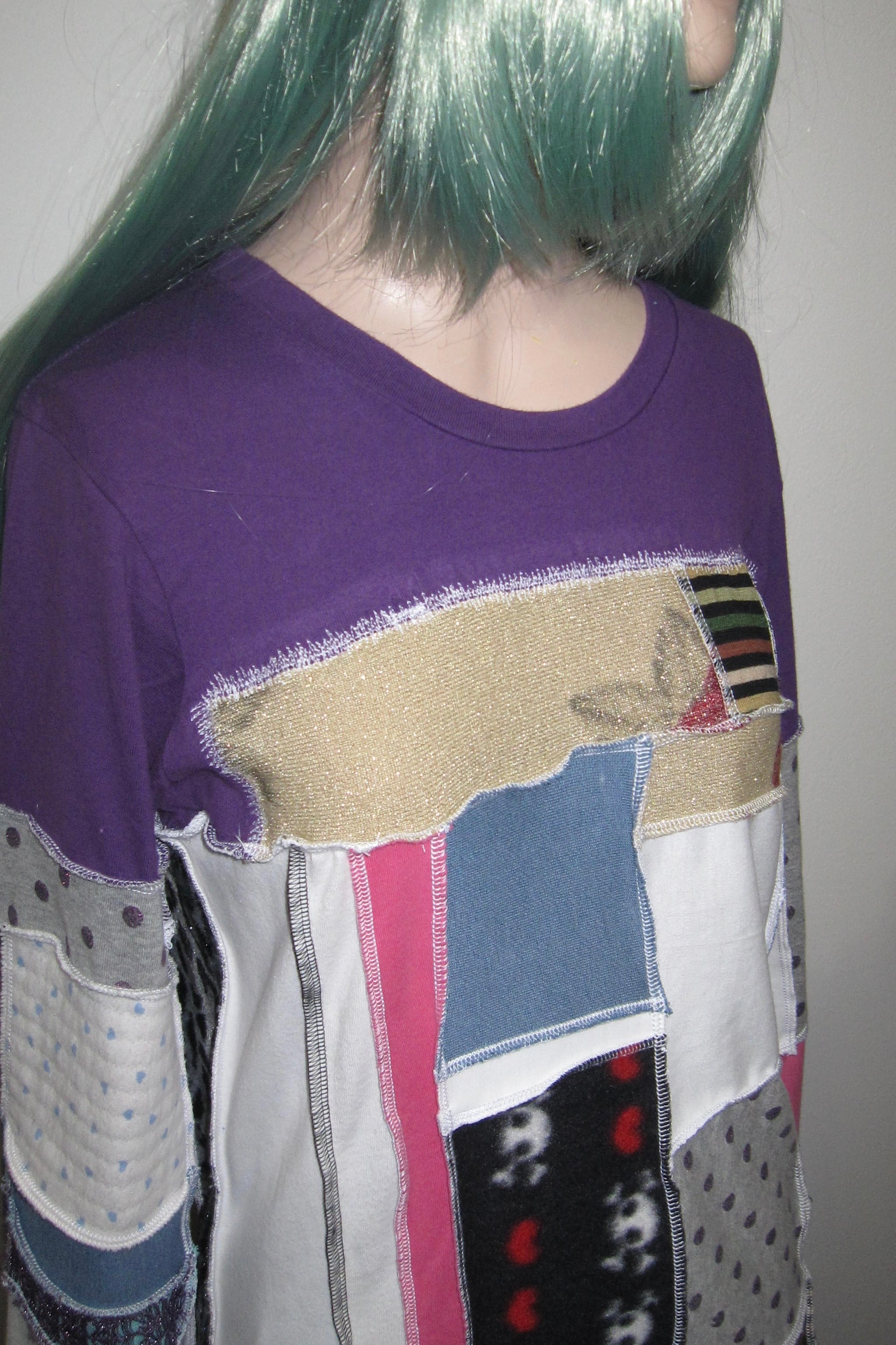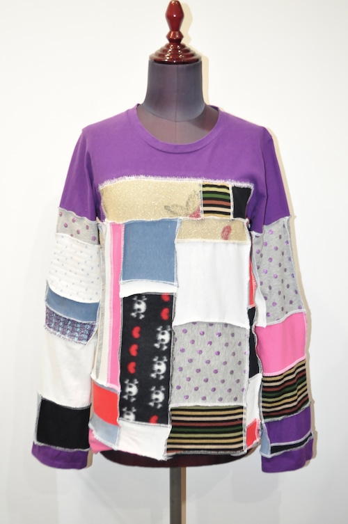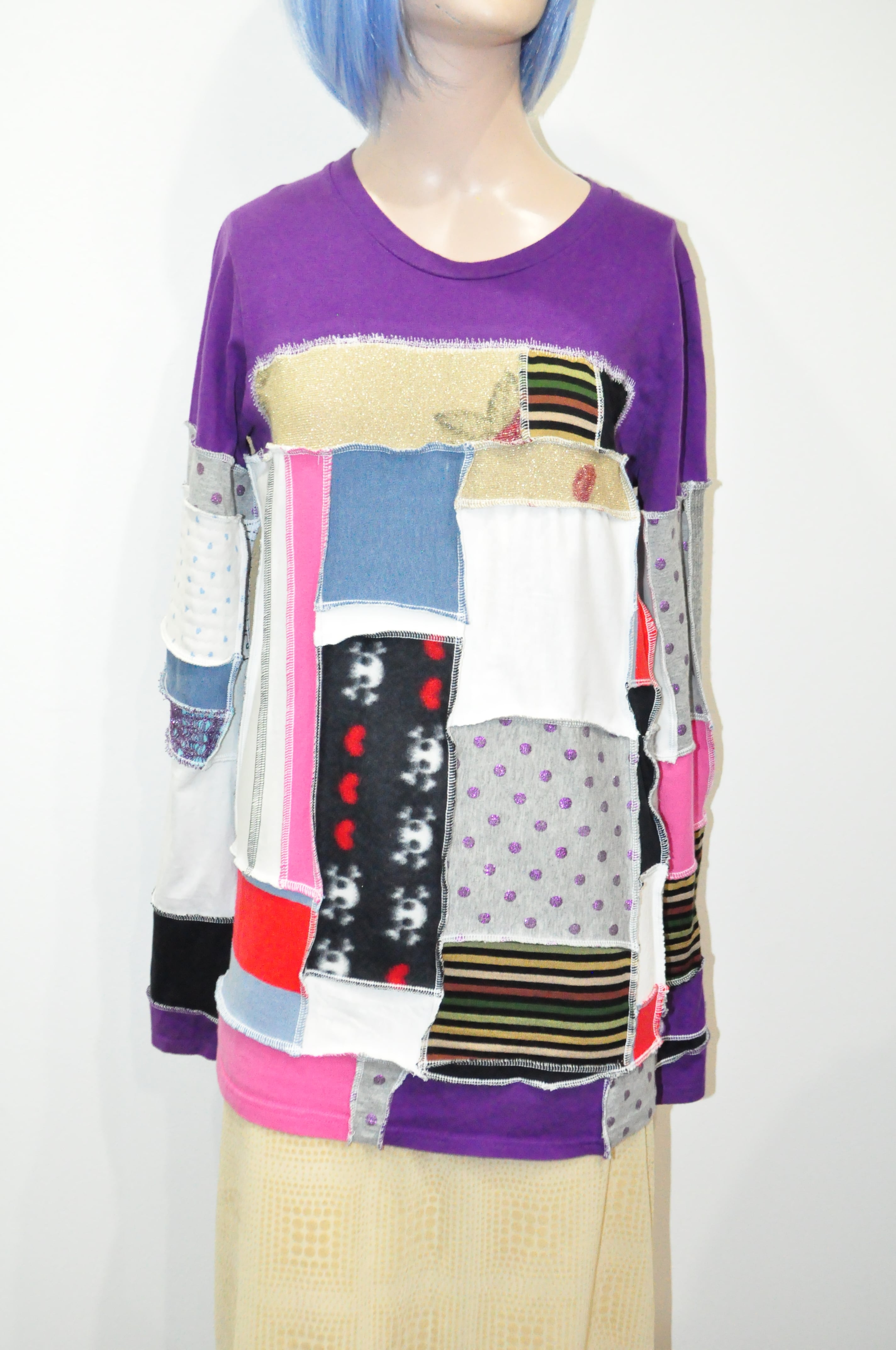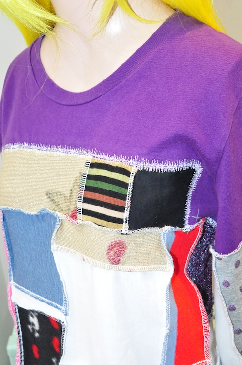 どれみ「元の紫Tシャツが、生まれ変わってパッチワークのロンTになったよ(⸝⸝˃̶͈ ૢ ૢ˂̶͈⸝⸝)
