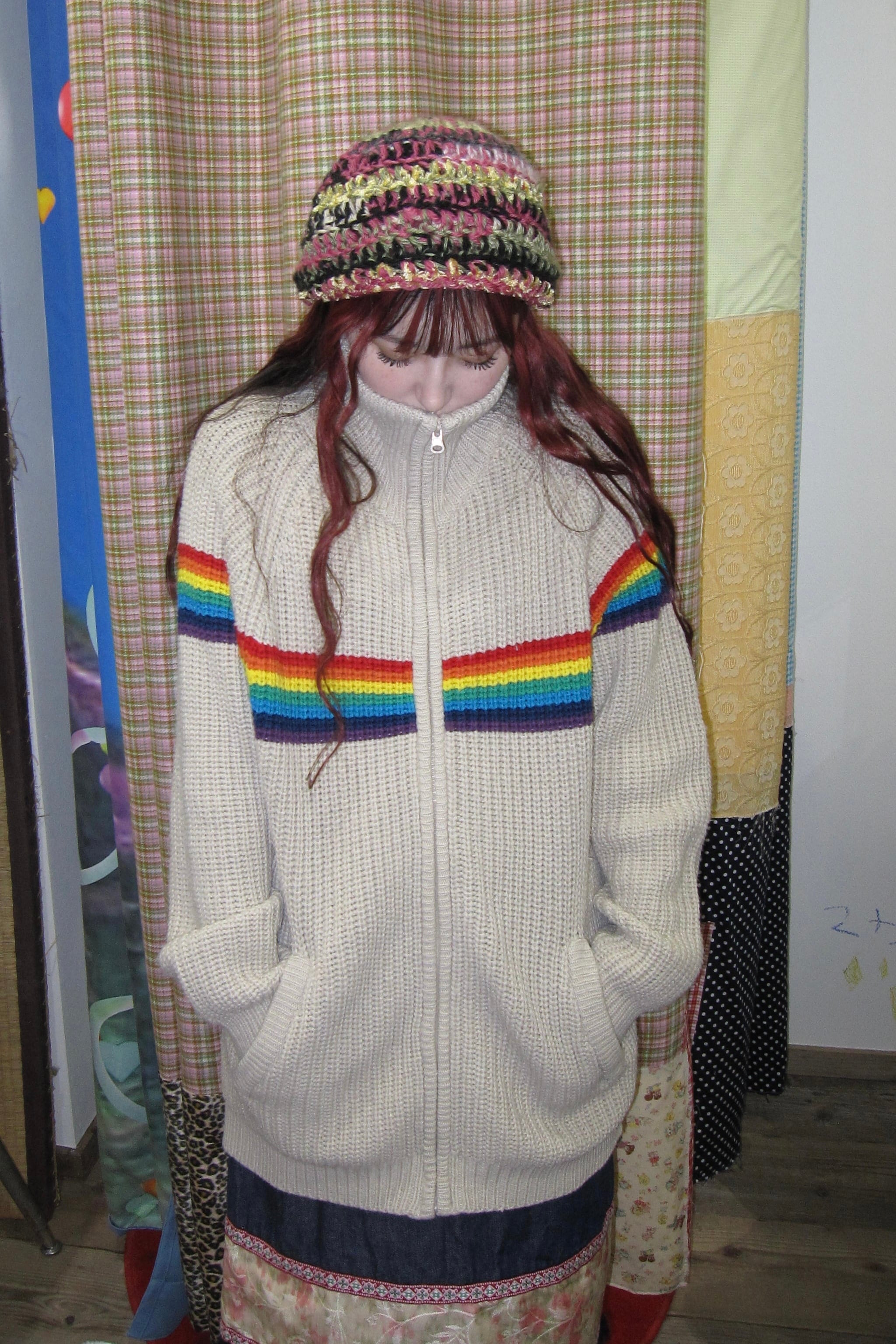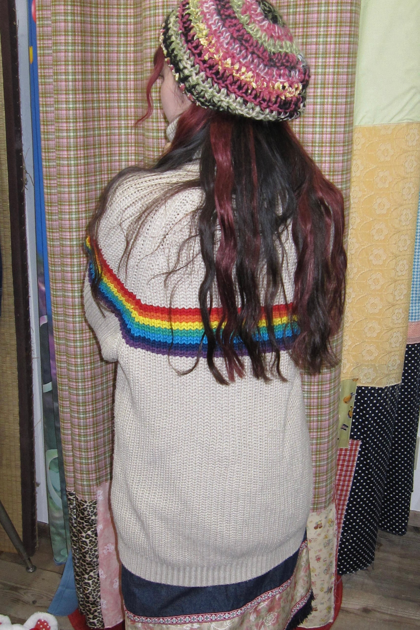 胸の虹色のデザインがほんのり夢みたいな雰囲気で、ゆるいシルエットもすごく可愛くて運命みたいな出会いの一点物ε=(◍'艸`◍)★