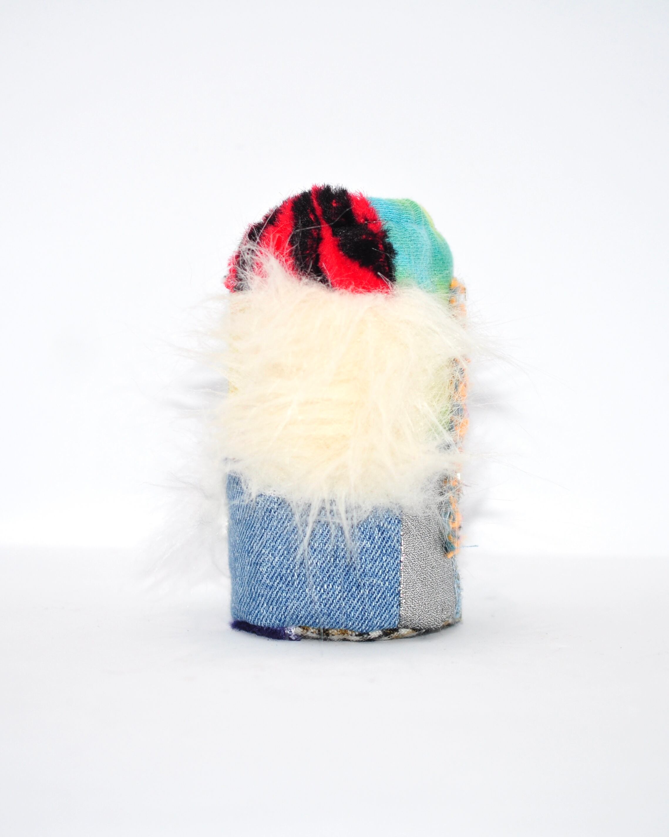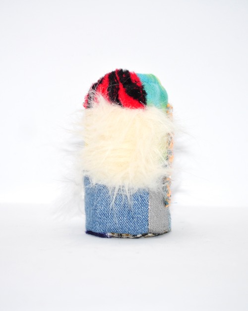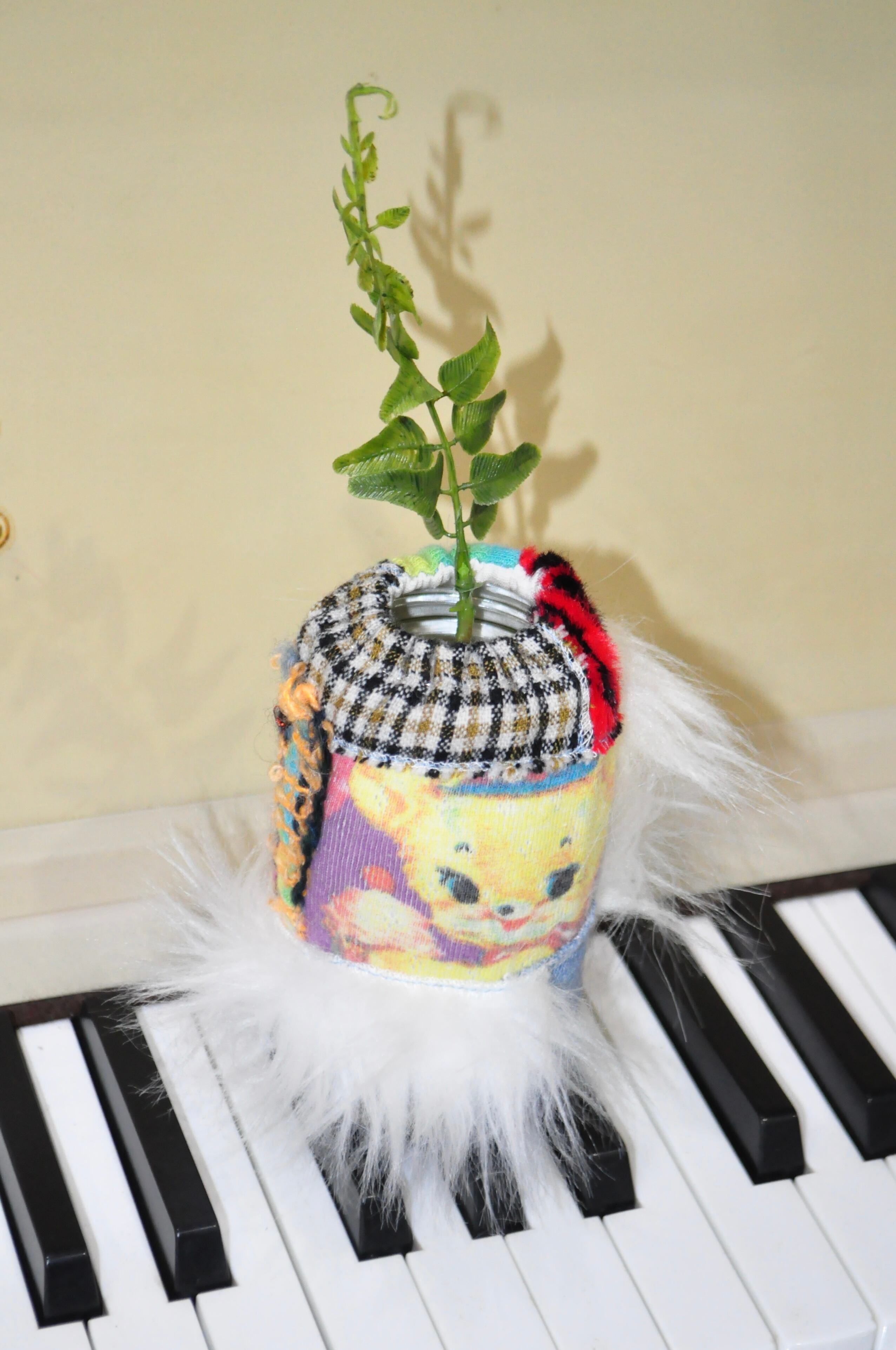どれみ「使わなくなった空き瓶に古着の生地を合わせて、世界でひとつのフラワーベースができたよ(。・w・。 )