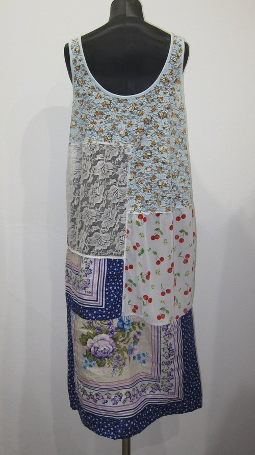 「つなぎ合わせた生地がふんわり溶け合って、自然にロングワンピの形になったよ。静かでかわいい存在感のある子だと思うんだ。」