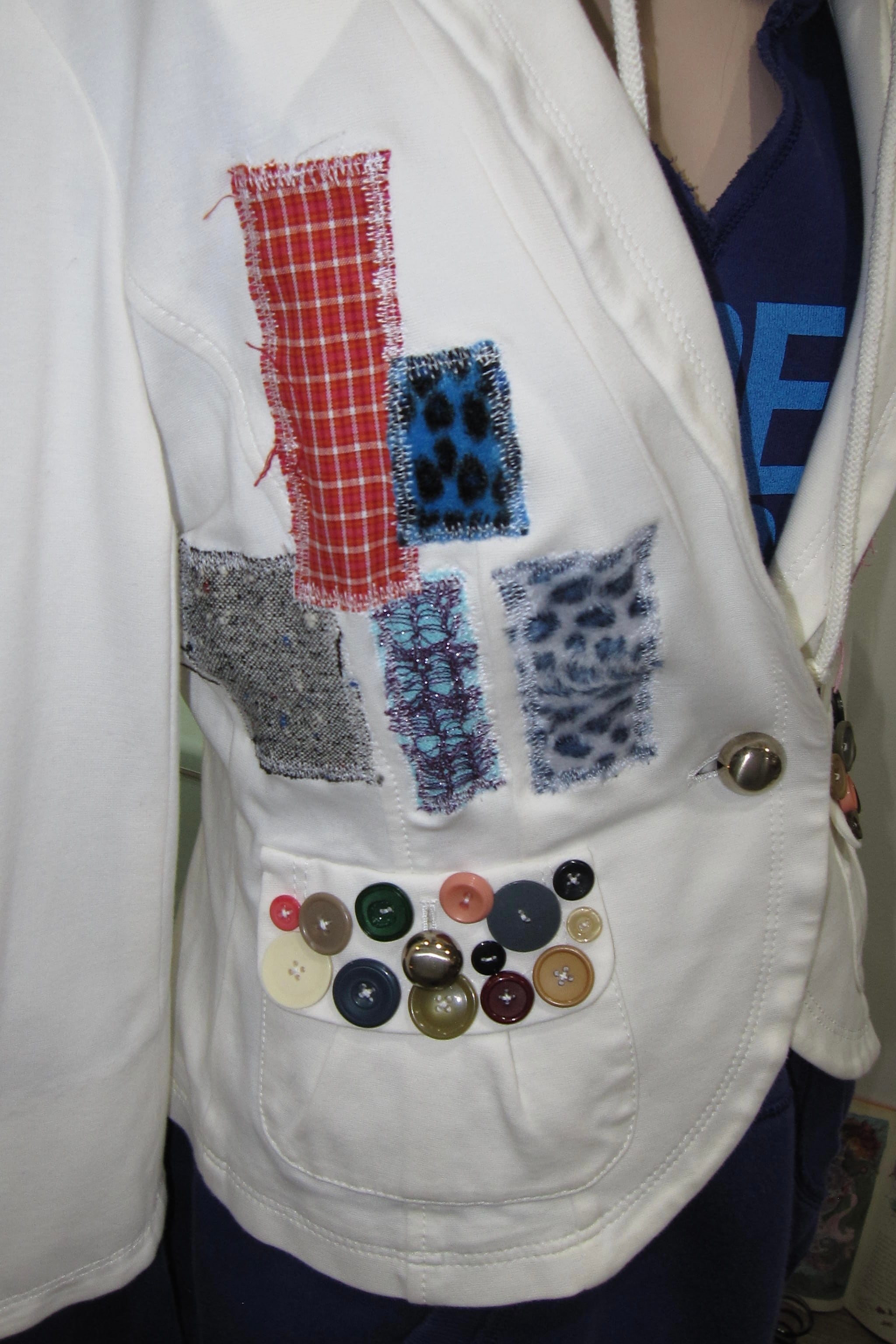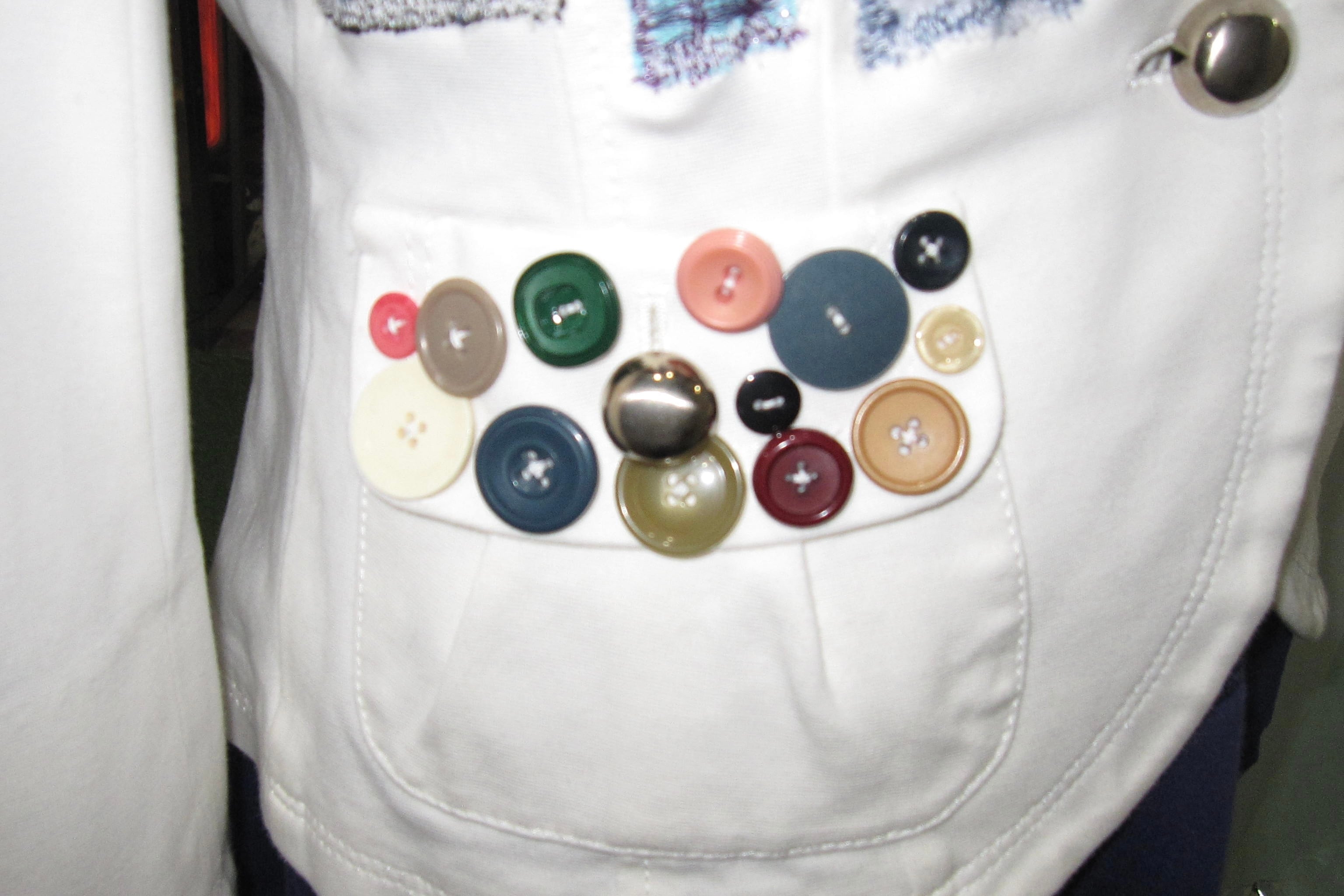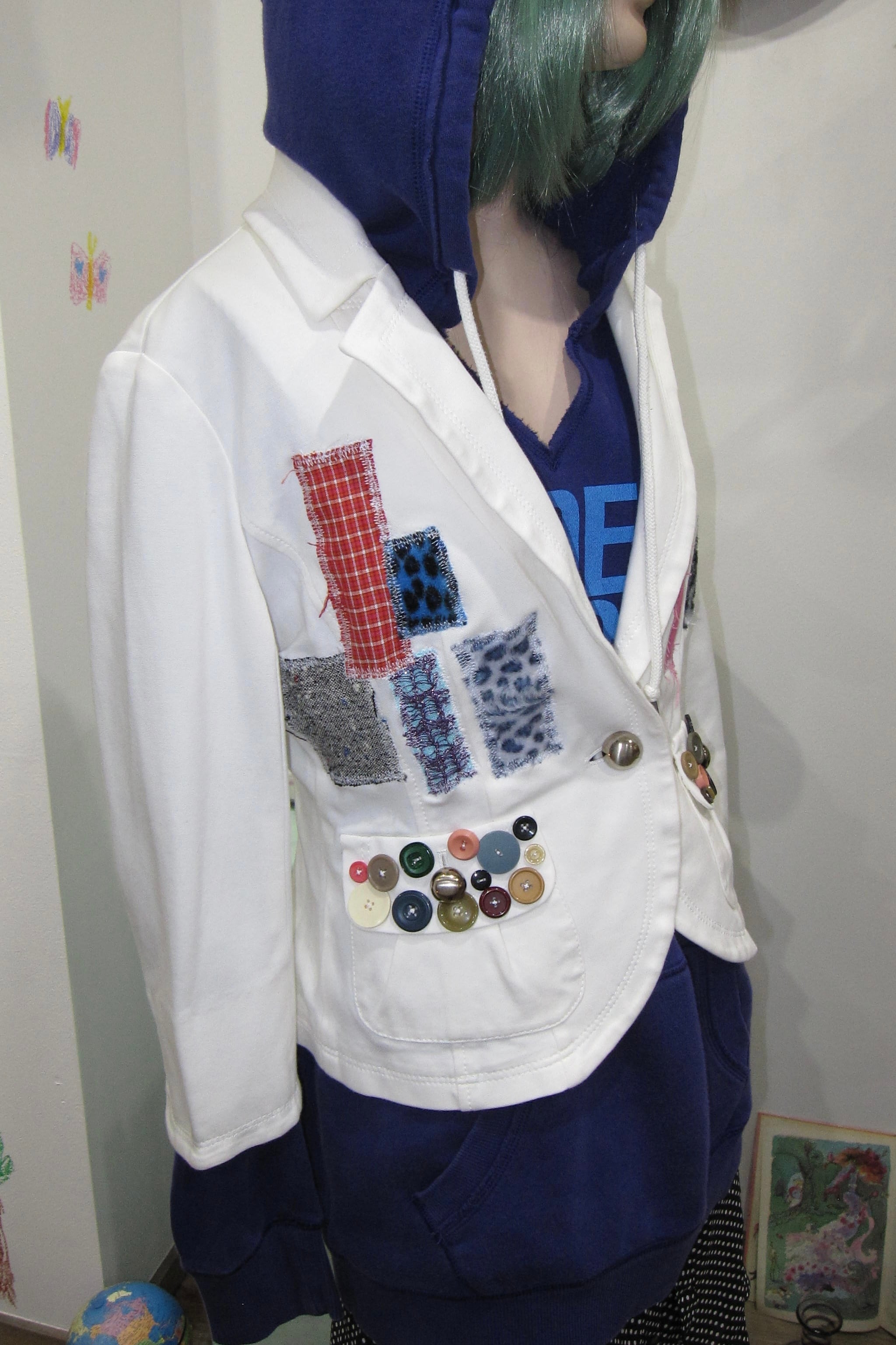 どれみ「前はね、好きな小さな布をぽんぽん貼っていったら、ボタンたちが仲良く混ざっちゃったの꒰՞⸝⸝⊃ ·̫ <՞꒱