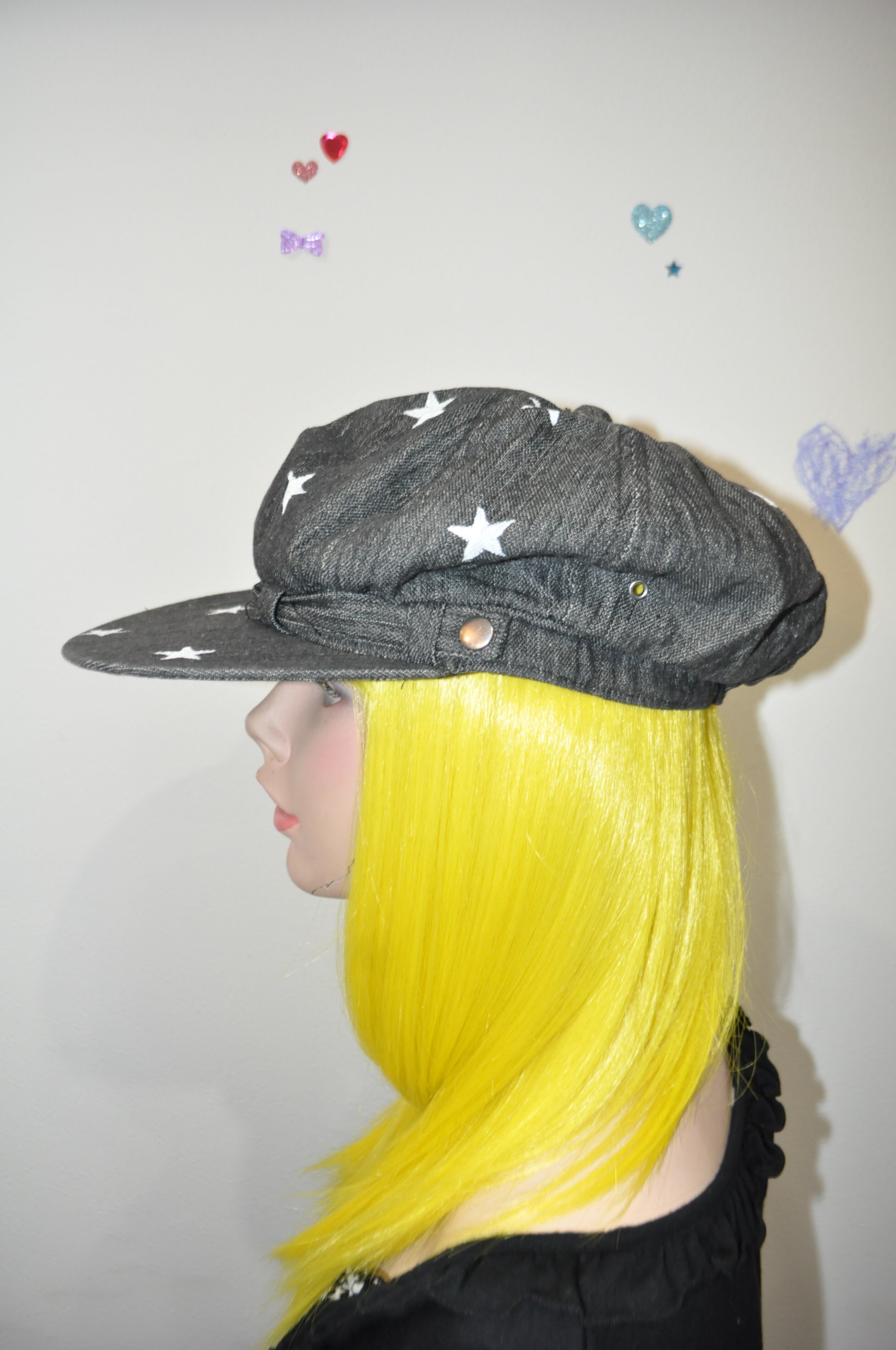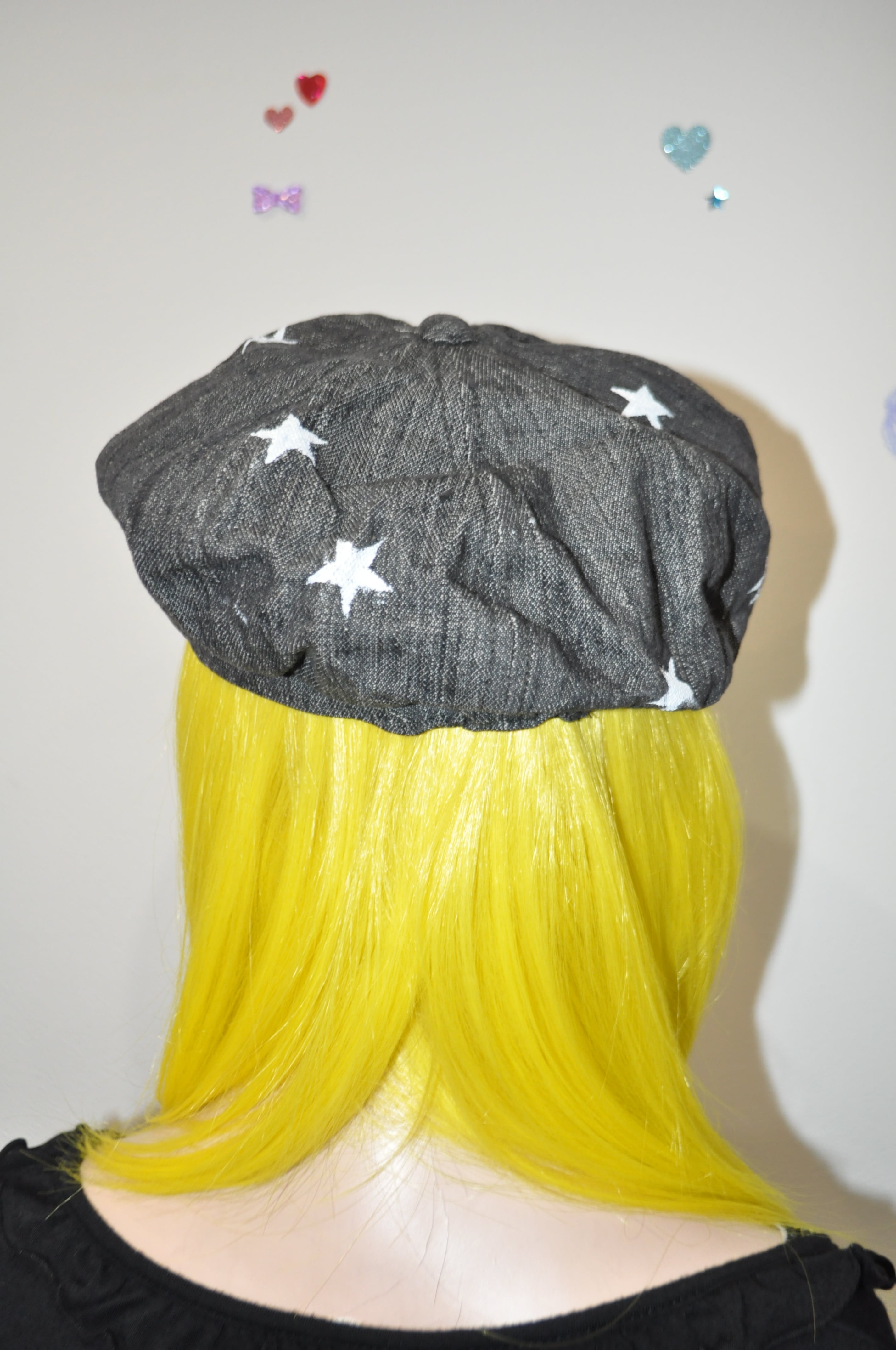どれみ「黒いデニムに、白い星を散りばめたキャスケット。