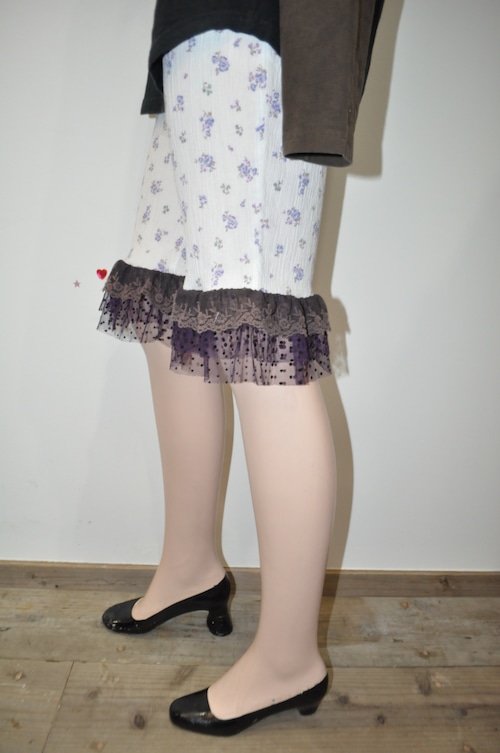 白と花柄のやさしさに、裾のレースがそっと影を落としてくれて。