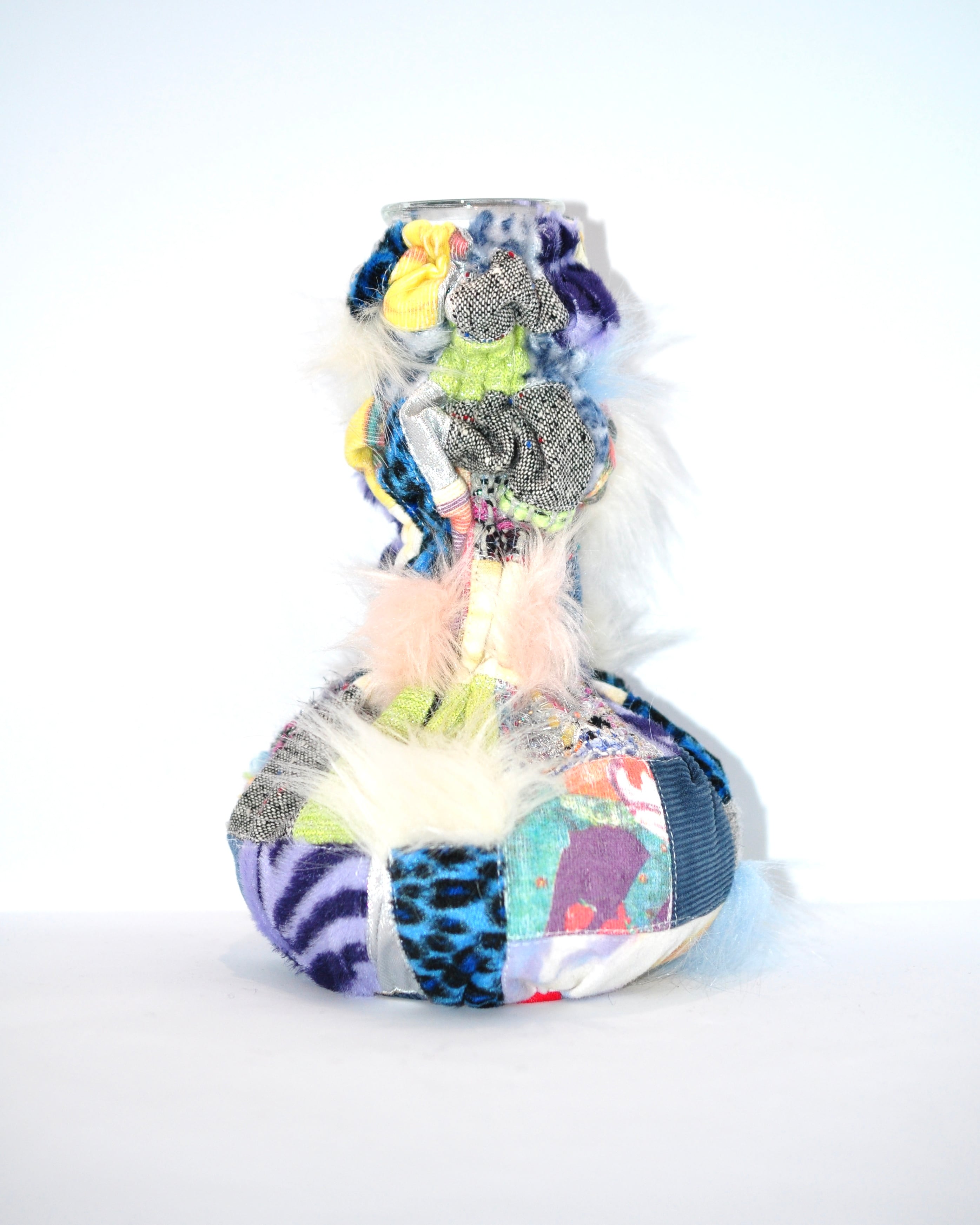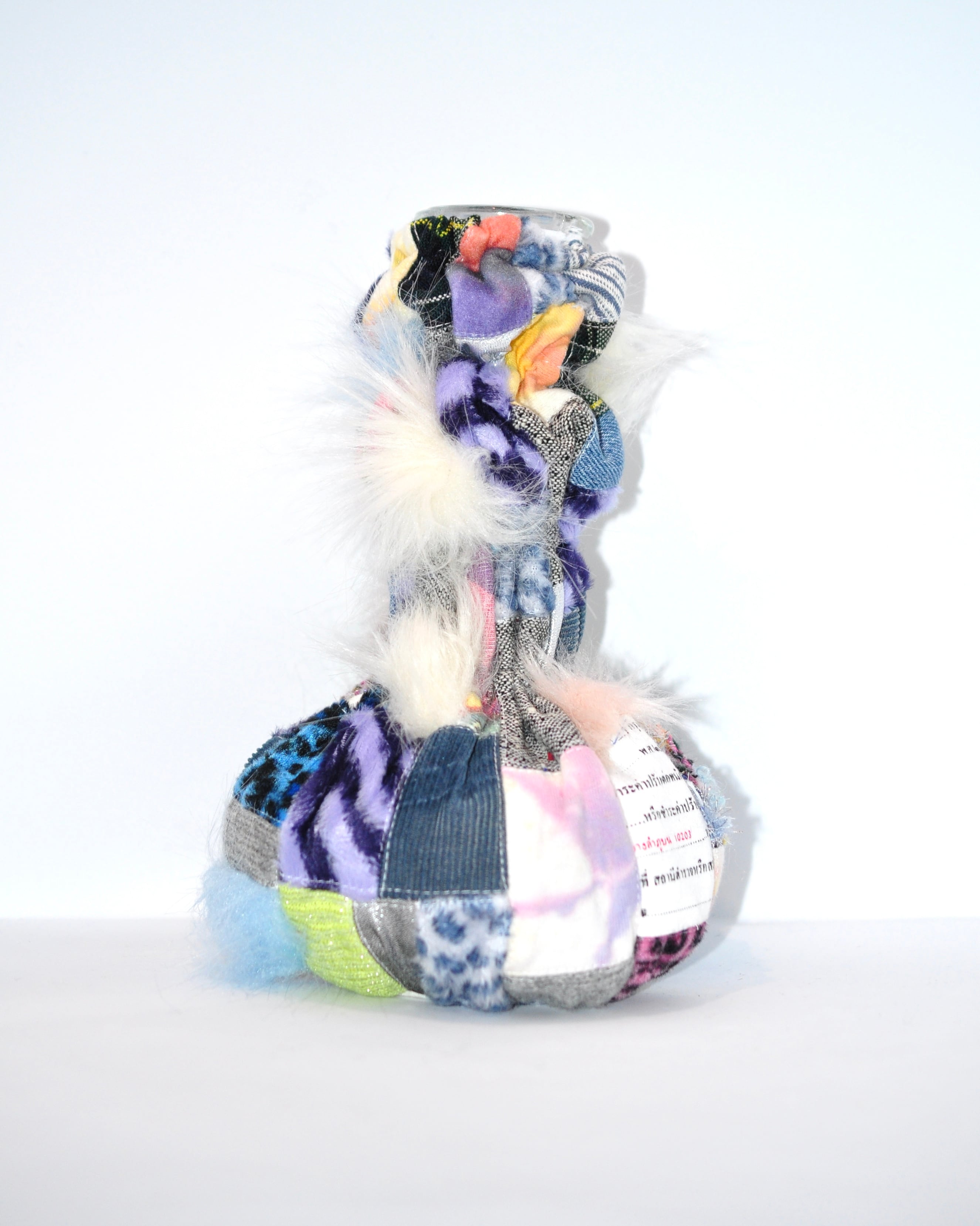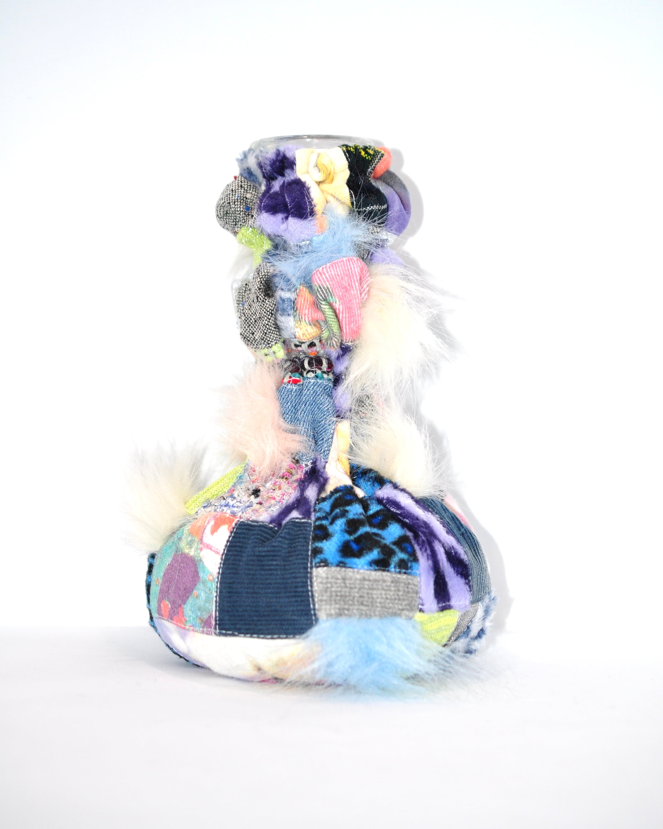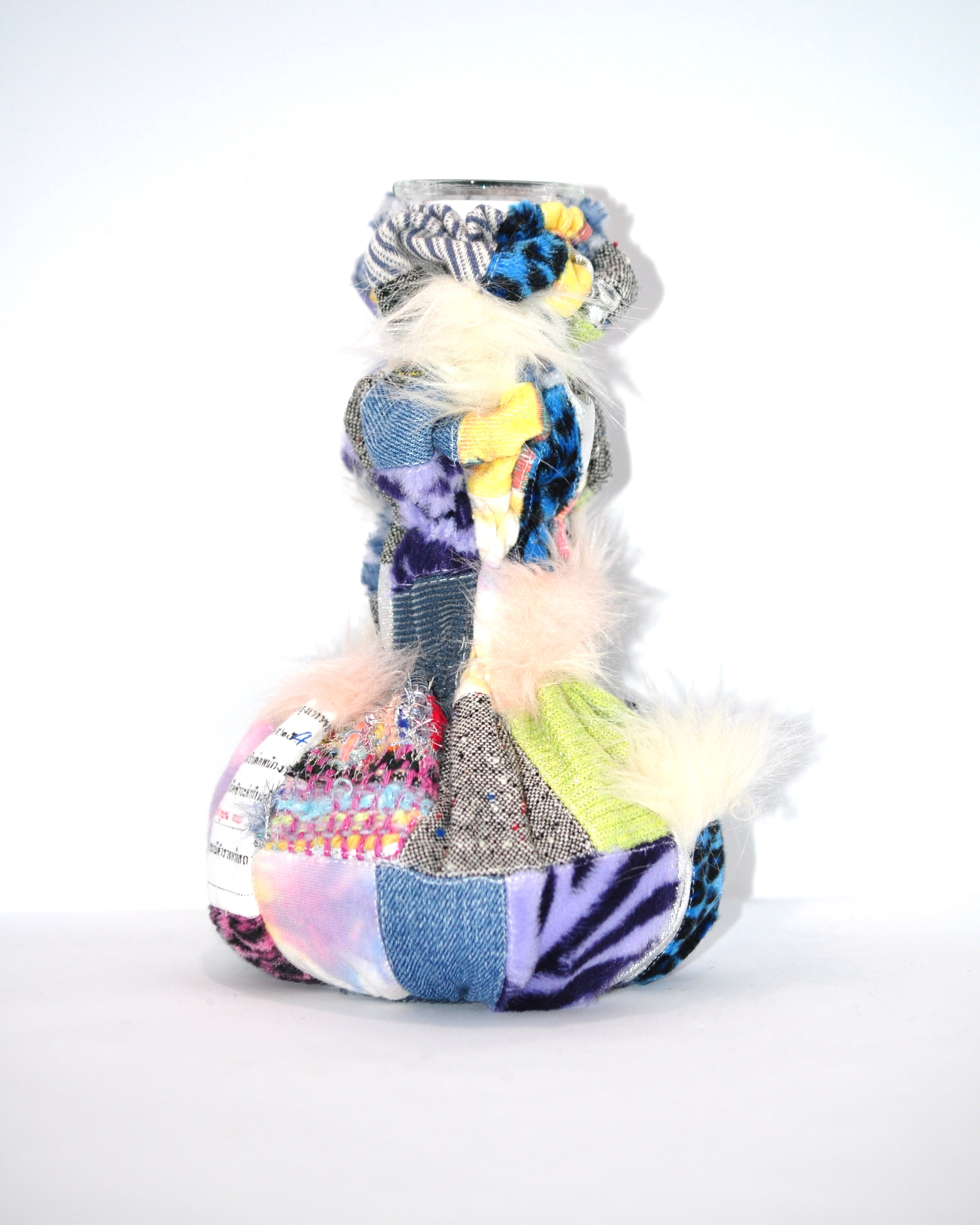 どれみ「使わなくなった空き瓶に古着の生地を合わせて、世界でひとつのフラワーベースができたよ(。・w・。 )