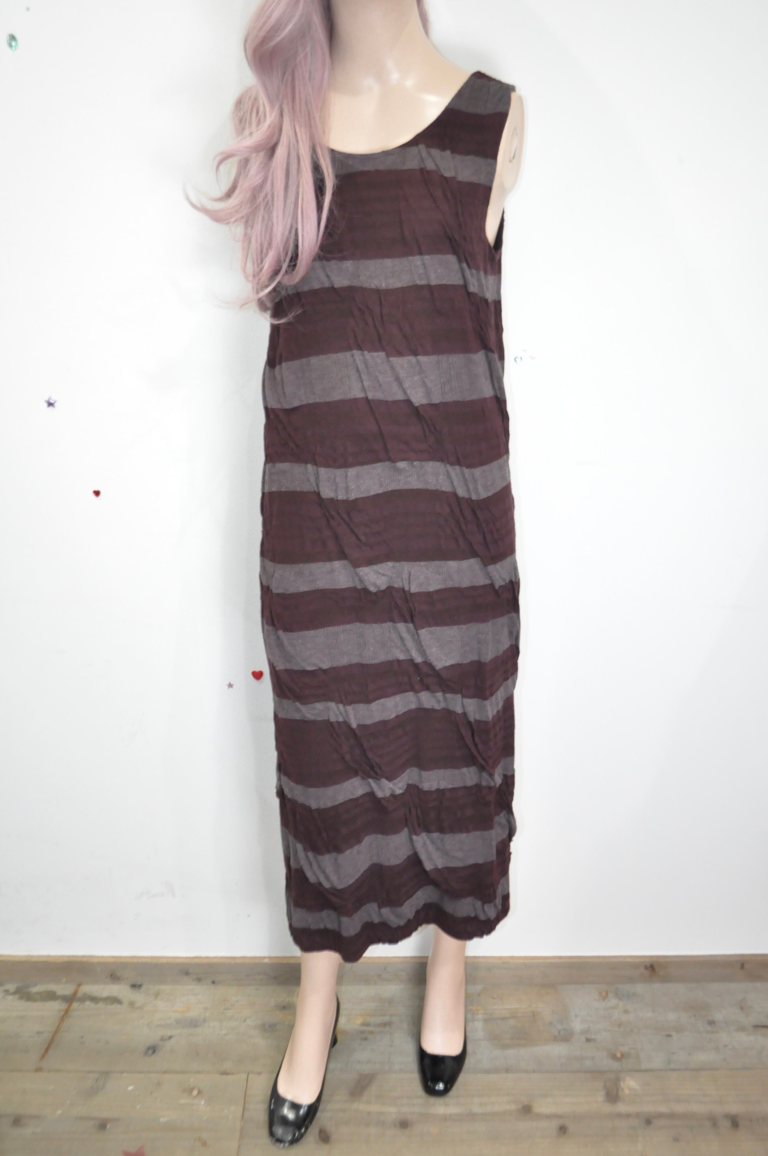 どれみ「小豆色のボーダーが、やさしく揺れるタンクトップワンピ。