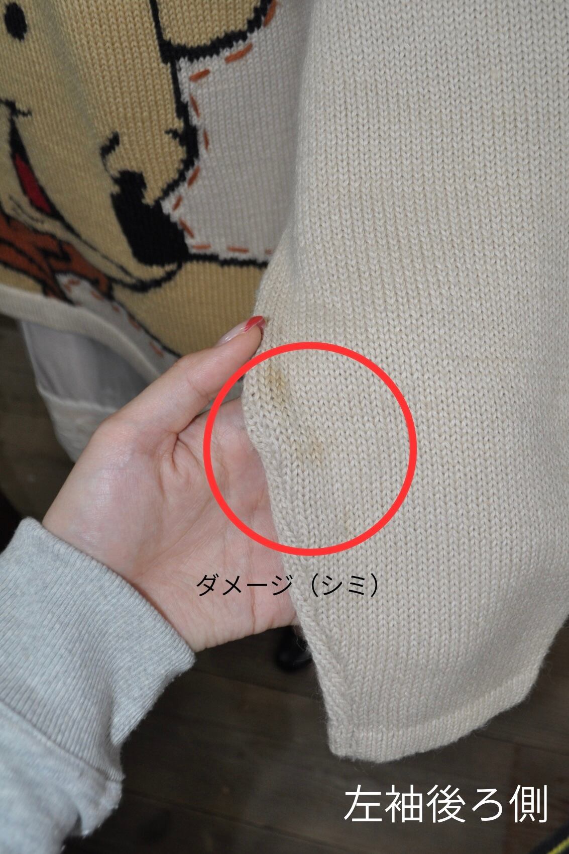 前身頃、両袖にシミ