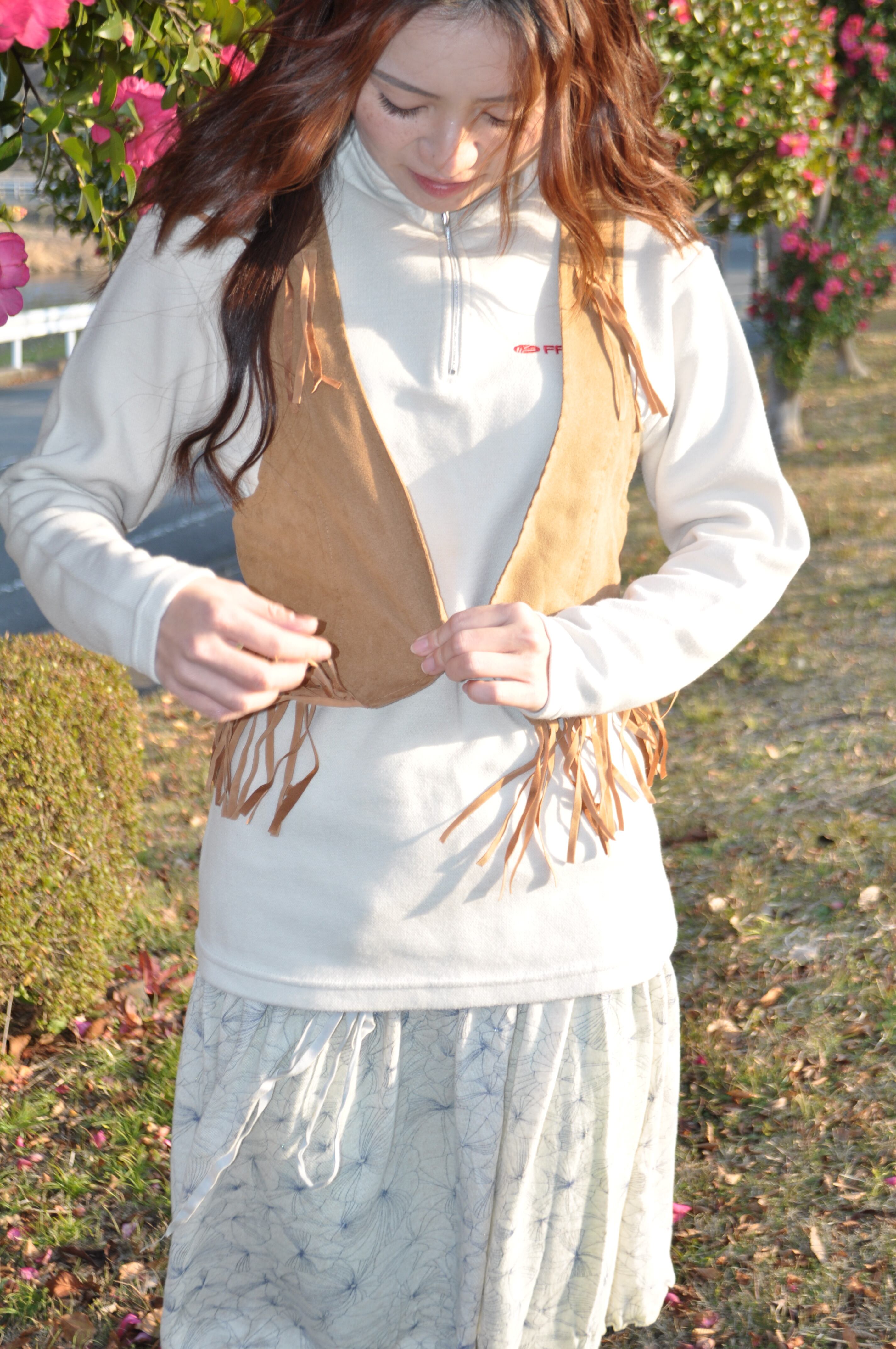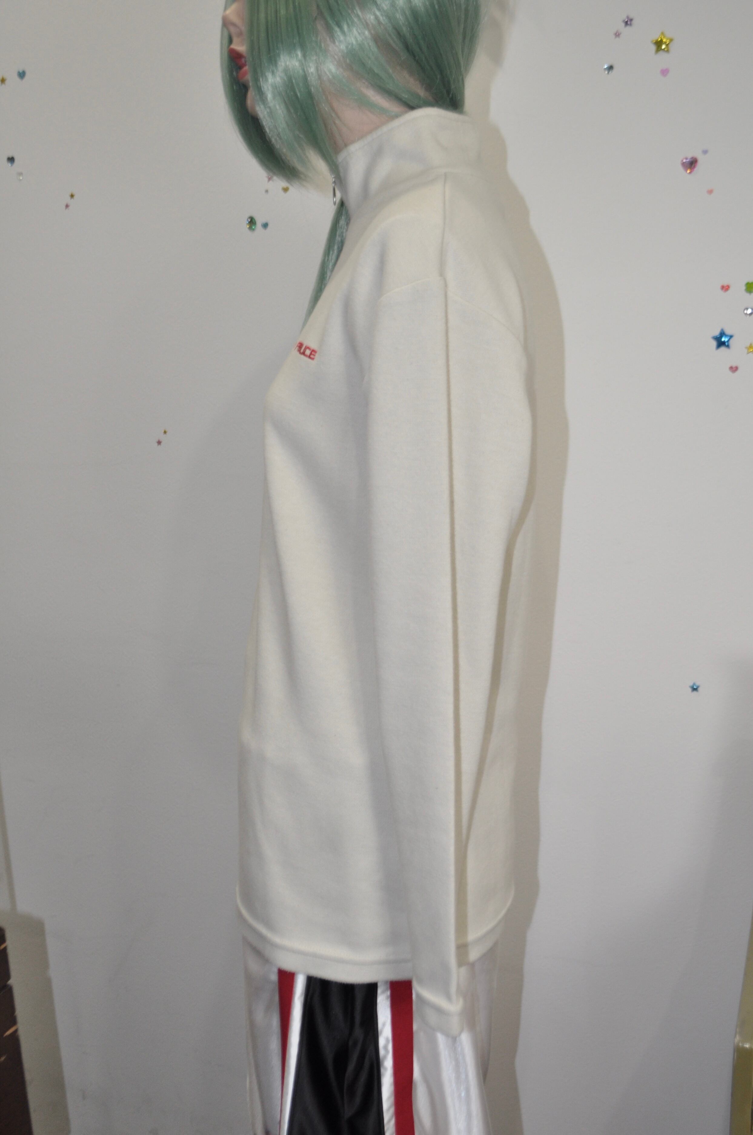 どれみ「長袖のハイネックに、胸元の赤いロゴ。