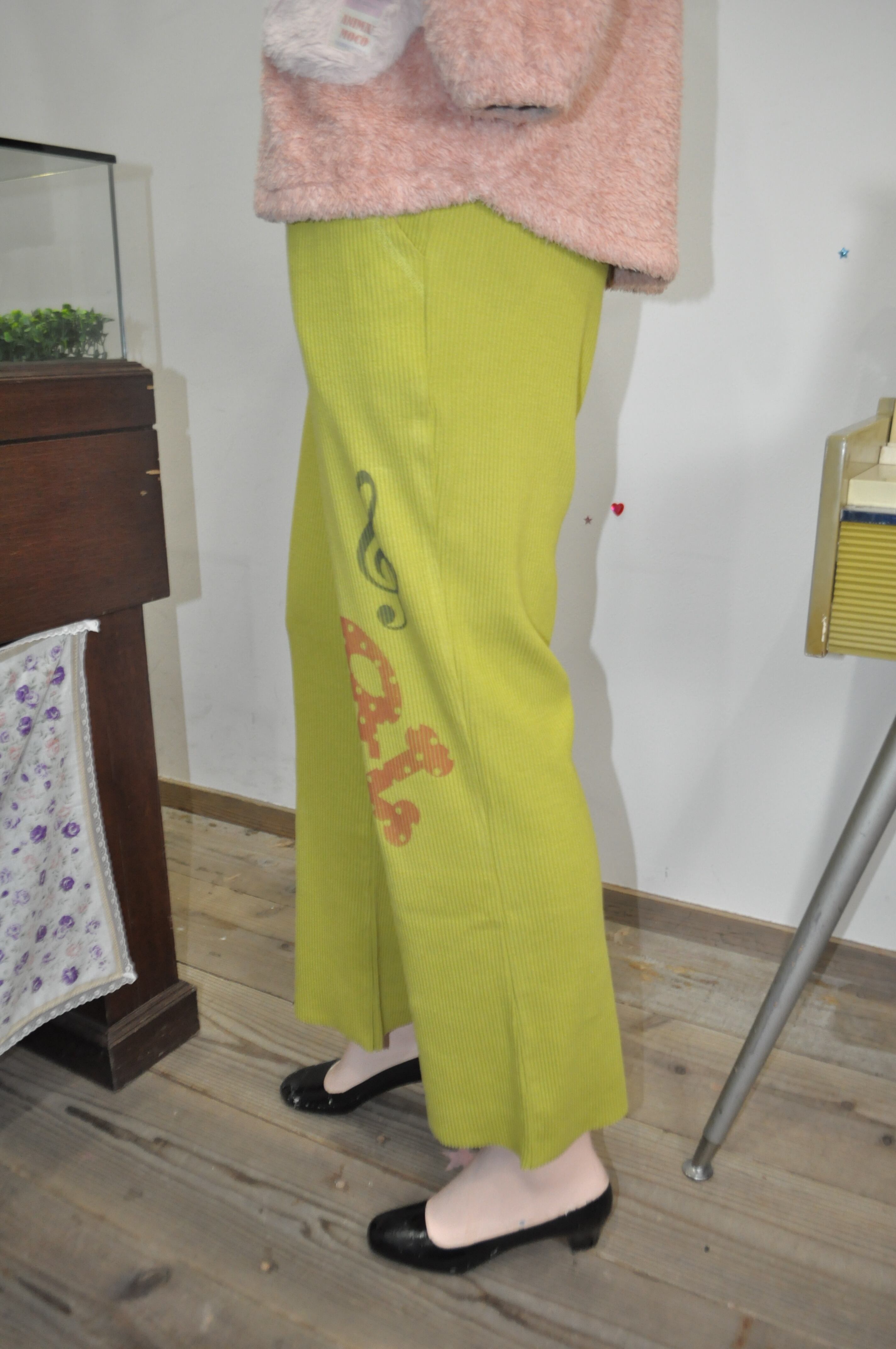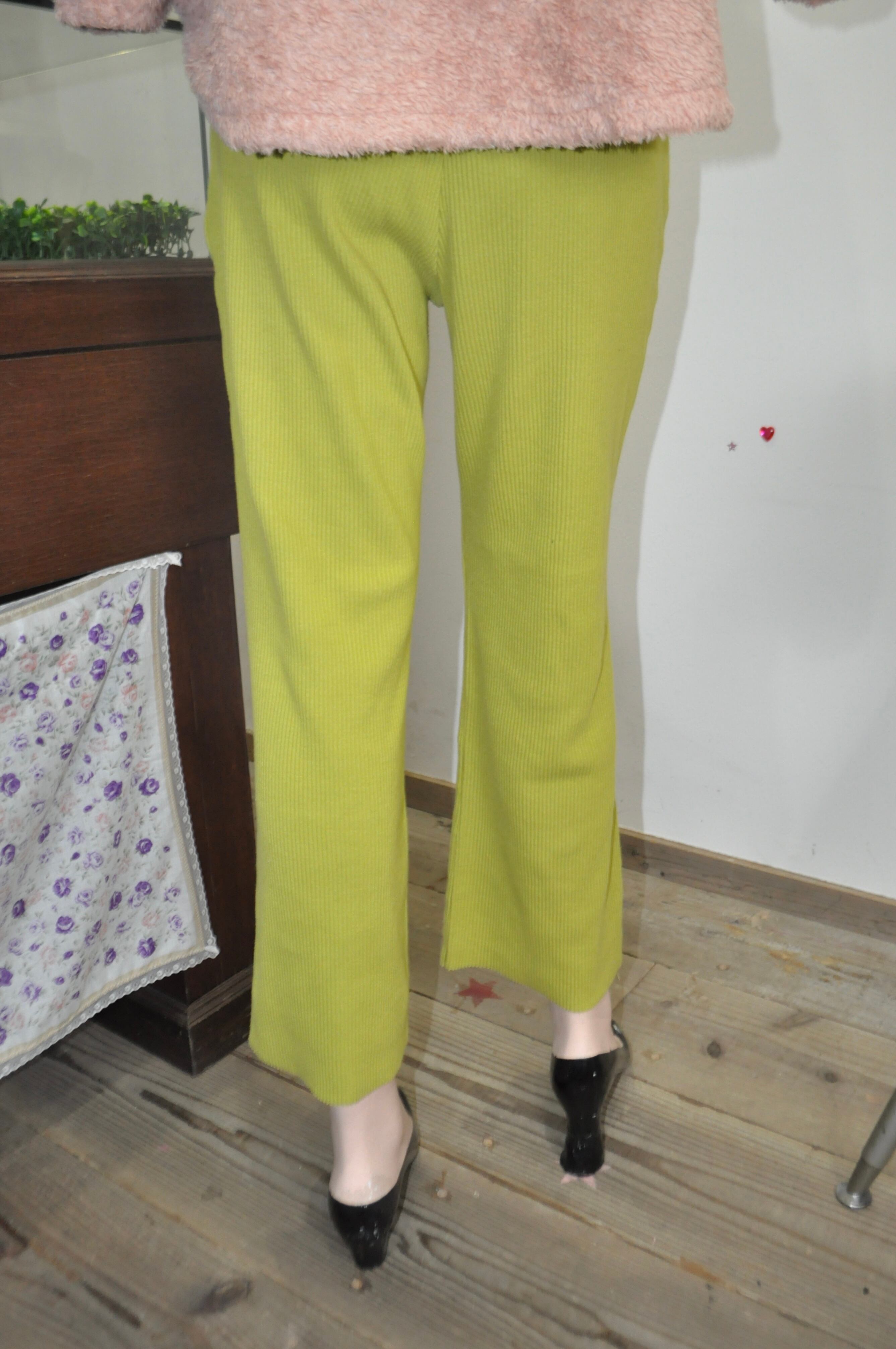 どれみ「抹茶みたいなやさしいグリーンのニットパンツ。