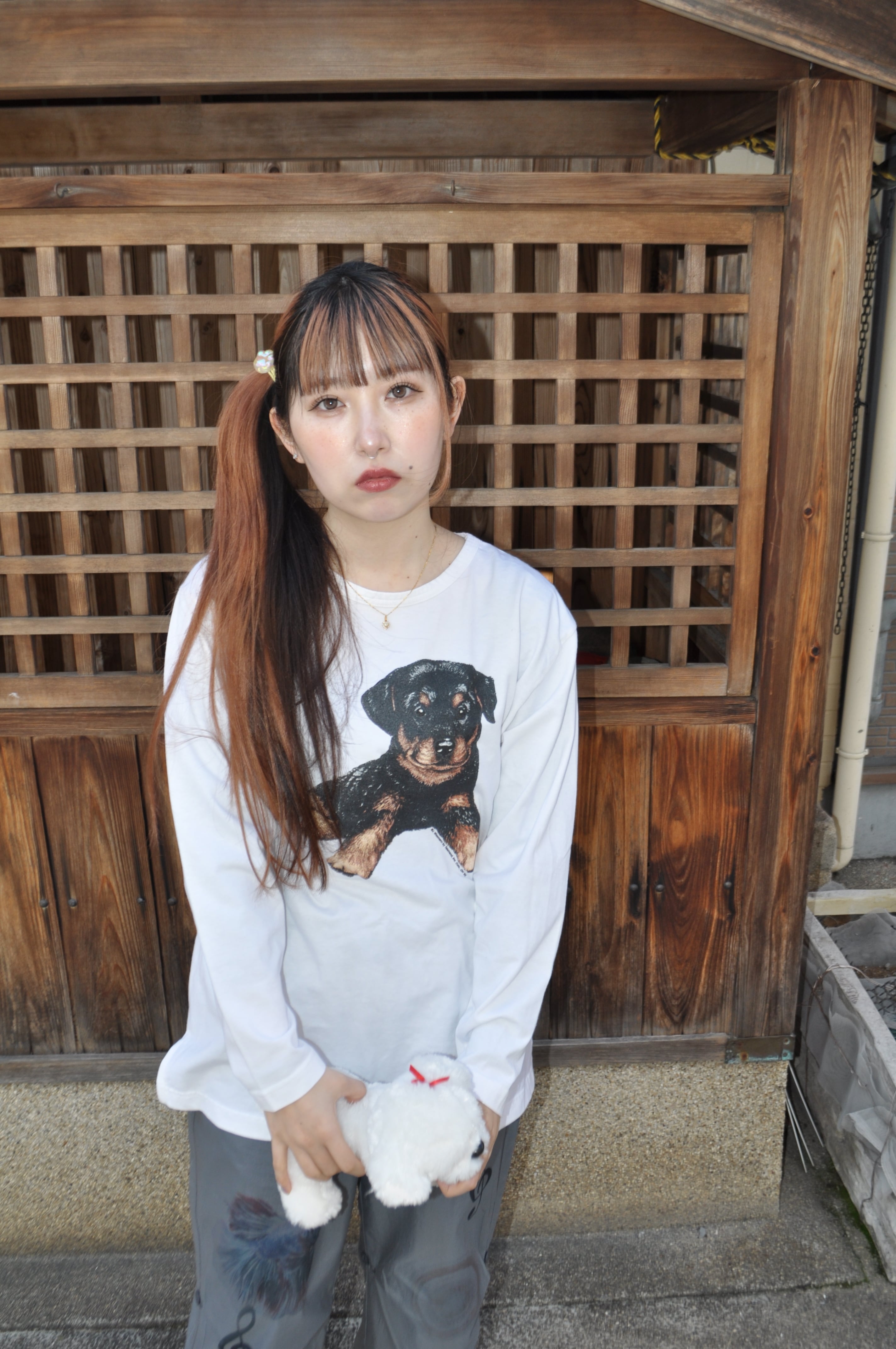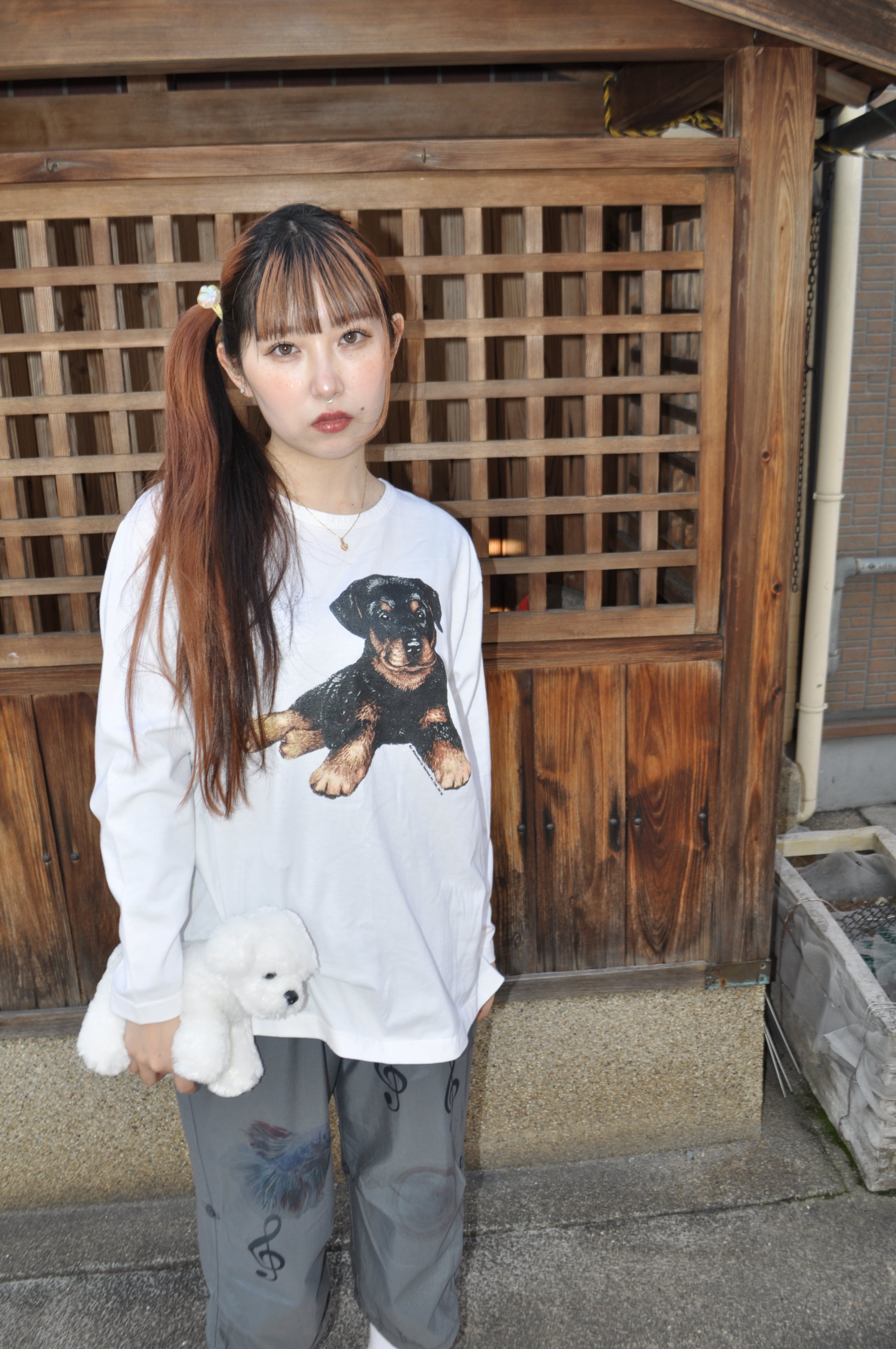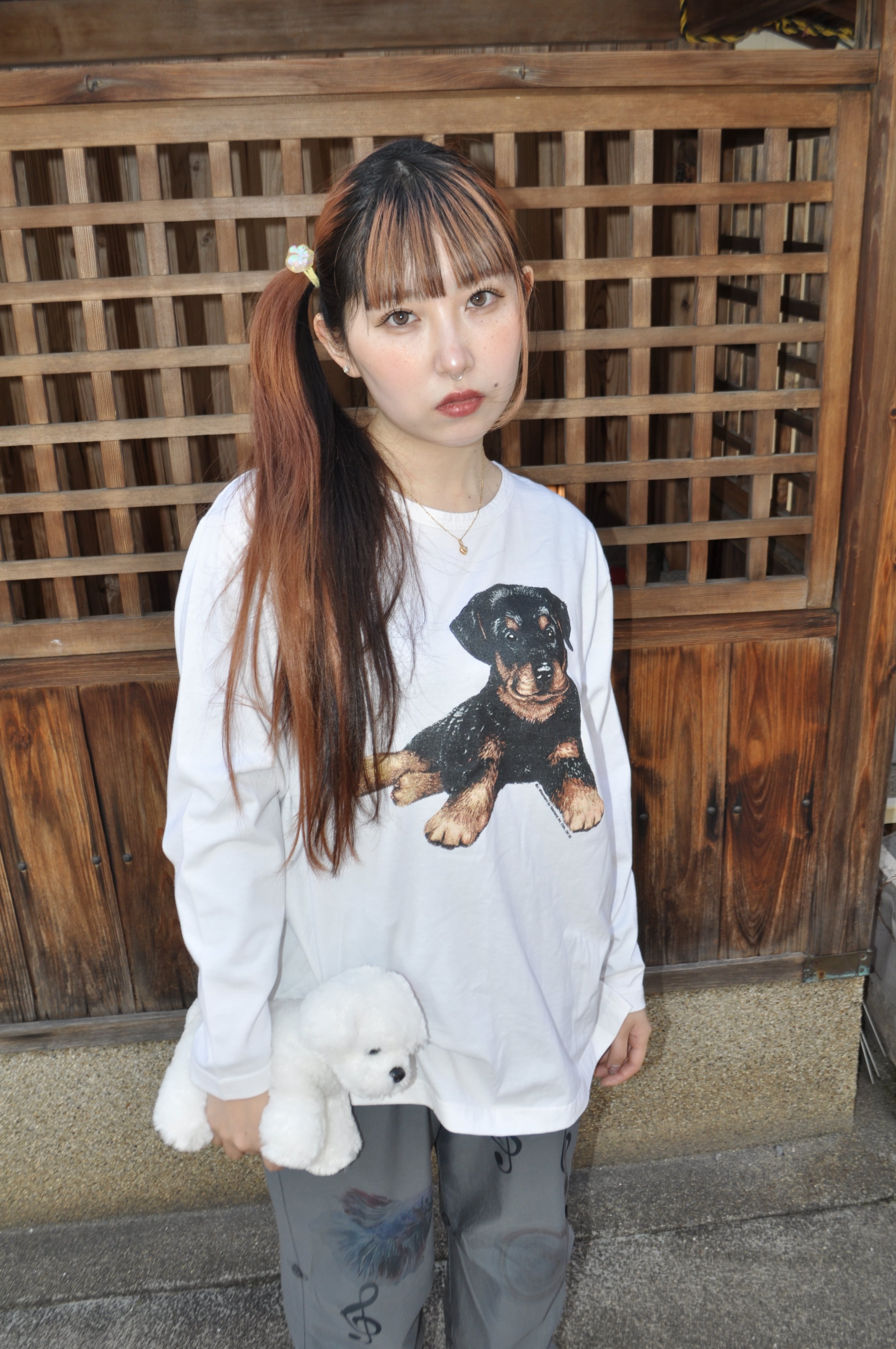 どれみ「白いロングTに、イヌがちょこん。