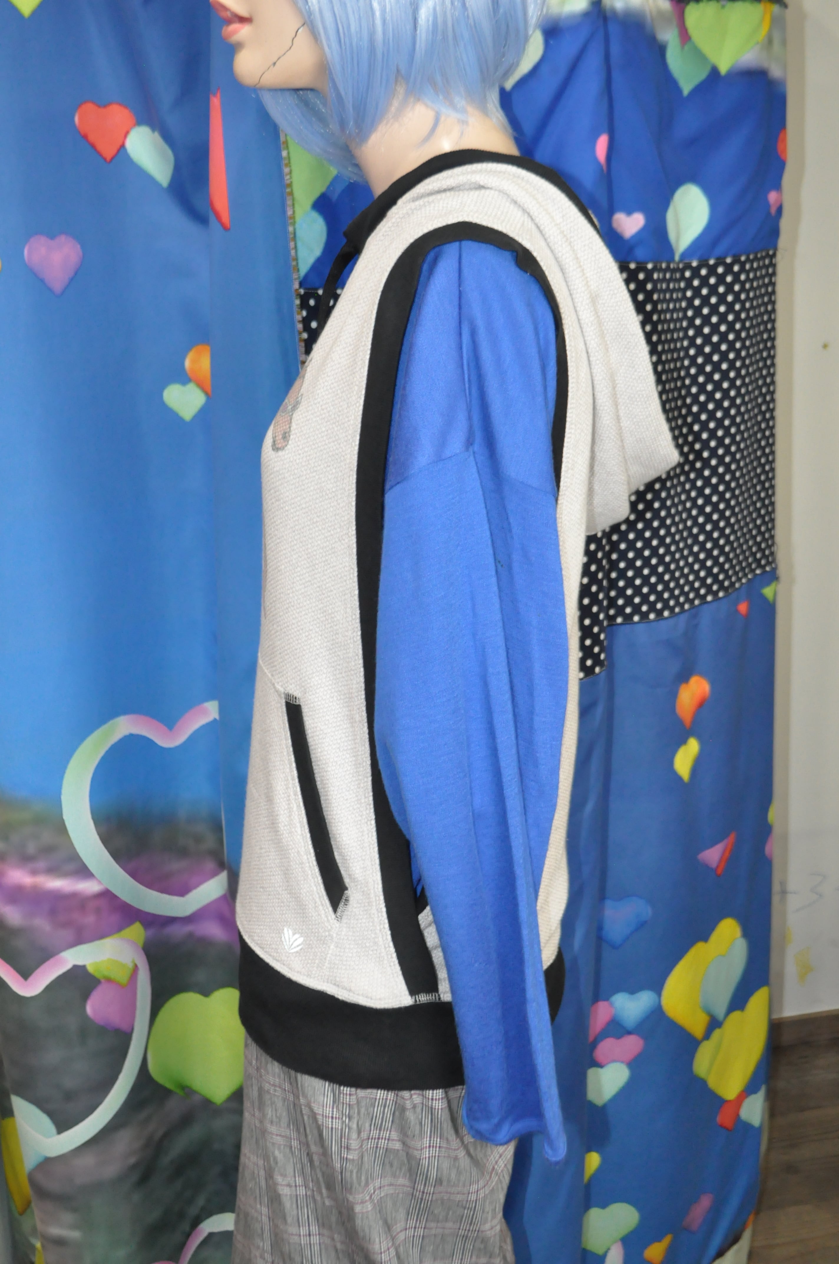 どれみ「グレーのフードつきベストなの。