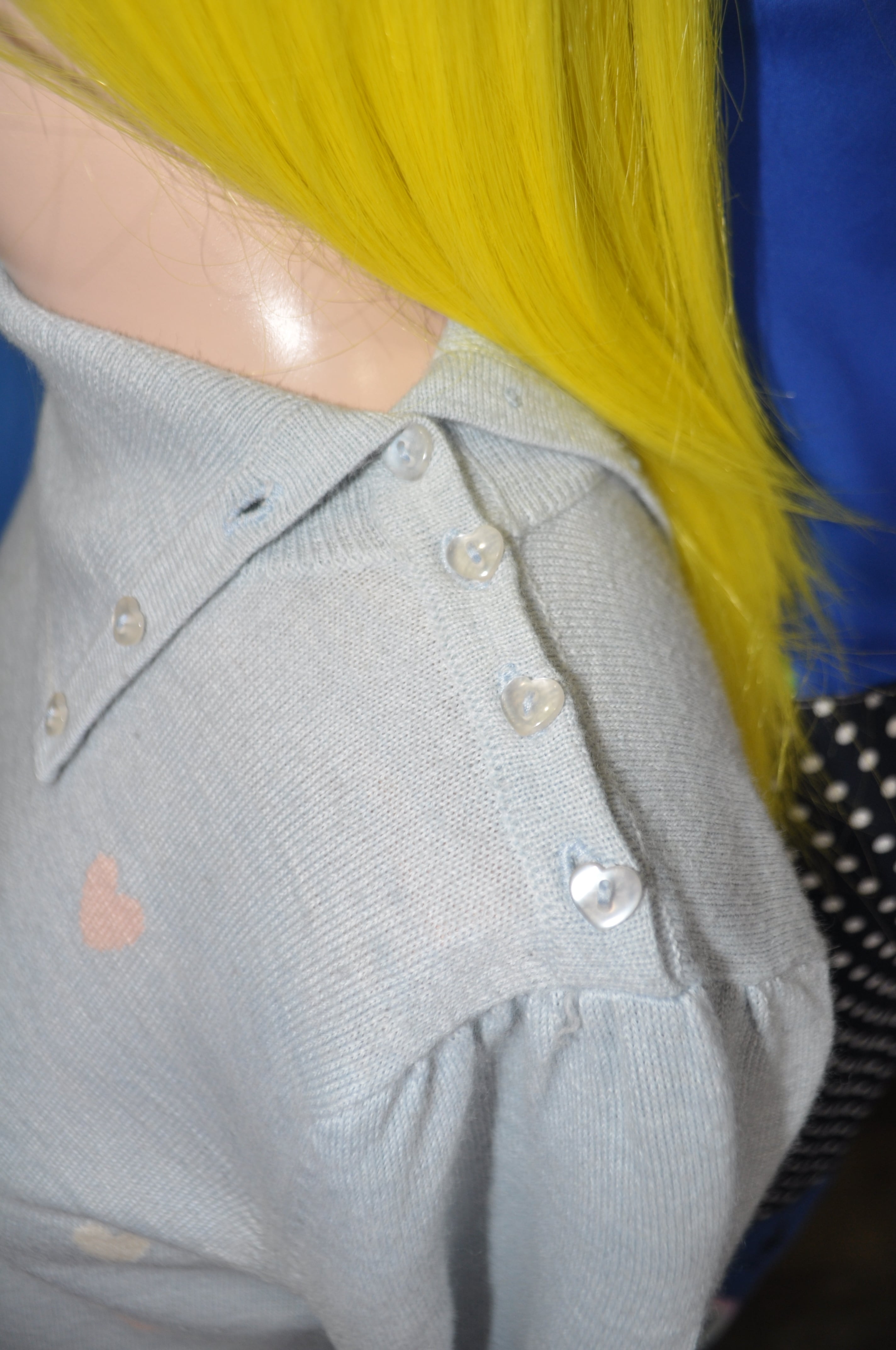 肩にはハートのボタン。