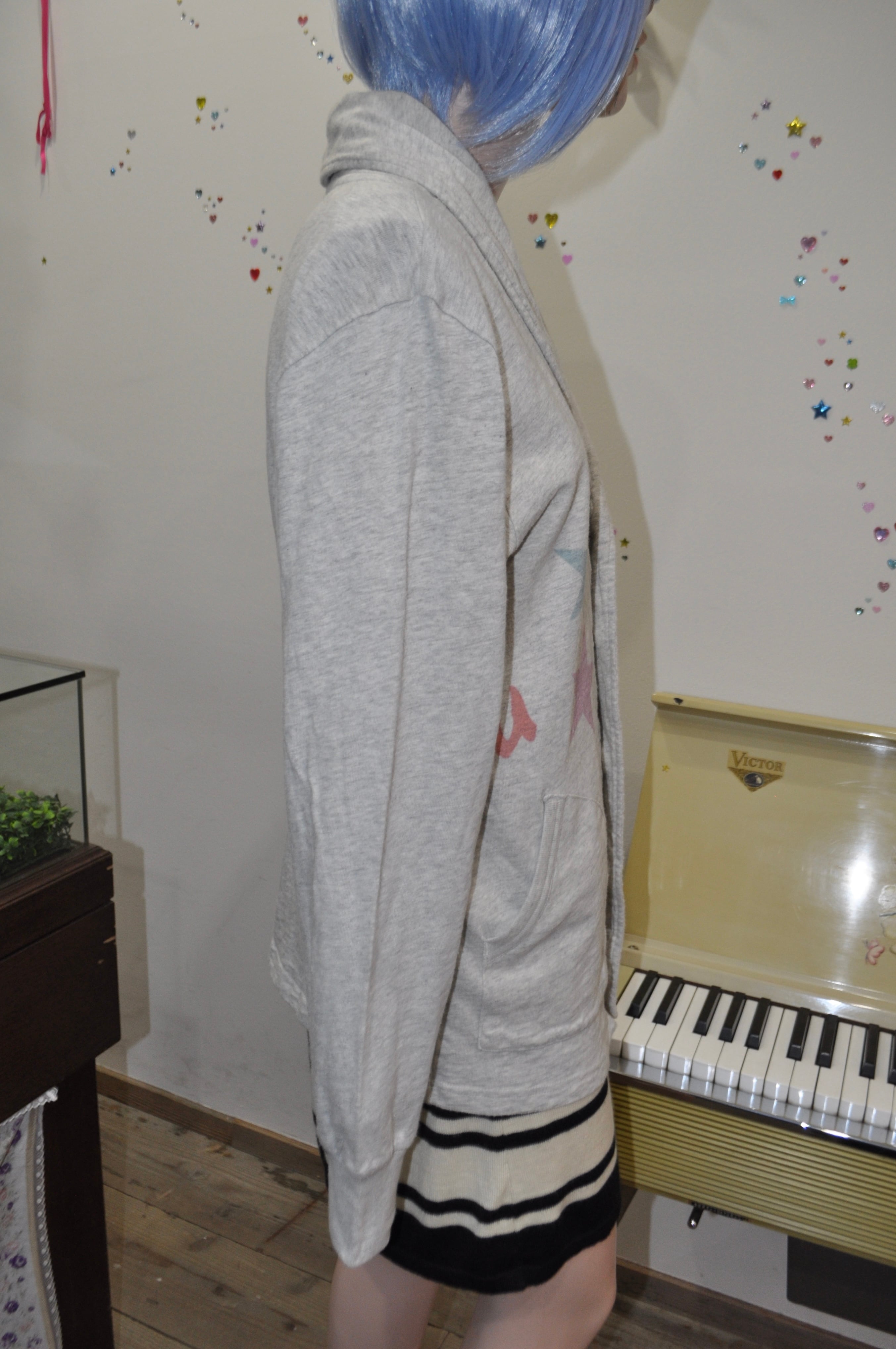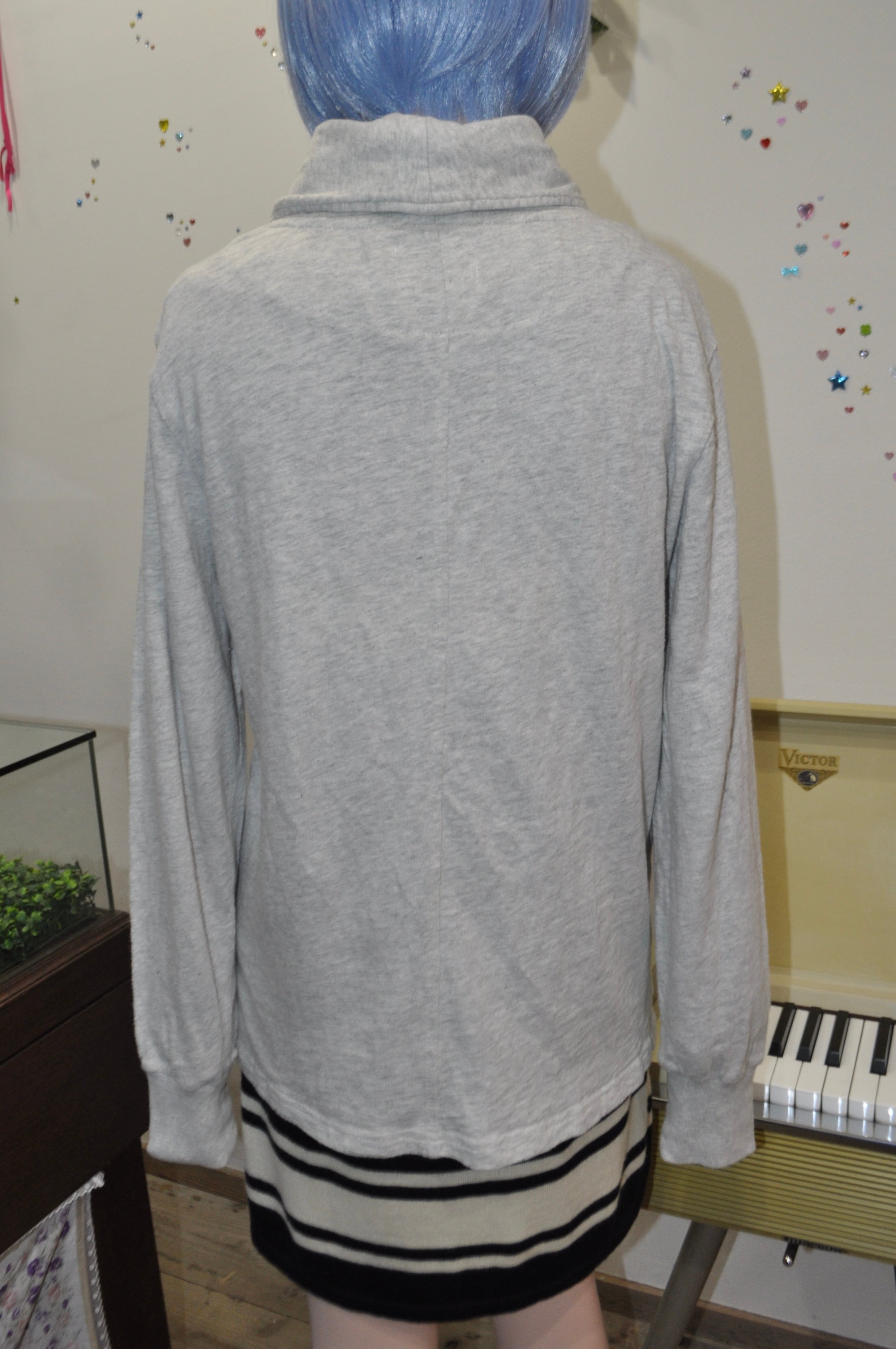 どれみ「グレーの長袖トップスなの。