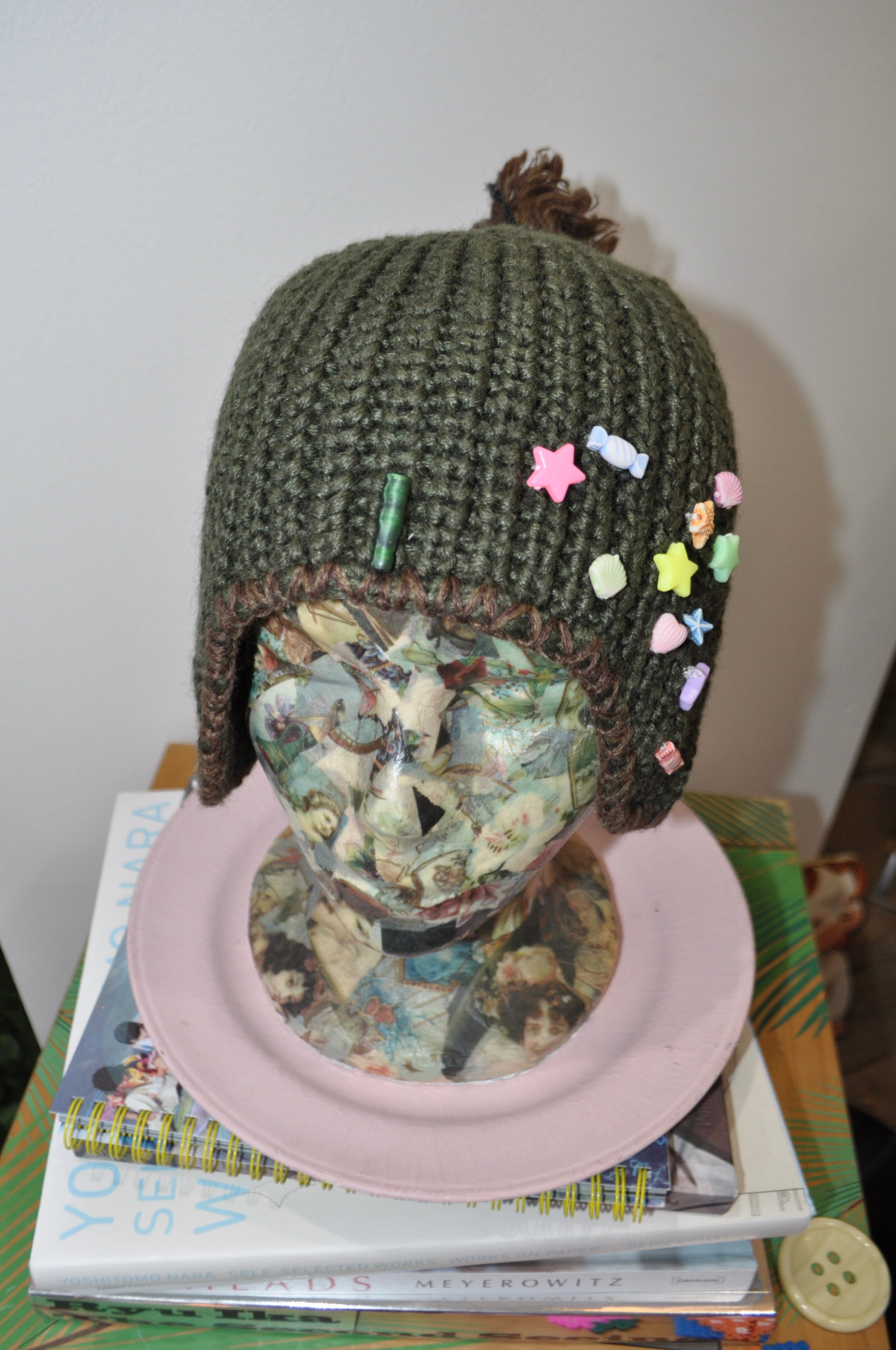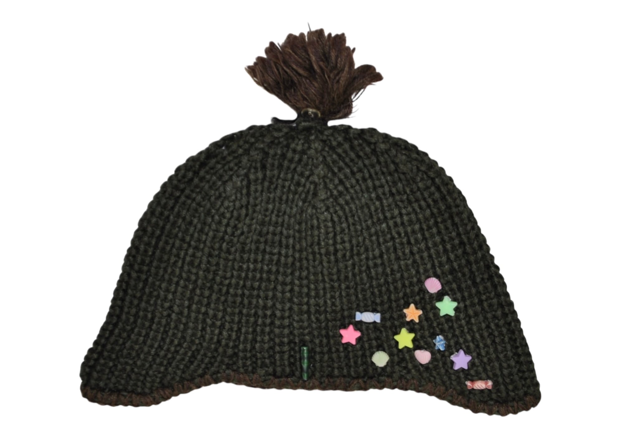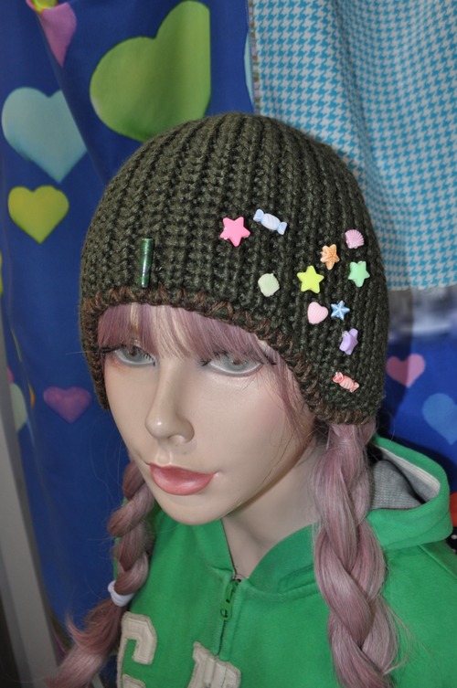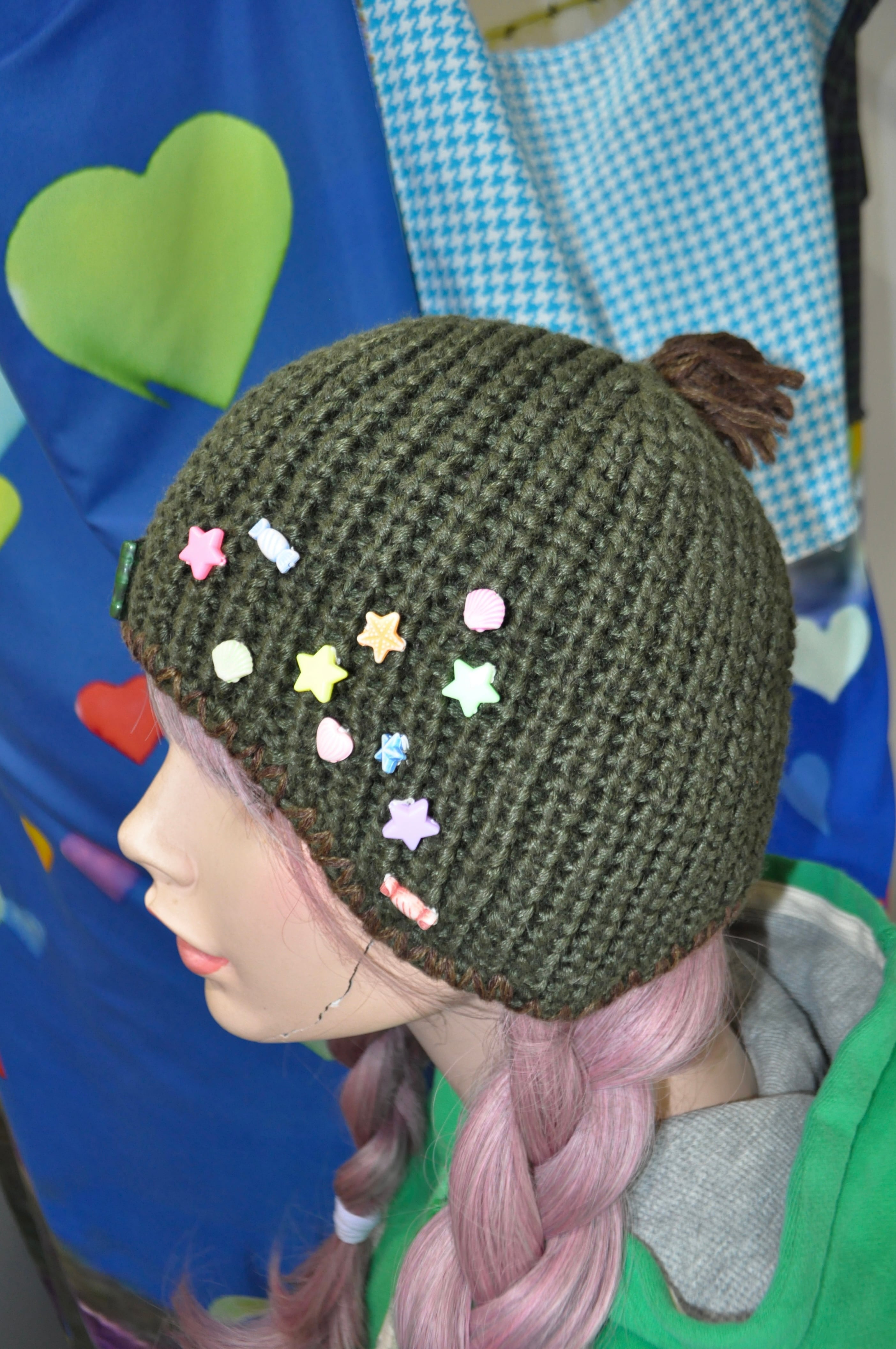 上にはぽんぽんがあって、前には星や貝殻のビーズ。