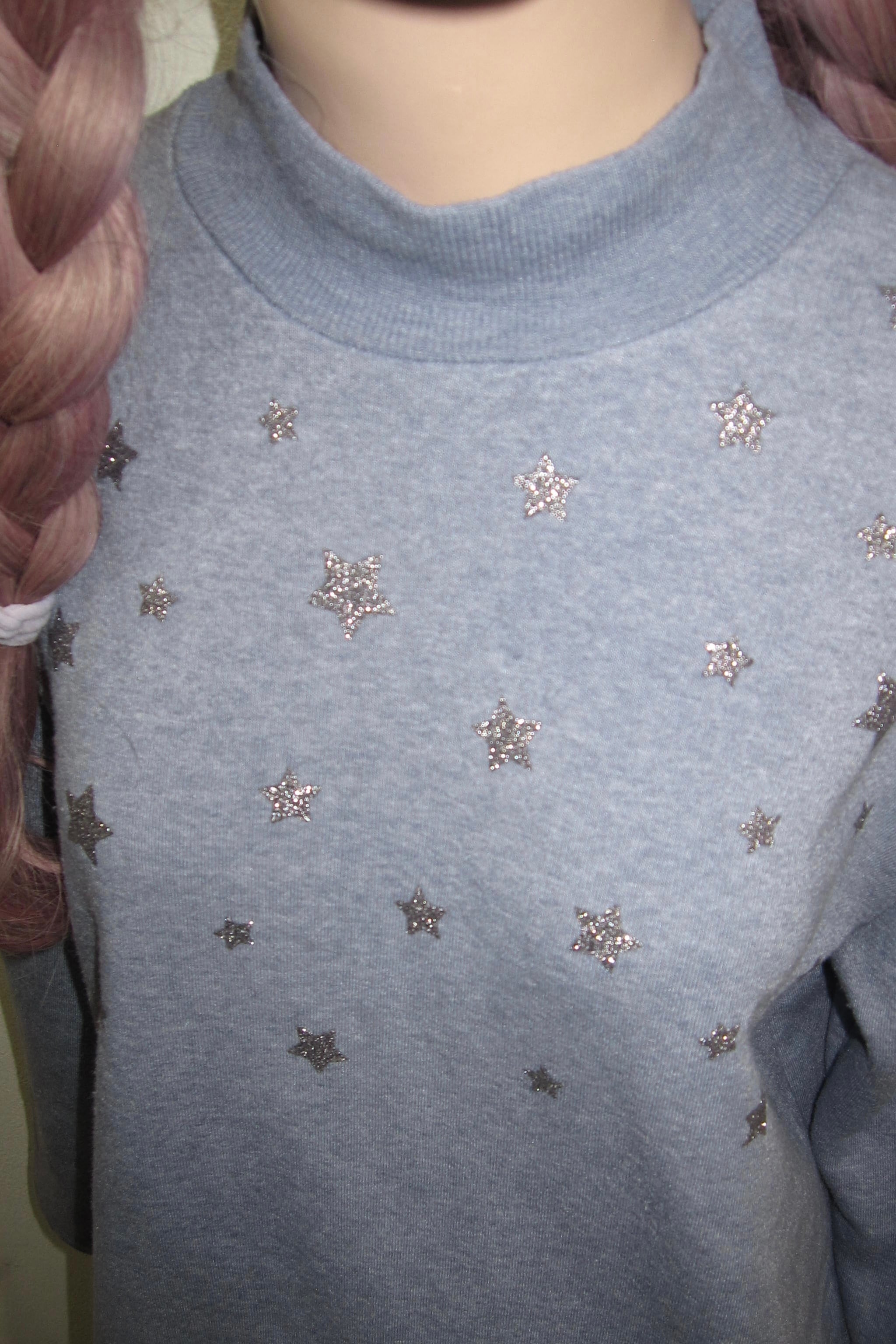 どれみ「薄いブルーのトレーナー。